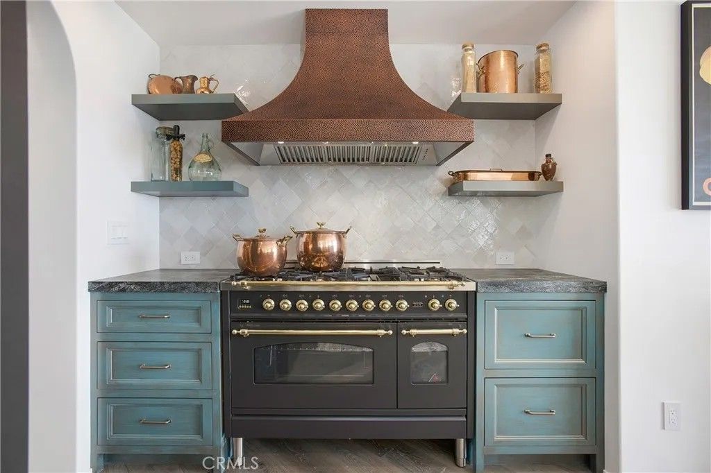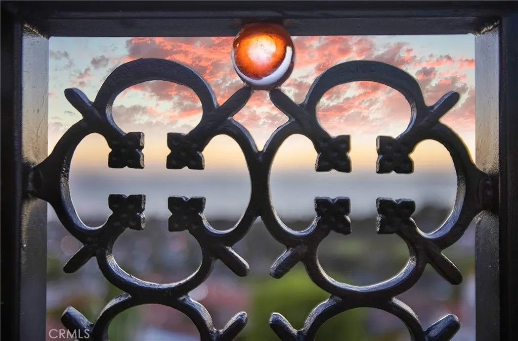 Incredible opportunity for this stunning newer construction residence, perfectly positioned to capture panoramic ocean views & offering a wonderful blend of contemporary design with Moroccan-inspired elegance. Designed to maximize indoor/outdoor living, the residence offers multiple outdoor spaces perfect for year-round enjoyment. Enter at street level & be drawn to breathtaking views of the ocean, Catalina Island and Main Beach Laguna through oversized picture windows. The retreat style Primary suite crowns the top floor and features a fireplace, spa-like ensuite with walk-in shower, freestanding tub & balcony to enjoy panoramic views. The main level, accessed by a graceful curved staircase adorned with custom ironwork & hand-blown glass by a local artisan, is designed for entertaining. Hardwood oak flooring, smooth stucco walls, and Moroccan-inspired light fixtures create a space with skylights and a fireplace clad in handmade Zellige tile. The bright living area opens through French doors to a spacious ocean-facing balcony. The adjacent chefs kitchen impresses as the centerpiece of the main living space with leathered soapstone countertops, copper accents including hammered range hood & farm sink, a 48 ILVE range, walk-in pantry, prep sink, and generous counter space make this kitchen both functional and beautiful. A unique library/den space off the main living includes a bespoke fireplace with mosaic tiles and carved wood surround, custom millwork, and an ocean-facing bay window seat offering a perfect spot to relax while enjoying the view. This space could also serve as a home office or bedroom, with ensuite access to a full bathroom. A main-level bedroom affords the option as a primary suite with walk-in closet and Jack & Jill bathroom featuring a soapstone vanity, dual copper sinks, and custom tiled shower. On the lower level, a 3rd bedroom with ensuite offers a private oasis, with outdoor access to the secluded covered patio/sundeck with Arto tile flooring, Zellige tile fountain, gas fire-pit, custom mosaic art wall, fruit trees, herbs, seasonal Morel mushrooms & vibrant, water-wise landscaping. No detail has been overlooked in this exceptional home, incorporating eco-conscious features such as owned solar power, two EV charging stations, extra-dense insulation, a green roof and ductless mini-split systems for energy-efficient climate control. This residence offers an unparalleled opportunity to experience coastal living at its finest.