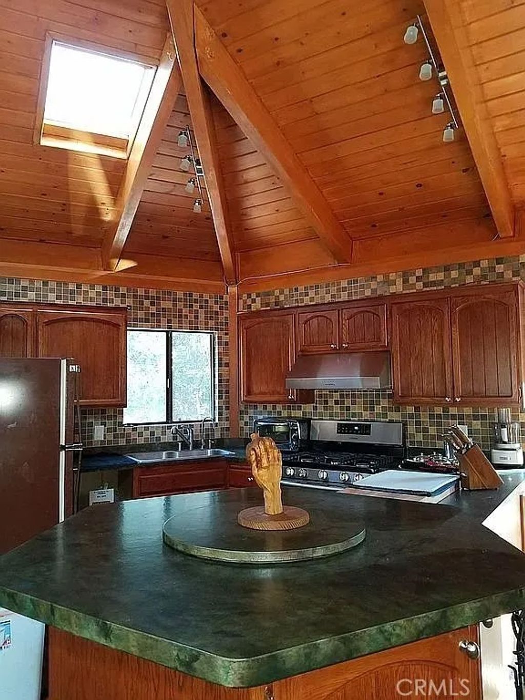 Beautiful hexagon chalet newly remodeled interior and exterior. A wonderful mountain cabin surrounded by old oaks and pines for privacy and shade. The great room is on the second floor to give you the feel of a tree house with bedrooms on the first floor. Free standing wood fireplace adds to the cabin's charm with the feel of a campfire. The lot is level. Lots of large and useable back and side yards. 800 Sq ft of decking around the home for lounging, BBQ'ing, entertaining. Over 200 Sq ft of fully enclosed, door locked storage space under the newly built deck on west side. Custom tile in bathrooms and kitchen. Tankless water heater installed. Water filtration system installed. Reverse osmosis water tap at kitchen sink. All new electrical switches and receptacles. 30 Amp plug for RV hook up under deck at driveway. Brand new roof, gutters and downspouts. Top of the line Owens Corning Premium Cool roof installation. Solar fan installed at the apex of the living room vault that sucks all the hot air out the roof, keeping the house cool during hot days. The hexagon is nature's architectural masterpiece! The Bees know how to build!!! I've done a lot to make this place special for anyone who wants to make this mountain community their home.