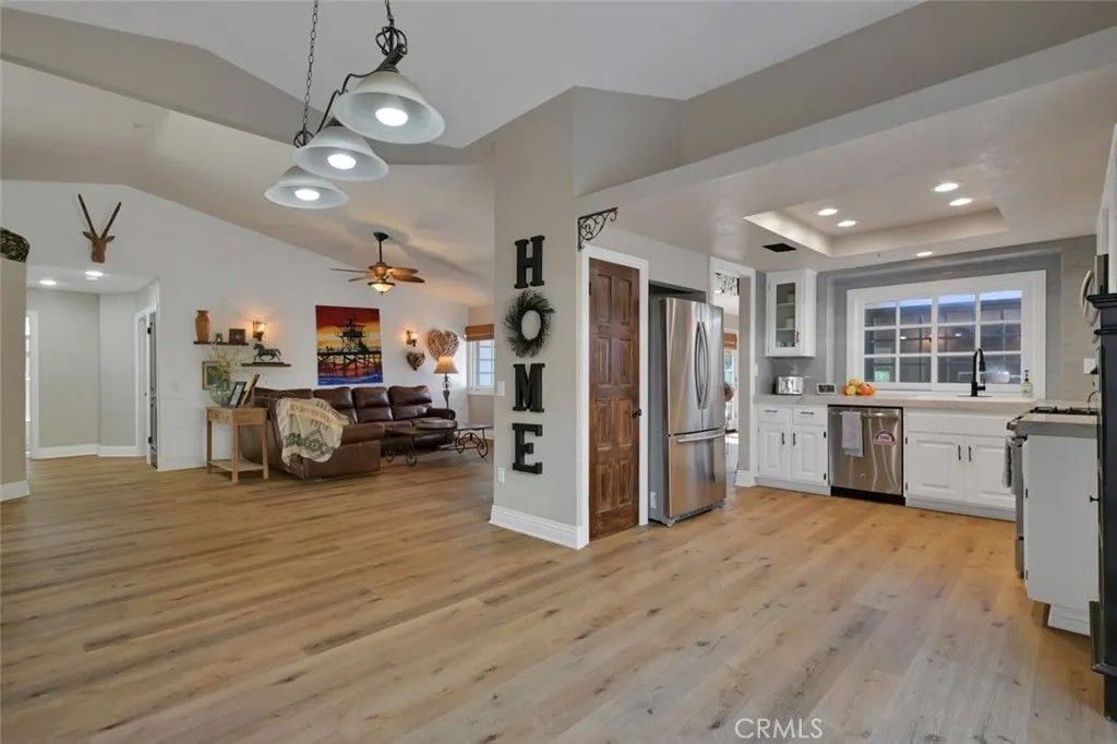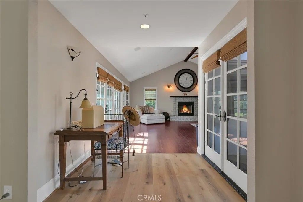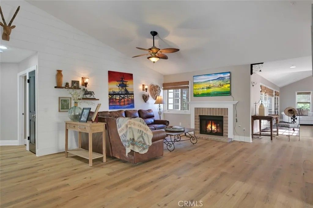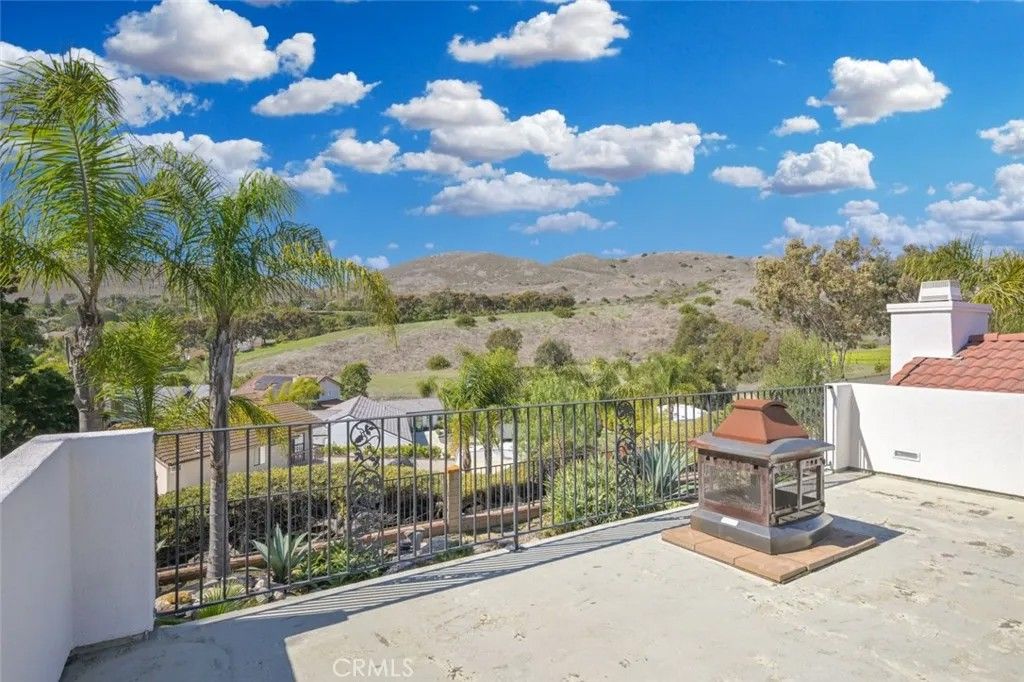 Come home to this fantastic San Clemente spread in the sought after neighborhood of Rimrock, located in in Forester Ranch. This home has been expanded to 2,134 sq ft! An enormous Bonus/Family room was added- (23 x 23) for entertaining with a beautiful fireplace, hardwood flooring and French doors looking out to the expansive covered patio comforting the serine back yard. The original Primary bedroom was turned into the huge master bath with a spacious shower and lovely double sink, extra cabinetry and another sink and cabinet for the perfect spacious morning coffee station and more. Primary bath also has dressing area with plenty of closet room now! A very private Primary bedroom was then added with hardwood flooring & even more French doors- two sets, leading to the covered patio, with ceiling fan and spiral staircase to the rooftop deck with freestanding fireplace and peek ocean view and great beautiful hills views! RV access is 14 x 23, not including the driveway area- plenty of parking for everyone! The large Bonus room and patio have been wired for surround sound for entertaining and beach vibe parties to come. The kitchen is light and bright with white cabinetry and light quartz countertops and beautiful stainless steel appliances, with a spacious dining area with French doors just off of it. It is very unusual to come across a home of this size in Rimrock, AND it is on a cul-de-sac! The roof has 7 solar panels that have been paid for, not leased, nothing to do now but save! In back yard, left side also has a standing peek ocean view. Plenty of shopping, grocery stores, Trader Joes, a large choice of restaurants, fitness gym, medical offices, & more are just down the main street when leaving the neighborhood- just a few minutes away! Drive to the beach in 10 minutes or shop the San Clemente Outlet Mall. Get to the famous San Clemente Pier in aprox a short 15 minute drive. Beach living at you fingertips!