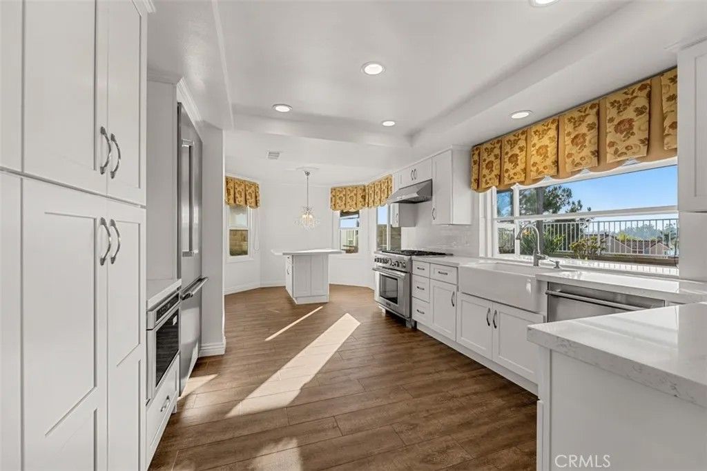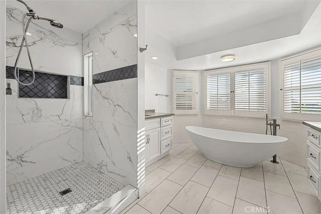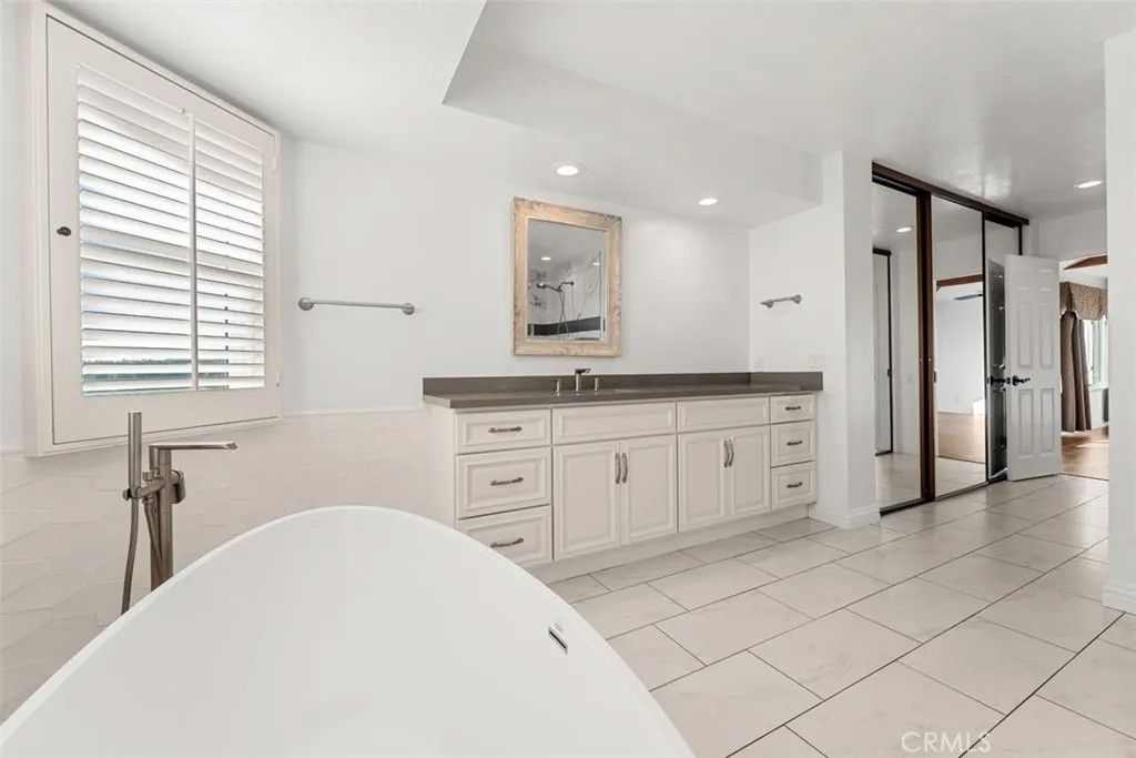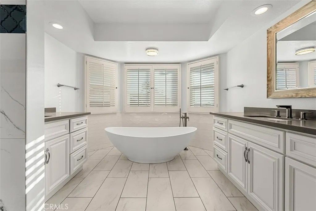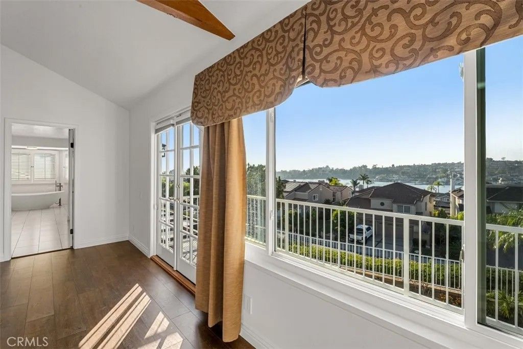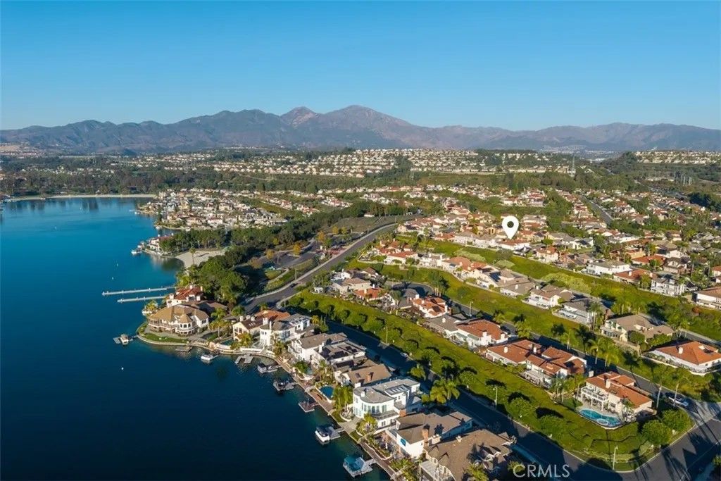 Beautiful mediterranean home over looking Lake Mission Viejo. Home is completely turn key. The exterior stucco with red tile roof and landscaping welcomes you into a home on a hillside with plenty of character with natural materials. Expansive windows with views, stone fireplaces, stunning staircase, high end kitchen, breakfast area, formal living room, wet bar, dining room, family room, separate large bonus/media room, laundry room, first floor bedroom, vaulted ceilings, master bedroom with balcony and view of the lake and mountains. The back yard with sweeping views of the lake, fountain, pool and spa. Three car garage. Access to private beach.