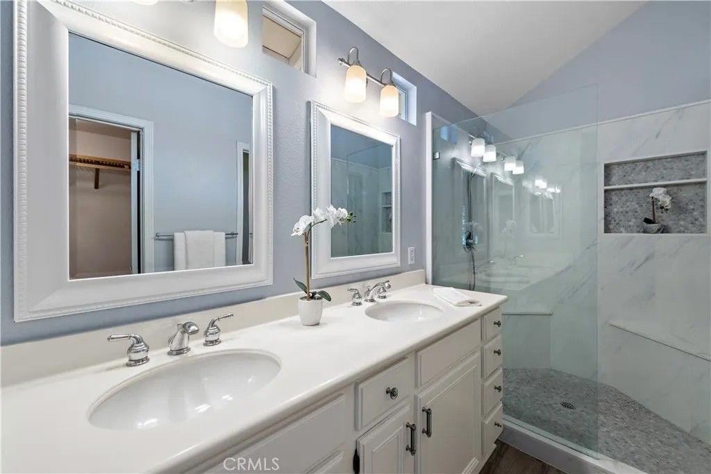 Welcome to 12 Paseo Vecino located in a charming gated community in the safest city in California! You will immediately love the curb appeal with stone accents, a white picket fence and a welcoming dutch door. Once inside you will appreciate the remodeled kitchen offering newer cabinets, quartz counters, custom backsplash, farmhouse sink, stainless appliances and a bonus walk-in pantry. In addition there are hardwood floors throughout, custom mouldings and most importantly the open floorplan. The layout is ideal for entertaining or special gatherings. The spacious dining room leads to the private side patio which is perfect for indoor/outdoor living. With the beautiful SoCal weather you will want to utilize the charming outdoor space! Upstairs there are 4 bedrooms PLUS a loft that is ideal for a second family room or an office and a laundry area. The primary bedroom has a lovely view of the community park. The primary bathroom boasts dual sinks, a beautiful newer stone shower and a large walk-in closet. The neighborhood is close to many Samlarc amenities, shopping, dining and the theater. What more could you want? Come see what makes this home so special!