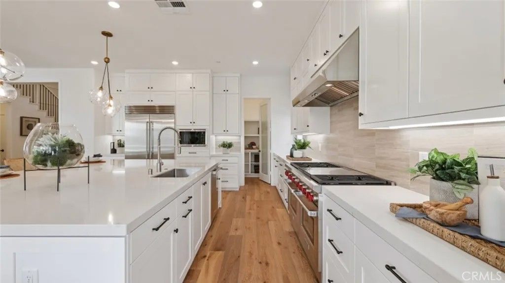 Discover luxury and functionality in this stunning 4,697 sq ft home, featuring 5 bedrooms, 5 full baths, 2 half baths, a bonus room, and a 3-bay garage. The main floor showcases an open floorplan with an inviting Great room, and a chef's kitchen with a spacious walk-in pantry, along with Wolf appliances and a Sub-Zero refrigerator! The oversized kitchen island, with quartz counters, makes for easy entertaining! Upgraded flooring is included with a combination of luxury vinyl plank, custom tile and carpet! The sliding glass doors opens up to the California Room with a cozy fireplace, seamlessly extending your living space into the backyard. This home has a generous size lot with canyon views that enhances privacy! The Owner's Suite is a retreat in itself, featuring a luxurious bath and shower, and an expansive walk-in closet. This beautiful home is located in a gated community with restaurants, shopping, coffee shops and grocery stores all nearby Every detail in this home has been crafted for comfort, style, and versatilityready to welcome you home!.