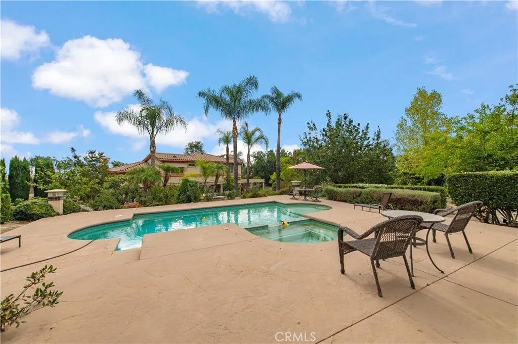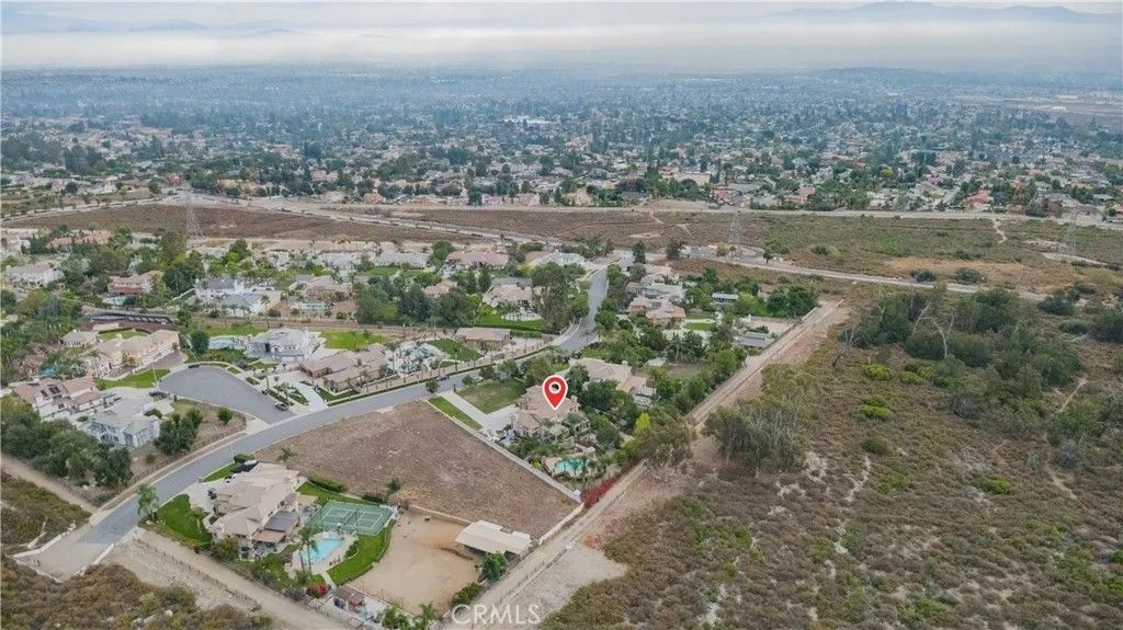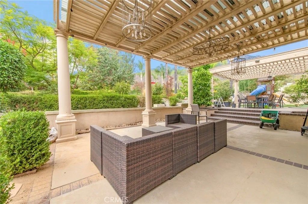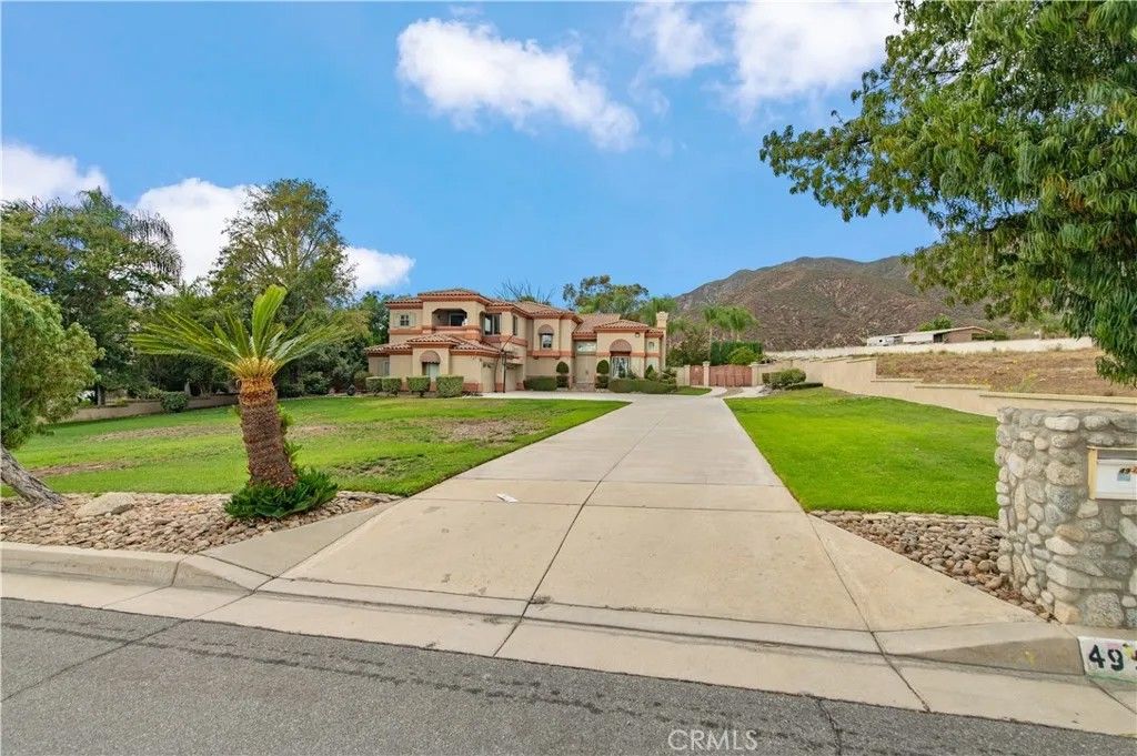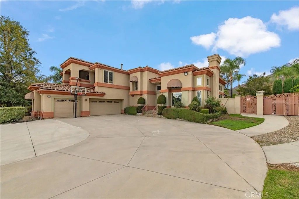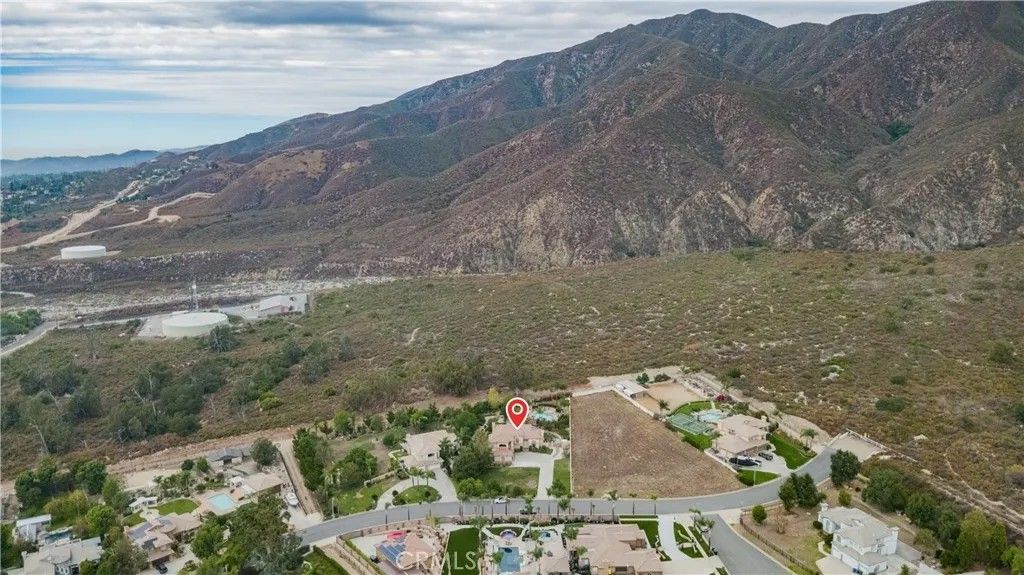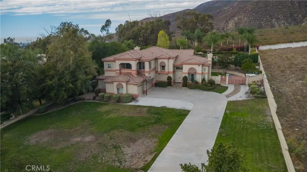 Tuscan-Inspired Luxury Estate with Pool, Spa & Panoramic Views Elegant 6-bedroom 4.5-bathroom semi-custom estate nestled below the Angeles Oak foothills on over an acre of privacy and beauty. Blending authentic Tuscan charm with modern luxury, this home showcases breathtaking sunset and mountain views. The courtyard with fountains, mature landscaping, and mini vineyard create a serene retreat. Inside, enjoy soaring ceilings, terracotta-style floors, and ungraded chefs kitchen with marble counters, oversized island, and Sub-Zero refrigerator. The step-down living room with fireplace and custom bar is perfect for entertaining, while the primary suite offers a private veranda, fireplace, and spa-inspired bath. Outdoors, a resort-style pool and spa, BBQ island, multi-level patios, 3-car garage with workshop, RV parking, and private trail access. A true California-Tuscan masterpiece!