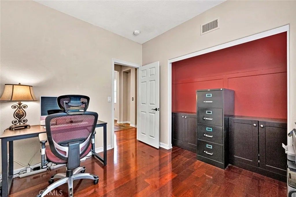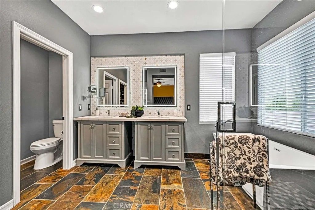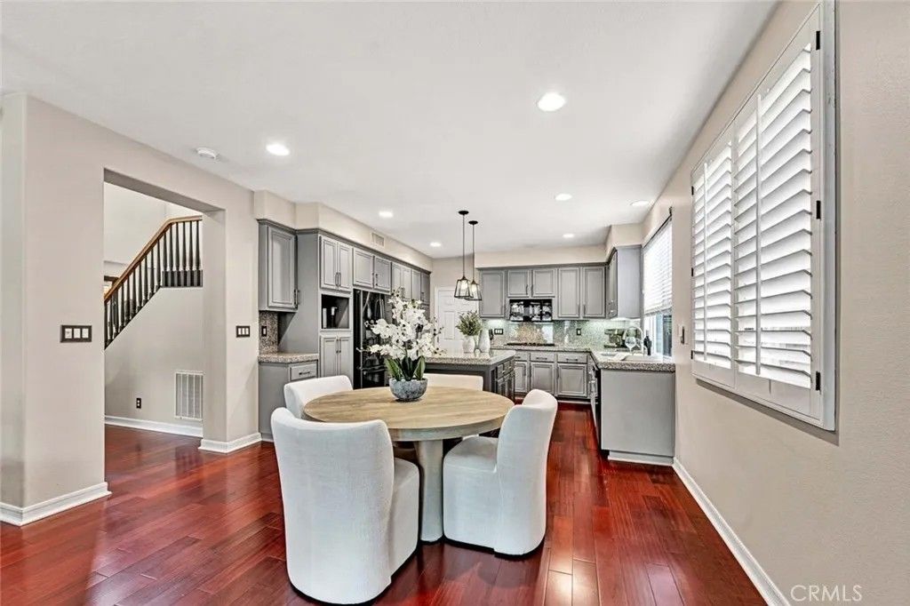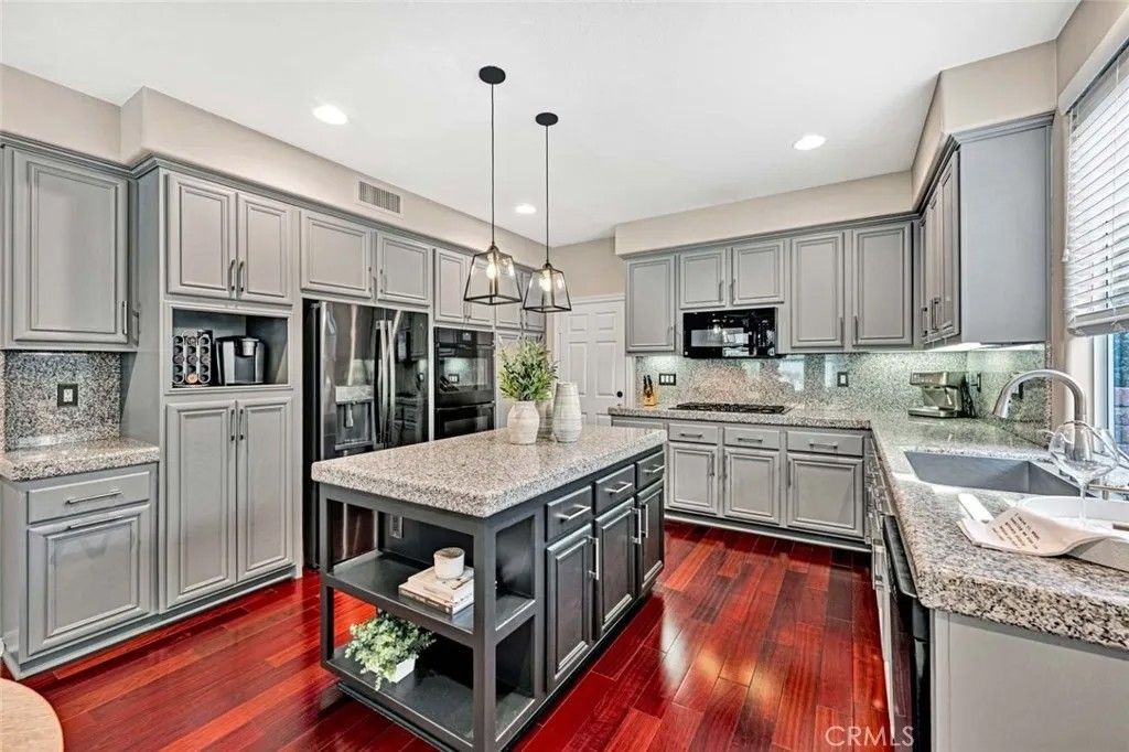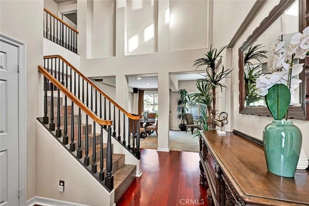 This beautiful home welcomes you with gorgeous curb appeal, highlighted by an aggregate-accented driveway, newer wrought iron fencing & dramatic up-lighting at the front entry. An elegant ornamental iron front door opens to a stunning 2-story foyer that sets the tone for the thoughtfully designed interior. Inside, rich wood flooring & honed slate create a timeless & sophisticated feel throughout the main living areas. The formal living & dining rooms are open & airy, offering direct access to the beautifully manicured backyardideal for both everyday living & entertaining. A charming upgraded powder room adds a stylish touch for guests. The upgraded chefs kitchen is the heart of the home, featuring a large center island w/pendant lighting, abundant cabinetry, double ovens, 6 burner gas cooktop, large stainless steel sink, a dedicated coffee bar, upgraded wall outlet plates & a breakfast nook for casual dining. The kitchen flows seamlessly into the cozy family room, complete w/fireplace & access to the serene backyard.Upstairs, the spacious primary suite is a true retreat, boasting a spectacular remodeled bathroom w/a large walk-in shower, stand-alone modern soaking tub, dual sinks, a dedicated vanity area, custom stylish cabinets, custom wall backsplash, light up vanity mirrors & an oversized walk-in closet. Bedrooms 2 & 3 are thoughtfully located away from the primary suite, offering privacy, & are served by an upgraded secondary bathroom w/dual sinks and a separate room for toilet & shower/tub. A convenient workspace sits just outside the bedrooms, perfect for a home office or study area. The upstairs laundry room offers space for a full-size washer & dryer along with ample cabinetry for storage. There is possibility for a fourth bedroom, as the single-car garagecurrently used as a home gymcan easily be converted into an additional bedroom. In addition, the two-car garage has custom overhead storage. The park-like backyard is a peaceful oasis w/a soothing fountain & plenty of space to personalize, garden, or entertain. Notable upgrades include a 5-ton A/C condenser, solar panels, bamboo flooring in the guest bedroom, a quiet smart garage door, new irrigation control, ceiling fans, upgraded slider screen, surround sound with Bose speakers, rain gutters, new paint, plantation shutters, many thoughtful enhancements throughout. This exceptional home offers comfort, style, and flexibility in a beautifully maintained settingready to be enjoyed!