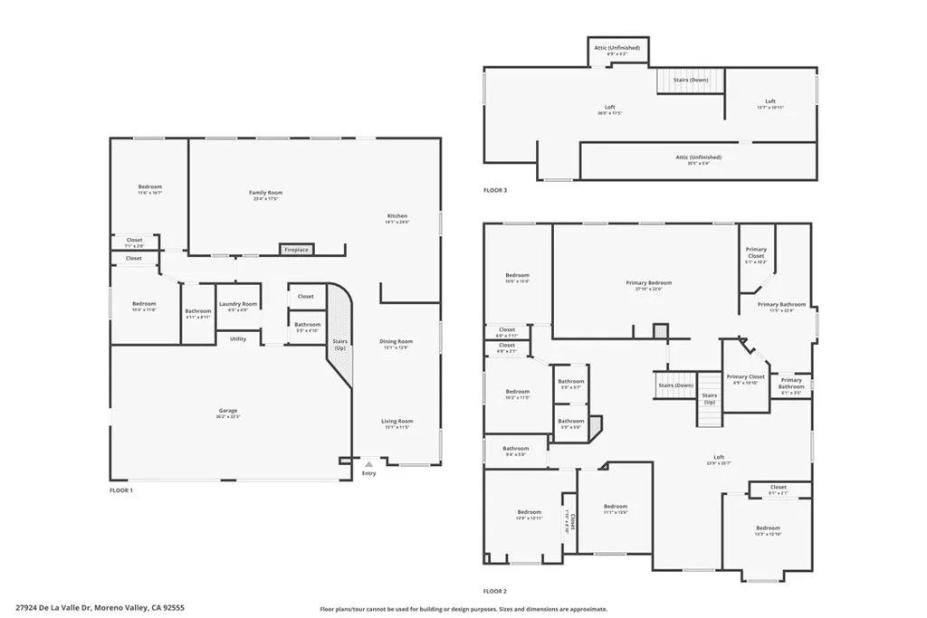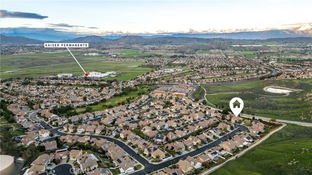 Set behind the gates of one of Moreno Valleys most desirable communities, this impressive three story residence offers space, separation, and flexibility designed for todays modern multi-generational lifestyle. With eight bedrooms and a thoughtfully designed layout, this home provides rare versatility for extended family, guests, or work from home living.The first level features a private living wing with two bedrooms, 1.5 bathrooms, laundry, and direct garage access, creating an ideal setup for in laws, guests, or a dedicated home office suite. Freshly painted with brand new carpet, the home is truly move in ready. The open concept kitchen and family room create the heart of the home, perfect for entertaining or relaxing around the fireplace. The second level hosts a primary retreat featuring his and hers vanities, his and hers walk-in closet spaces, and an ensuite bath, offering a true dual-suite experience rarely found in this price range. Additional bedrooms and a large central loft provide flexibility for play, study, or additional living space. The third level adds even more versatility with multiple loft areas, ideal for a home gym, media room, studio, or long term storage. The private backyard features a low maintenance design with lush grass space for entertaining, play, or weekend gatherings, while the four car attached garage offers exceptional parking and storage. Ideally located near parks, Lake Perris, hiking and biking trails, major medical centers, and with convenient access to the 60 and 215 freeways, this home offers the perfect balance of privacy, lifestyle, and connectivity in a beautiful, up and coming Moreno Valley community.
