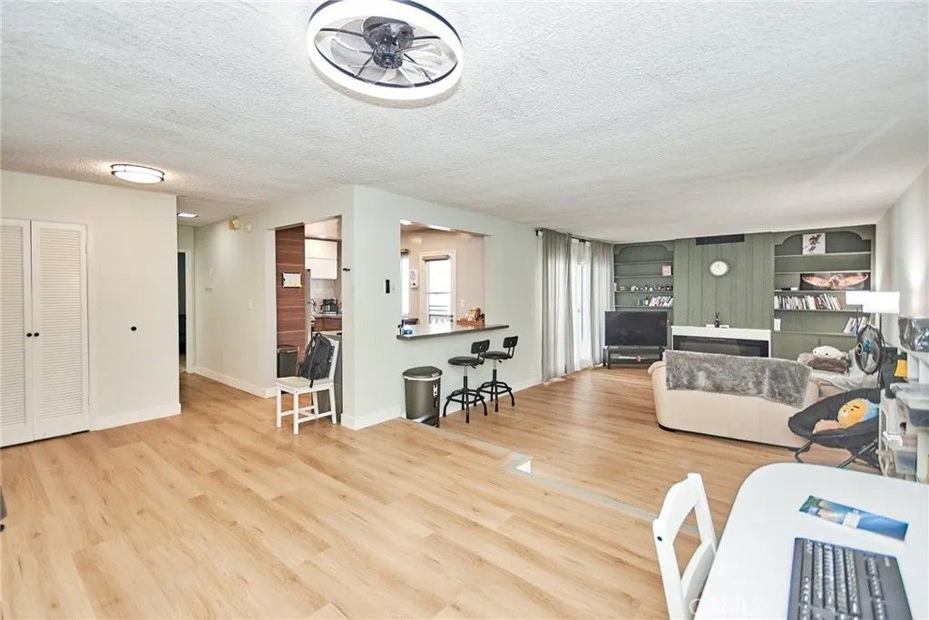 Spacious and bright third-floor unit in the charming 27-unit Seville complex, located directly across from Fox Hills Park. This well-designed and remolded home features vinyl plank flooring, a sunken living room with fireplace, and an updated kitchen with quartz countertops, stainless steel appliances, and ample storage. Enjoy a large covered L-shaped balcony with pool views, accessible from both the living room and kitchen. The unit includes a remodeled bathroom, a relaxing primary bedroom with a walk-in closet, double-pane windows, elevator access, and secure subterranean parking. Conveniently located near shopping, dining, Marina del Rey, beaches, Playa Vista, and LAX.
