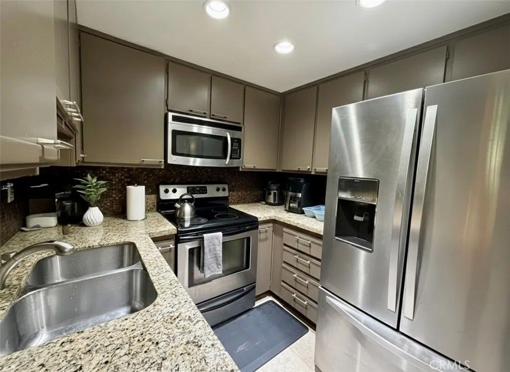 Perfectly positioned across from Lago Santa Margarita Beach Club and Rancho Santa Margarita Lake, this upper-level 2-bedroom, 1-bath condo offers both style and versatility. The open floor plan is highlighted by high ceilings and a light, airy feel throughout. The kitchen showcases granite countertops, recessed lighting, and stainless steel appliances. The downstairs bedroom features high ceilings, while the upstairs space can serve as a second bedroom with a large closet or a flexible loft ideal for a home office or creative space. The bathroom includes dual sinks with brushed chrome fixtures, a granite vanity, and a large tub. Enjoy the convenience of inside stackable laundry, air conditioning, and a private one-car garage. A picture-perfect home in a prime location.