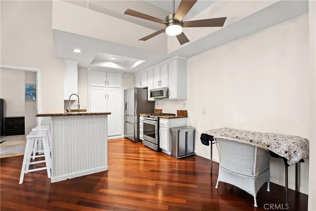 Penthouse 2 bed, 2 bath single level home with DUAL PRIMARY SUITES that both open to an enormous entertainer's dream balcony overlooking Milano at Rancho Niguel. Featuring tall architectural ceilings, rich wood floors, and a cozy gas fireplace, this unit was designed to bring the outside in, with loads of natural light and an open concept feel. The perfectly proportioned kitchen features tumbled granite countertops, stainless steel appliances, pristine white cabinetry with a large pantry, and recessed lighting. Both bedrooms are well sized with vaulted ceilings, recently remodeled private baths, and large closets. Convenient inside laundry room includes custom cabinetry and shelving. The resort style amenities of Milano at Rancho Niguel include a swimming pool, spa, gym, clubhouse, plus 6 EV charging stations. All this and just a short stroll to a plethora of shops, restaurants, grocery stores, movie theatres, and award winning Bergeson Elementary School! An absolutely perfect spot to call home!