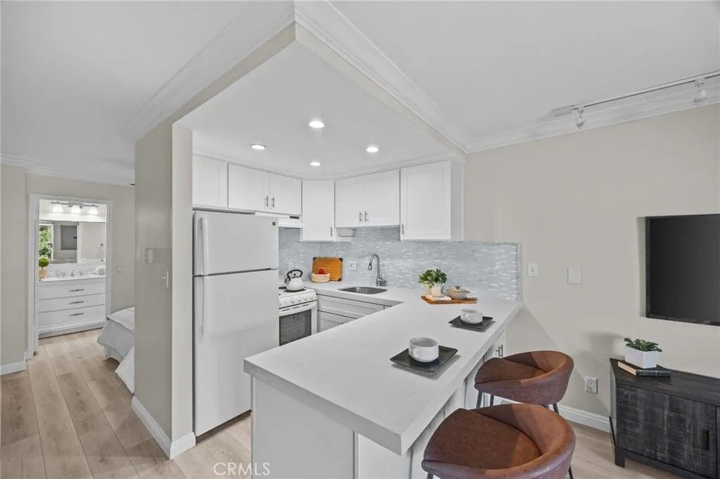 HUGE PRICE IMPROVEMENT!! Beautifully redesigned studio unit at Versailles in Newport Beach. This bedroom setup is a studio, with an alcove area for the bedroom. Feels more like a junior 1-bedroom with some distance and separation between the living area and the bedroom. Perfect for one or two people to enjoy, or as a second home for a beach getaway in Newport Beach. This PENTHOUSE condo is on the top floor with no one above. The INTERIOR LOCATION is one of the best locations in the entire community, with no street noise from any of the surrounding streets. Completely remodeled condo with quartz countertops, shaker cabinets, custom tile backsplash, luxury vinyl plank flooring, remodeled bathroom, recessed lighting, and a ceiling fan above the bedroom area. Two full closet spaces with ample storage. This entire home feels light, bright, and open. From the balcony, you will love the views of the courtyard with a fountain, grass, and trees. Enjoy the convenience of the assigned parking space in the underground gated parking garage (space #11). ***HUGE BONUS: There is a 220V electric vehicle charger at the assigned parking space that will be included with the sale! Additional guest parking can be found on the ground level directly in front of the condo. Enjoy the amenities that the Versailles community has to offer: gated community, brand new pool & spa, clubhouse, gym, BBQ, tennis, and a short half-mile walk or bike ride to the beach. Feel secure with the private and locked entry doors into the main building. Walk to Lido Village, Newport Pier, and the world-famous Newport Beach Boardwalk! Just like they always say: Location, location, location!
