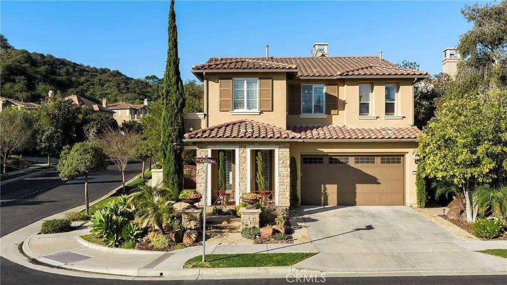 Set on a quiet corner lot in Talegas desirable Sabella neighborhood, 20 Via Cristobal pairs timeless Mediterranean architecture with a light, modern interior and a backyard designed for privacy and calm. Mature trees and layered landscaping create a serene outdoor retreatlush, shaded, and beautifully secludedwhile nearby trails and foothill paths invite daily connection to nature. Inside, the home unfolds across 2,579 square feet with a floor plan that feels both generous and intuitive. The recently updated main level features wood-look tile flooring, a refreshed kitchen with quartz countertops, crisp shaker cabinetry, and an open flow to the family roomideal for everyday living and easy entertaining. Natural light fills the space, softening clean lines and highlighting thoughtful details throughout. Upstairs, hardwood flooring adds warmth to all four bedrooms, including a spacious primary suite with a spa-inspired bath, dual vanities, soaking tub, walk-in shower, and generous closet. A built-in desk and loft-style workspace offers flexibility for work, study, or creative pursuitsan easy extension of modern life at home. With 4 bedrooms, 2.5 baths, and a 6,375-square-foot lot, the home balances comfort and functionality. A two-car garage includes an EV charger, adding convenience and future-forward appeal. Life in Talega brings access to resort-style amenities including pools, pickleball and tennis courts, clubhouse facilities, parks, and miles of hiking and biking trailsalong with top-rated schools and a strong sense of community. Here, design, livability, and lifestyle come together in one of San Clementes most sought-after neighborhoods.