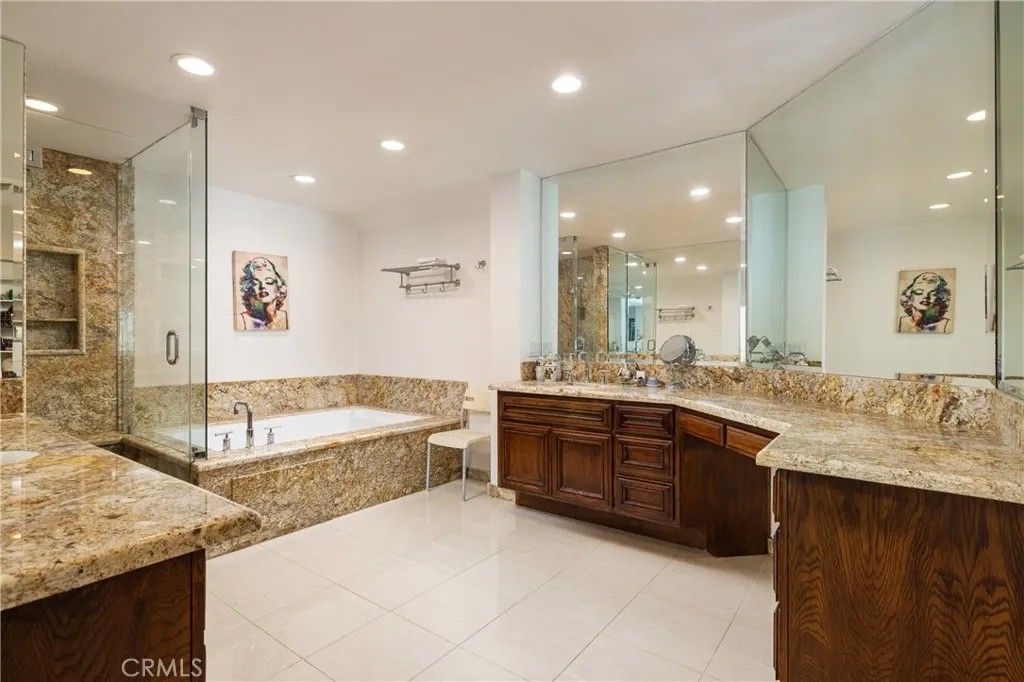Escape to your own private oasis in the heart of Nellie Gail Ranch. Set on a flat, tranquil corner lot, featuring 8 bedrooms and 11 bathrooms, within a generous 7,372 square foot floor plan, this entertainers estate seamlessly blends indoor luxury with resort-style outdoor amenities. Recent upgrades include new windows throughout, whole house PEX repipe, owned solar system, whole house water filtration system, whole house water softener, Vivint security system, and epoxy floors in the 3-car garage. The entry courtyard enchants with custom fountains, a koi pond, and double entry doors. Inside, a grand foyer with a wrought-iron adorned spiral staircase welcomes you. The light-filled living and dining area boasts vaulted ceilings, hardwood floors, and a fireplace, adjacent to your two main-floor ensuite bedrooms. A gourmet kitchen awaits with double ovens and dishwashers, a 6-burner cooktop, and an eat-in dining space open to the comfortable family room and bar. An expansive game room features a pub-style bar, private bathroom, billiards table and games, and direct access to the inviting pool area. Upstairs, retire to your palatial primary suite with a double-sided fireplace retreat, primary bath with jacuzzi tub, and walk-in closet. Private quarters on this level include 3 more fully en-suite bedrooms, 2 jack-and-jill suites, and an oversized office/bonus room with built-ins. Outdoors, experience the winding saltwater pool and spa with its upgraded grotto, Baja deck, and mosaic tile, all solar-heated and controlled via the Pentair smart app. The exterior also features fireplace and fire pit gathering areas, ceiling fans, retractable awnings, perimeter fences, a Twin Eagles outdoor kitchen with BBQ, sink and dual burners, and multiple patio settings ready for relaxation or al fresco dining. Located moments from the 5 and 73 freeways, shopping, dining, and Nellie Gail community amenities like tennis courts, parks, hiking, and equestrian trails, this meticulously curated estate invites you to live your California dream.