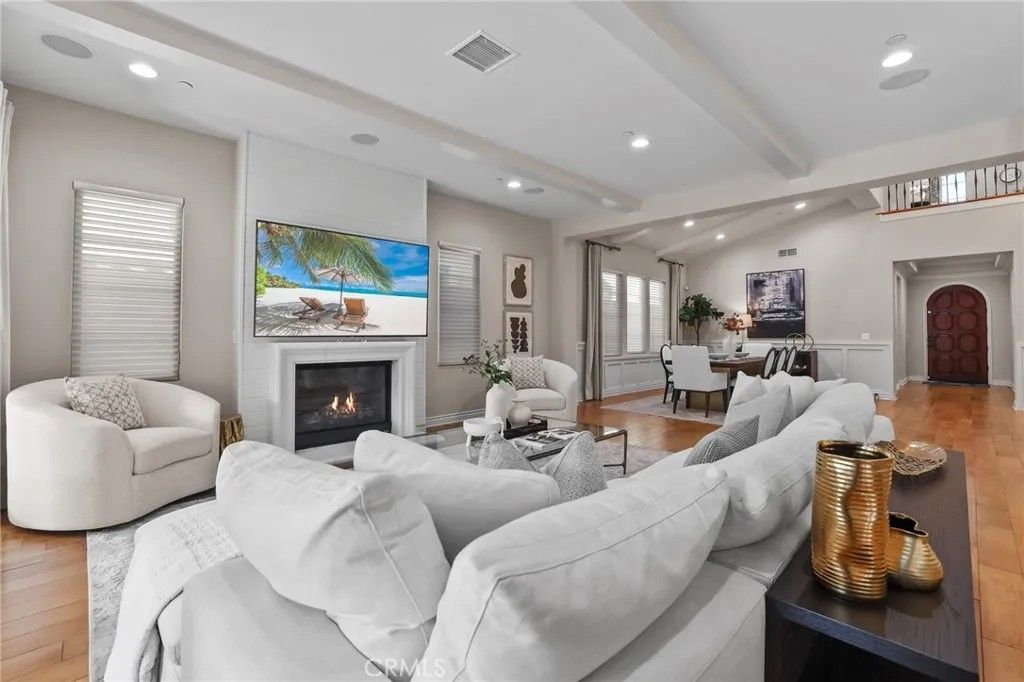 Behind the prestigious gates of The Groves at Orchard Hills, this distinctive residence showcases breathtaking designer finishes that set it apart from every home in its class. Flooded with natural light, the spectacular open layout features soaring ceilings, wrought-iron accents, rich wood flooring, and dramatic beams, creating an inviting space for both luxurious family living and grand entertaining. The chef-inspired kitchen is a true showpiece with sleek white cabinetry, custom countertops, high-caliber stainless appliances, and a large center island overlooking the great room, dining area, and conservatory. Accordion bi-fold doors blur the line between indoors and outdoors, opening to a spacious backyard designed for gatherings and relaxation. The primary suite offers a serene retreat with a spa-like bath and dual walk-in closets, while the generous secondary bedrooms each include en suite baths. A versatile bonus room, upstairs laundry, and an extended main-floor bedroom with private bath ensure functionality and flexibility for modern living. Premium upgrades include Custom window treatments & premier shade system, alarm system & surround sound, Tankless water heater & paid off solar panels, Built-in EV charger in the 3-car tandem garage. The backyard oasis is equally impressive, featuring California room, an open artificial grass play area with mini golf green, a wood-paved entertainment space, and a natural stone wall fountain for tranquil ambiance. This turn-key home is complemented by Orchard Hills world-class amenities: multiple pools, a clubhouse, parks, hiking trails, basketball and tennis courts, and proximity to award-winning schools and the vibrant Orchard Hills Shopping Center. Dont miss this rare opportunity to enjoy resort-style living in one of Irvines most prestigious neighborhoods!