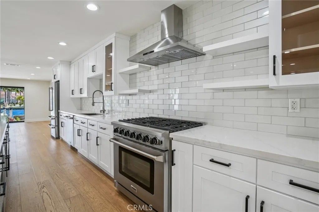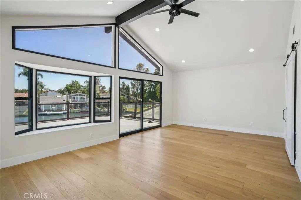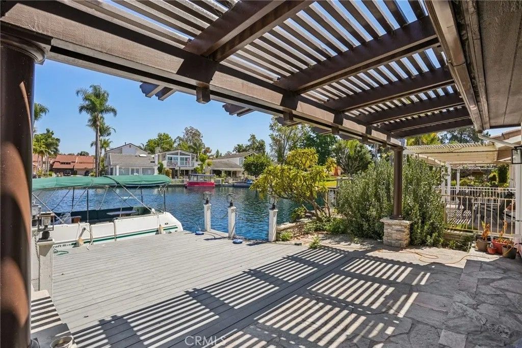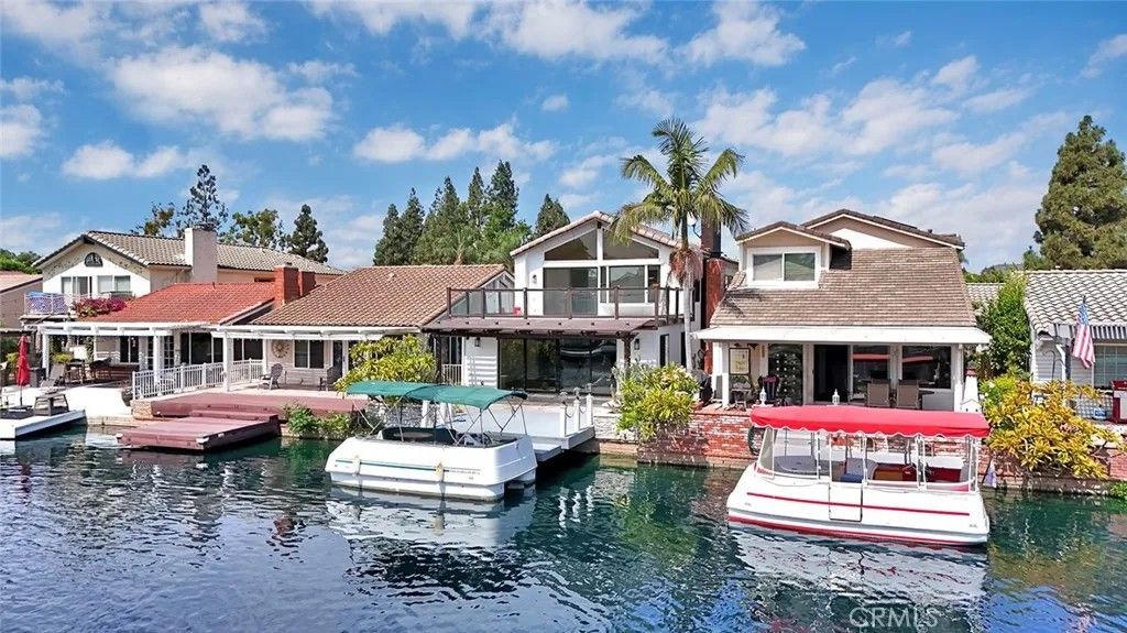 Just minutes from Irvine, yet feeling worlds away, this lakefront home in the sought-after Keys community offers a rare blend of convenience and resort-style living. Tucked along a quiet single road, the setting feels private and peacefullike being on vacation every day. Behind a gated entry and double front doors, timeless Spanish-inspired architecture meets modern design in an open-concept layout with White Oak flooring and sweeping lake views throughout. The kitchen flows seamlessly into the main living and dining areas, ideal for entertaining, while expansive pocket doors open to a backyard retreat complete with a private boat dock and canal-to-main-channel views, with no direct neighbor across the water. A downstairs bedroom and full bath provide flexibility for guests, and a dedicated laundry room adds everyday convenience. Upstairs, a dramatic floating staircase leads to a light-filled loft perfect for a media room or office. The primary suite is a true escape, featuring a fireplace, wall-to-wall lake views, a private balcony, and a spa-inspired bath with soaking tub, walk-in shower, and oversized closet. Two additional bedrooms and a full bath complete the home. This is a rare opportunity to enjoy tranquil waterfront living just outside Irvine, where comfort, privacy, and location come together effortlessly.