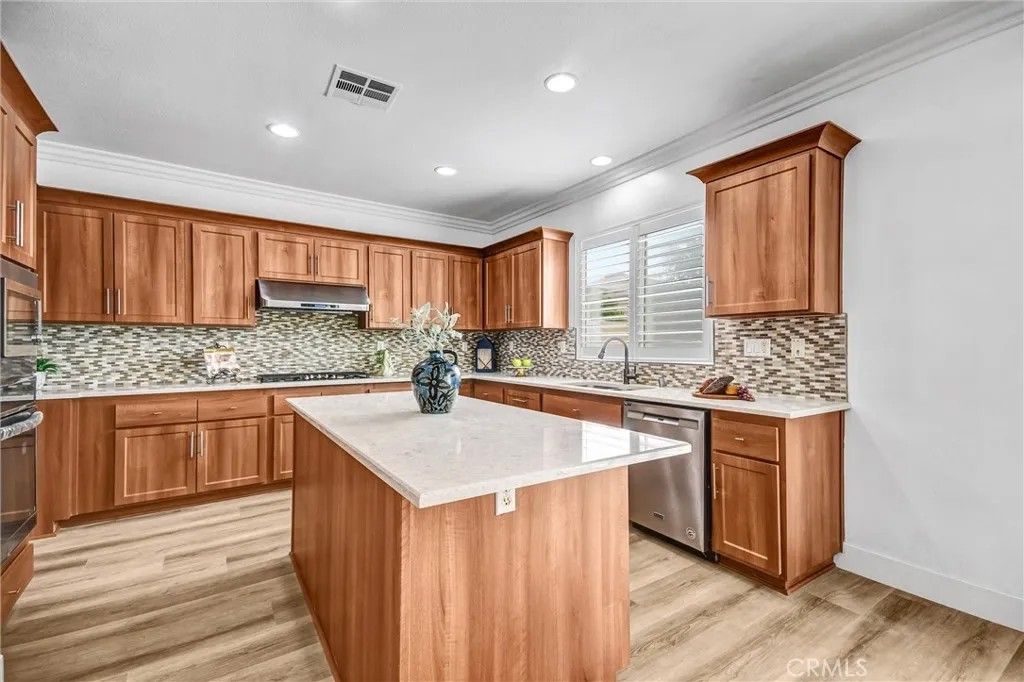 Welcome Home the One Youve Been Waiting For Discover this exceptional residence that truly has it all. Perfectly located in a peaceful and picturesque neighborhood, this home combines comfort, style, and conveniencejust minutes from top-rated schools, beautiful parks, and popular shopping destinations. From the moment you step inside, youll notice the meticulous attention to detail and thoughtful upgrades throughout. The home features premium flooring, stunning new countertops in both the kitchen and bathrooms, brand-new kitchen appliances, and a beautifully redesigned staircase that adds a touch of elegance. Every window, including the backyard door, is dressed with timeless plantation shutters that provide both charm and energy efficiency. The curb appeal is undeniablemanicured hedges and blooming rose bushes create a warm welcome. The backyard is private and easy to maintain, enhanced by mature fruit trees such as lemon, orange, and persimmonperfect for enjoying Californias sunshine year-round. One of the homes standout features is the fully paid-off solar system, designed to keep energy costs low in every seasonso you can stay cool in the summer and cozy in the winter without the high utility bills. The layout is ideal for multigenerational living or larger families, offering flexibility for every lifestyle. Just off the entryway, youll find a convenient bedroom and full bathroomgreat for guests, an office, or an in-law suite. The open-concept main level showcases soaring ceilings, a formal living area, a welcoming family room with fireplace, and a spacious kitchen with a large island and abundant storage. Upstairs, a generous loft offers the perfect spot for a media room, play area, or home office. Two bedrooms share a Jack-and-Jill bathroom, while another bedroom sits privately in the west corner. The luxurious primary suite feels like a private retreatcomplete with a soaking tub, separate shower, private toilet area, and a large walk-in closet. This home blends functionality, beauty, and comfort in every detail. Come experience it in personyoull instantly know youve found the one.