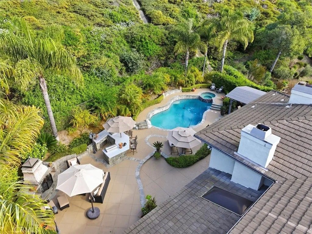 Escape to your own private sanctuary where total seclusion meets grand-scale luxury in the heart of Meredith Canyon. This expanded estate, situated on a sprawling parcel of nearly half an acre, is defined by its magnificent "Oasis" backyarda resort-style retreat where a lush, natural hillside buffer guarantees absolute privacy. Boasting nearly 4,000 square feet of meticulously maintained living space, the residence features a rare and highly sought-after floor plan that includes a full downstairs bedroom and bathroom, providing essential flexibility for guests, multi-generational living, or a sophisticated executive home office. The living experience is elevated by an 800-square-foot addition that includes a bathroom and bedroom, plus an expansive secondary family room. The impressive downstairs is an entertainment hub, anchored by a custom stand-up bar with mirrored shelving and an integrated Sonos sound system, creating the ultimate venue for hosting or relaxation. Another artfully designed bedroom has been reimagined as a bespoke wellness suite and home gym with professional mirrored walls. Throughout the interior, quality finishes and modern efficiencies take center stage, featuring a fully owned 24-panel solar system with an EV charger, a fire-resistant concrete tile roof, and a proactive whole-house re-pipe for total peace of mind. The outdoor experience is designed for the quintessential California lifestyle, featuring a recently resurfaced backyard hardscape, pool and spa, a wrap-around BBQ island with dual refrigeration, and a custom stone side-bar for effortless entertaining. Evenings are best spent by the massive wood-burning fireplace or dining under the grand pergola, elegantly appointed with a chandelier, bistro lighting, and installed heaters. Beyond the propertys private gates, residents enjoy proximity to award-winning schools, numerous hiking trails, outdoor recreation, and the historic charm of San Juan Capistrano, all while being minutes from the world-class amenities of the nearby $600 million Dana Point Harbor revitalization. This landmark project is transforming the waterfront with luxury dining, premier retail, and expanded marina facilities, positioning this home as both a premier private retreat and a savvy long-term investment in one of Orange Countys most exciting coastal corridors.