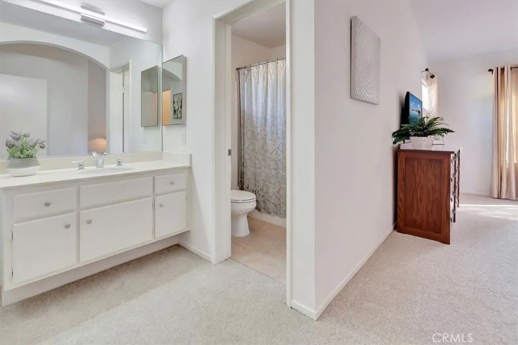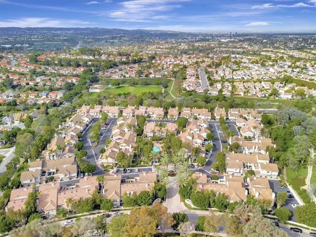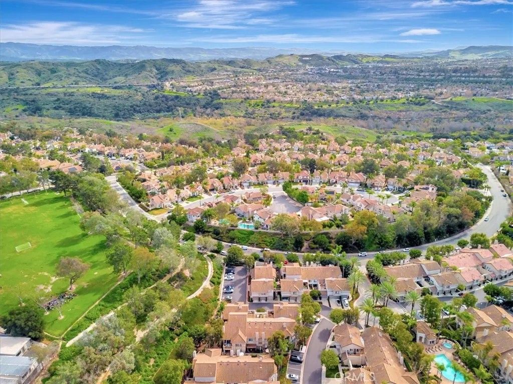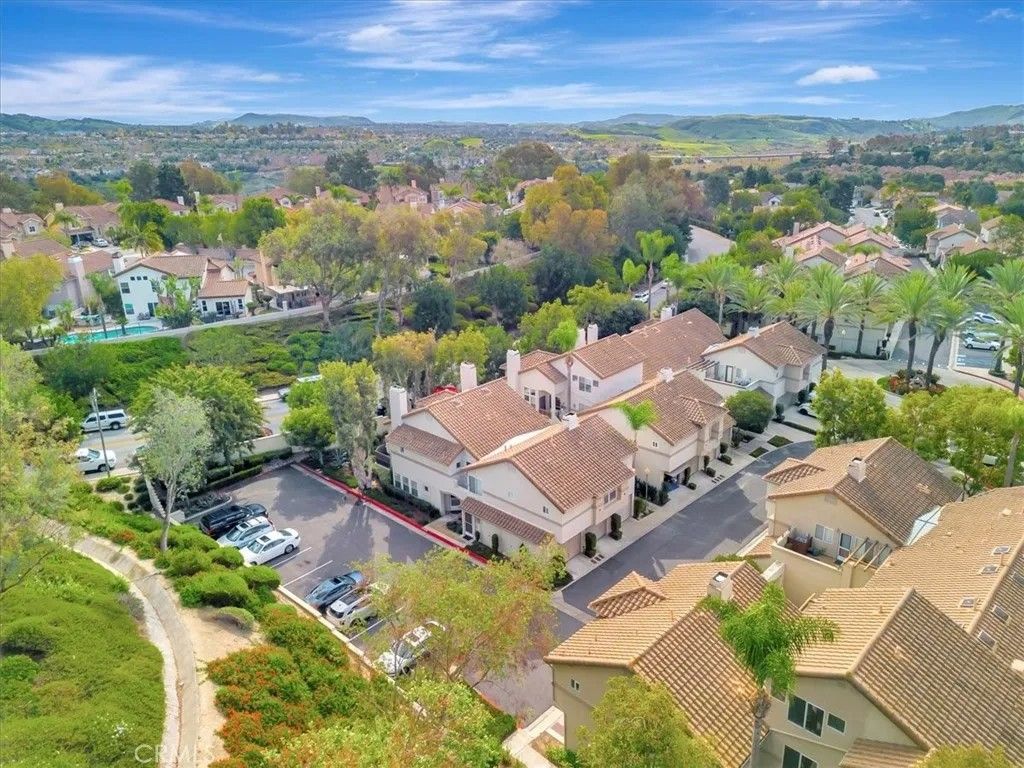 A light-filled, private end-unit where everyday comfort meets the Southern California lifestyle. Welcome home to this well maintained, two-story end-unit condo in the highly desirable Ashton community, where comfort, privacy, and everyday convenience come together beautifully. This 2-bedroom, 2.5-bath home features an open-concept layout with abundant natural light and thoughtful upgrades throughout. The inviting kitchen offers white cabinetry, granite countertops, stone tile backsplash, stainless steel appliances, generous storage, and space for a breakfast tableperfect for casual mornings or easy entertaining. The spacious living room and separate dining area feature plantation shutters, while a cozy gas fireplace and sliding door lead to a private backyard patio backing to the association greenbelt, ideal for relaxing, outdoor dining, and enjoying Southern Californias indoor-outdoor lifestyle. A dramatic stairwell with a soaring two-story ceiling and skylight leads upstairs to a spacious primary suite with vaulted ceilings and a walk-in closet. The second bedroom, also with vaulted ceilings, enjoys its own private ensuite bath, wall-length mirrored closet, and a sense of separation created by a long catwalk overlooking the living space below with ample linen storage. Fresh white interior paint and new plush carpeting complete the home. Additional highlights include a convenient main-level half bath, full-size laundry room, and an attached garage with roll-up door and automatic opener. This private end unit sits in a premium location backing to greenbelt and adjacent to ample guest parking. Residents enjoy access to the community pool, spa, and nearby walking trails. Ideally located close to top-rated schools, including Bathgate Elementary within walking distance, as well as shopping, dining, parks, the Wilderness Area Trailhead for hiking and biking, Arroyo Trabuco Golf Course, La Paws Dog Park, and Lake Mission Viejo. Easy access to the 5 Freeway, 241 and 73 toll roads, Irvine Spectrum, Dana Point Harbor, and multiple beaches. Membership to private Lake Mission Viejo is included, offering swimming, boating, fishing, summer concerts, and picnickingcreating endless opportunities to enjoy life with family and friends. Low Tax Rate & No Mello-Roos! iGuide Measured floor plan reflects 1344 sq. ft, Inside Tract builder records reflects 1281 sq. ft., & assessor's records reflects 1216 sq. ft. Buyer to verify and determine the actual sq. footage.