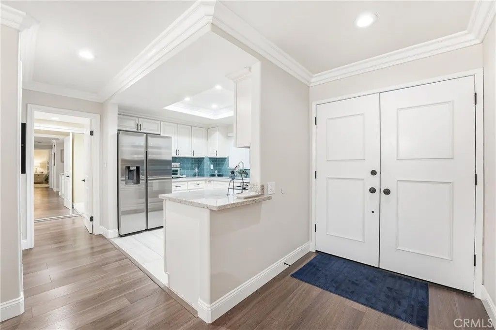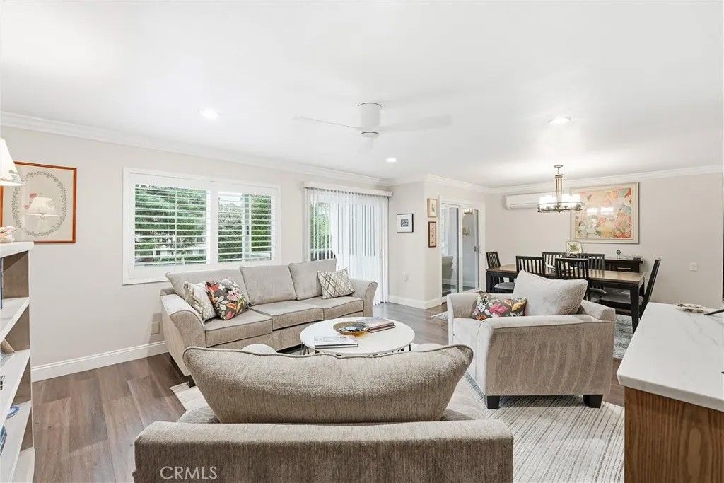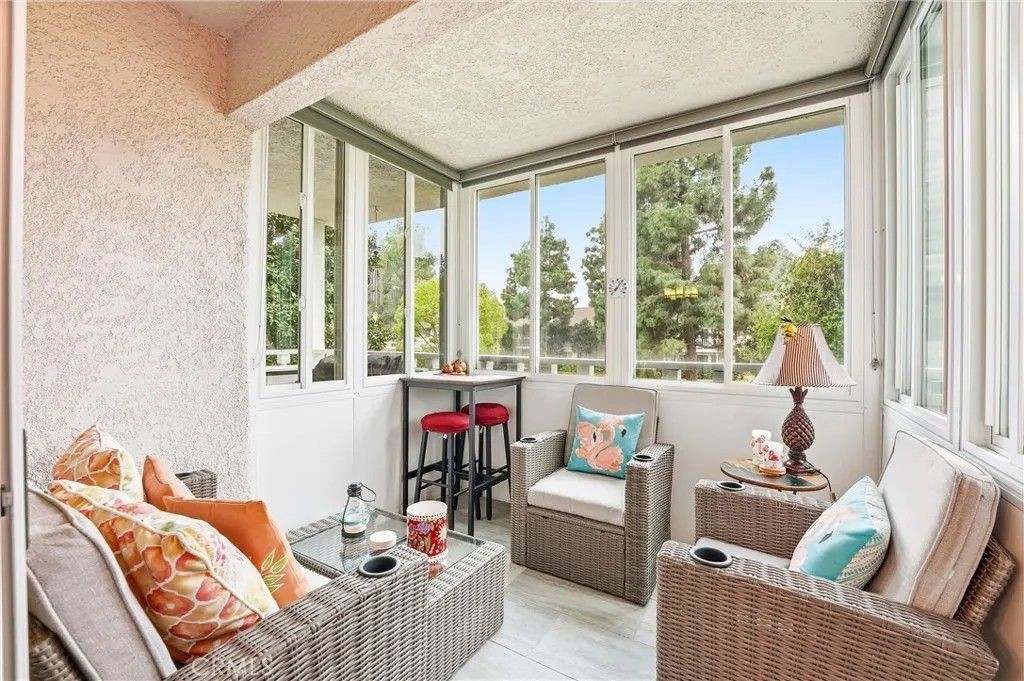 You will love all the recent upgrades this beautiful condo has to offer. This 1st floor Garden Villa condo in Villa Capri is set in one of Laguna Woods most sought-after locations with unmatched accessibility to Gate 1 and the Performing Arts Center, and just a short walk or golf cart ride aware to Clubhouse 1, Mothers Market, CVS, and the library. This is a condo that can be financed! This thoughtfully designed floor plan welcomes you into a generous living & dining area with serene greenbelt and tree top views, complemented by a versatile semi-private flex space currently used as an office. This desirable and unique feature exclusive to this condo offers exceptional flexibility for todays modern lifestyle. The balcony is designed with both open-air space for barbecuing, and an enclosed windowed section creating a perfect indoor-outdoor retreat. The kitchen has been tastefully updated and enlarged with modern cabinetry, new refrigerator & dishwasher, and a charming built-in coffee station making everyday living both functional and enjoyable. Two spacious bedrooms feature contemporary closet doors, while both bathrooms have been remodeled in a clean stylish aesthetic. Recessed lighting and smooth ceilings throughout enhance the homes warm and welcoming ambiance. All windows and doors are dual-paned, and each room offers individually controlled, energy-efficient split systems and/or ceiling fans, ensuring personalized comfort and cost-effective living year-round. The property offers ground-floor parking with storage, elevator access to all floors, and a banquet room for community gatherings and social events. Homes offering this level of comfort, convenience, and thoughtfully curated upgrades are rare. Resort Style Amenities: 27-hole Championship Golf Course & 9 holes (Par 3) Golf Course, Full-Service Restaurant, 5 pools, 2 fitness centers, library, garden, walking trails, pickleball, theatre, equestrian center, art studio, tennis, lawn bowling, complimentary bus system, 7 club houses, and over 200 social clubs, and so much more!