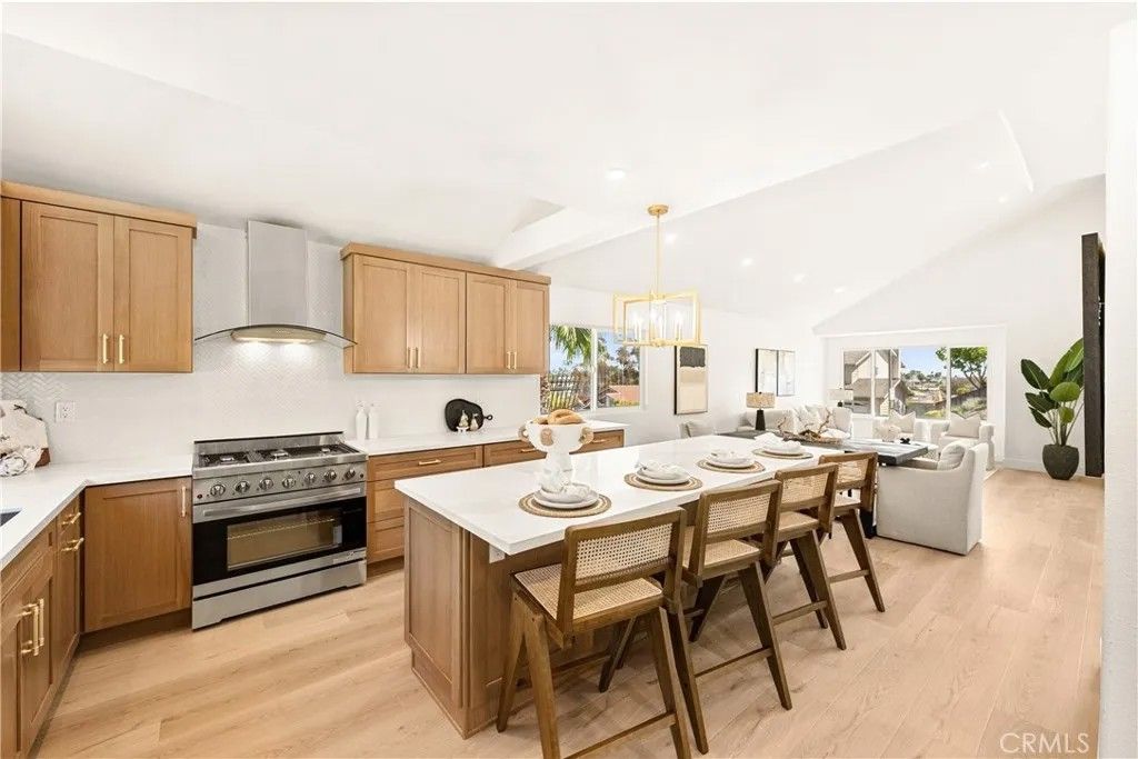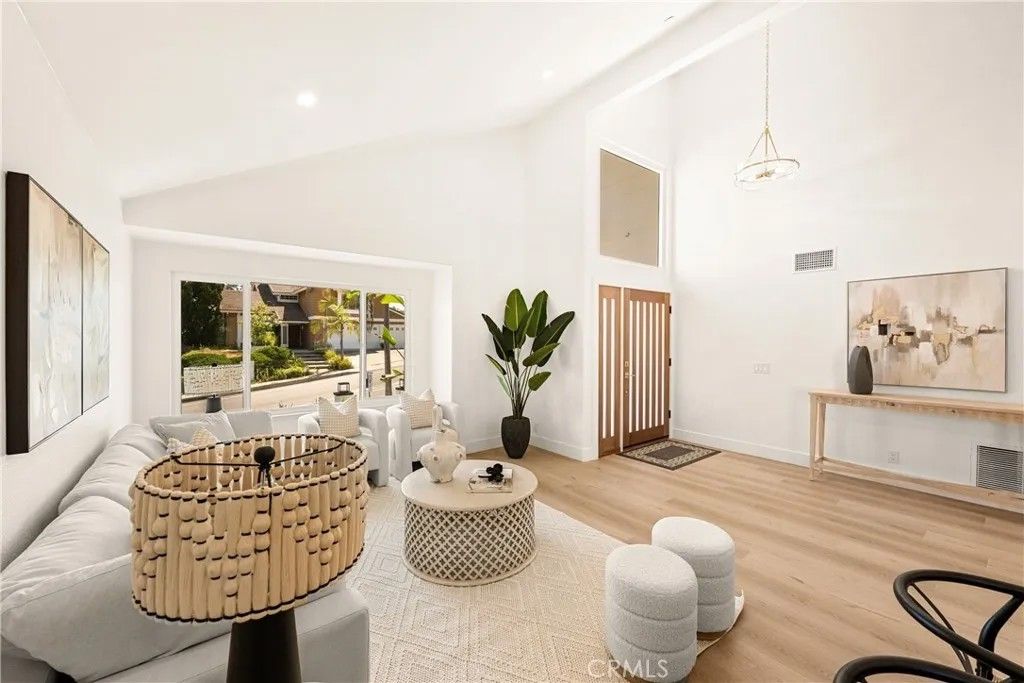 BEAUTIFULLY UPDATED AND MOVE-IN READY! This home has been thoughtfully renovated with a brand-new kitchen, bathrooms, flooring, and fixtures throughout. Upon entry, soaring cathedral ceilings and an open-concept floor plan create an immediate sense of space and light. The formal living room flows seamlessly into the stunning kitchen, featuring a large center island with seating for fourperfect for everyday living and entertaining. The kitchen showcases new stainless steel appliances, oak-toned shaker cabinetry, sleek quartz countertops, and elegant gold-toned faucets and fixtures. New luxury vinyl plank flooring runs throughout the home, tying the modern updates together with warmth and durability. All bathrooms have been updated with new vanities and beautifully tiled showers. Major system improvements include a full PEX repipe and a newer roof completed in 2023. The exterior is equally inviting, with fresh new grass extending from the front yard to the backyard, complemented by new landscaping, plants, and an upgraded sprinkler system. Ideally located near the coastal lifestyle offerings of San Clemente and Dana Point, residents enjoy easy access to beaches, the harbor, coastal trails, shopping, dining, and freeway access. This is a rare opportunity to own a fully updated home in a sought-after South Orange County location.