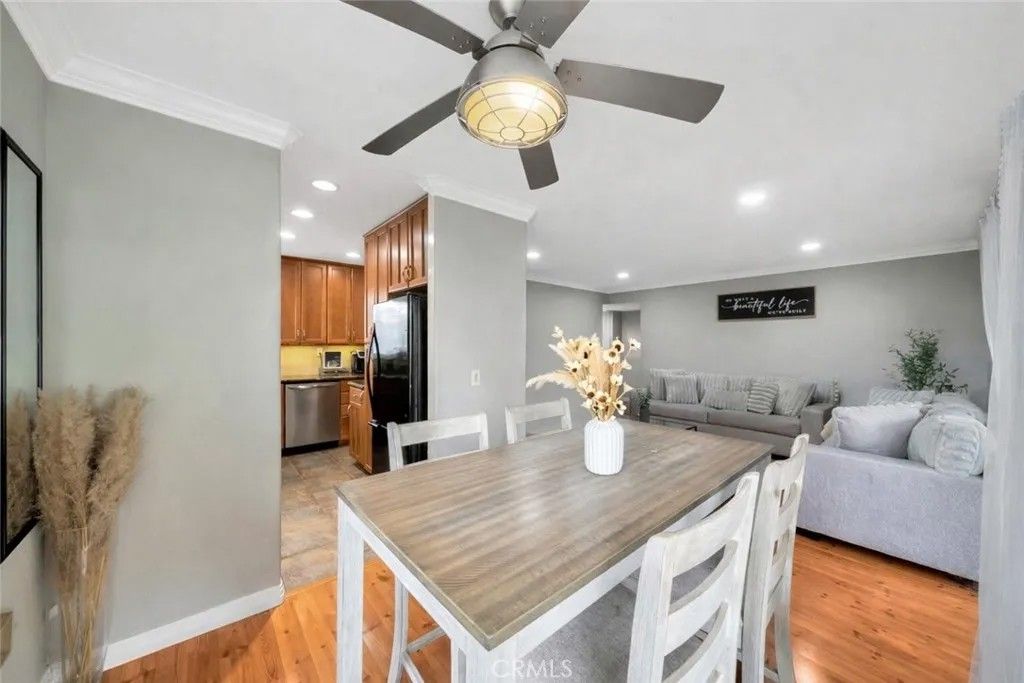 Welcome to West Garden Grove! This beautiful 2-bedroom, 1-bath condo, features a convenient extra vanity sink in one bedroom and direct garage access right to the front door for added ease. This home features crown molding and baseboards throughout, an in-unit stackable washer and dryer, a newer AC unit for year-round comfort, and newly installed light fixtures in the living room and bedrooms, providing a fresh, updated feel. Located in the highly rated and desirable Garden Grove school district, this property presents a fantastic opportunity for first-time buyers, downsizers, or investors seeking strong long-term value in a sought-after area.