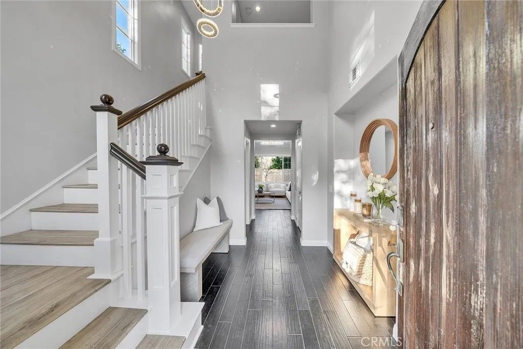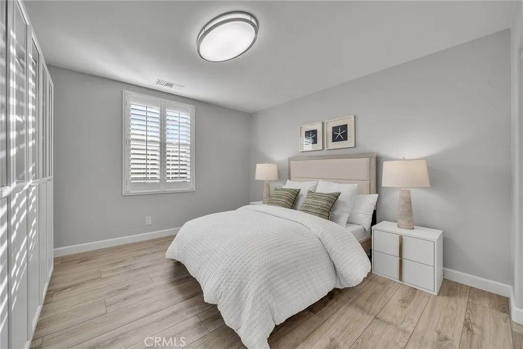Welcome to 59 Midnight Sky a beautifully maintained single-family home located in the highly desirable Woodbury community of Irvine. Ideally positioned on a spacious corner lot directly next to a community park, this light-filled residence offers privacy, open views, and everyday convenience just steps from green space and recreation. Featuring 3 bedrooms and 2.5 bathrooms, the home welcomes you with rich dark hardwood flooring, plantation shutters, and custom recessed lighting throughout. The premium end-unit location enhances natural light, creating a bright and airy atmosphere that complements the homes clean and elegant design. The kitchen showcases a luxury mosaic backsplash, adding refined texture and timeless sophistication. Designed to balance style and practicality, the space flows seamlessly into the dining and living areas ideal for both daily living and entertaining. Upstairs, the expansive primary suite serves as a true retreat, highlighted by two separate walk-in closets for abundant storage and organization. The second level features vinyl flooring throughout, thoughtfully selected to create a cohesive look that is simple, elegant, and easy to maintain. The spacious backyard is a rare offering within the community, providing ample room for gatherings, gardening, or creating your own private outdoor oasis. As a corner lot home, it enjoys enhanced openness and privacy. Downstairs includes a convenient powder room with additional storage tucked beneath the staircase a practical detail that maximizes functionality. Located within close proximity to award-winning schools and Woodburys resort-style amenities including pools, parks, clubhouse, sports courts, and scenic trails. Shopping, dining, and major transportation routes are all just minutes away. An exceptional opportunity to own a corner-lot single-family home with a large backyard and park-side setting in one of Irvines most sought-after neighborhoods.