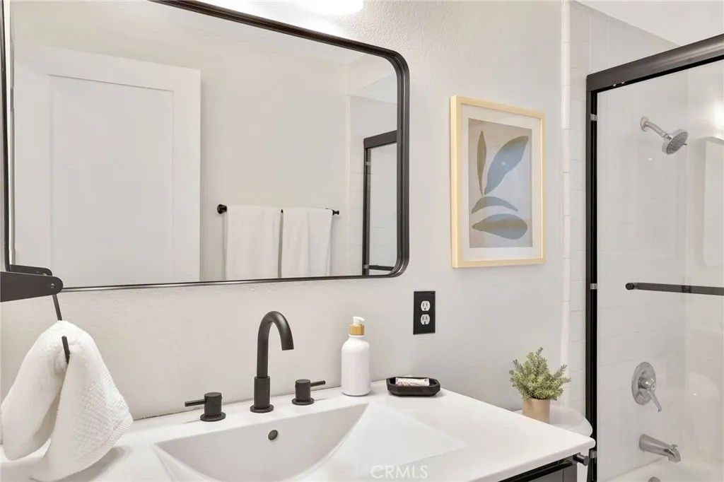 Welcome to 7161 Little Harbor Drive, a rare single-story end-unit in the highly desirable Beachwalk community of Huntington Beach. Thoughtfully remodeled and expanded, this end-unit residence is the largest A-unit in the community, offering unmatched privacy, abundant natural light, and versatile living spaces. The gated front entry is uniquely positioned and not directly adjacent to a neighboring unit, enhancing both curb appeal and a sense of seclusion. The reconfigured entry features luxury Italian tile flooring, an added hall closet, and an open, airy layout made possible by relocating the new high efficiency HVAC system to the newly insulated attic. The kitchen offers updated white shaker cabinetry and new stainless steel appliances and flows seamlessly into the dining and living areas. The living room showcases vaulted ceilings, skylights, a modern light fixture, and high-end window upgrades that bring in light and coastal breezes. French doors from both the living room and dining area open to the patio, creating effortless indoor-outdoor living. The primary bedroom offers a serene retreat with brand-new French doors to the patio and extensive closet space with custom cherry wood doors and cedar-lined interiors. Notably, this end-unit is the only one in the community with three added windows along the bedroom walls, maximizing light, airflow, and privacy. The secondary bedroom features a high ceiling and plentiful light. All interior doors, closet doors, and shower and tub enclosures are brand new. A permitted additional living area with custom built-ins makes this home the largest A-unit in Beachwalk and is ideal for a home office, media room, or optional third bedroom, adding flexibility and long-term value. Additional highlights include an attached fully insulated garage, nearby visitor parking, new interior and exterior lighting, fresh landscaping, a tankless water heater, and a 10-year life termiticide barrier treatment for long-term protection. The resort-style Beachwalk community offers swimming pools, including a junior Olympic-size pool, spa, saunas, remodeled clubhouses, sand volleyball, and scenic walking paths lined with trees. This end-unit home is conveniently located near the main recreation center and within walking distance to Huntington Beach schools, HB Dog Beach, Seacliff Shopping Center, and Huntington Club. Pacific City dining, shopping, and entertainment are just minutes away.