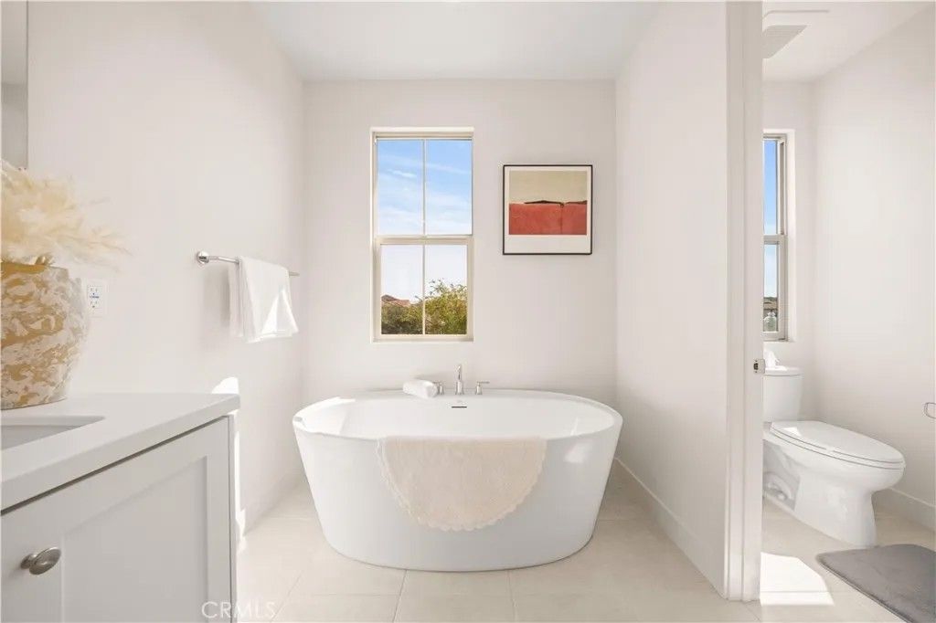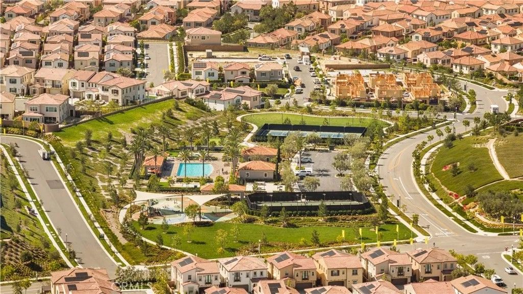 This beautiful home located in the highly desirable Portola Springs community of Irvine, with north-south orientation offers 4 bedrooms and 3 full bathrooms across 2,410 square feet of well designed living space. Positioned directly across from the community park, the home enjoys open park views and abundant natural light throughout. The bright open concept living area connects seamlessly to the dining space and modern kitchen, creating an ideal setting for everyday living and entertaining. The kitchen includes a center island, ample cabinetry, and clean contemporary finishes. The well-appointed kitchen features quartz countertops, a center island with seating, and a large walk-in pantry. High-end appliances include a Sub-Zero built-in refrigerator, a Wolf 6-burner gas range with oven, a Wolf wall oven, and a Cove dishwasher. The main level bedroom and full bathroom provide convenient space for guests, extended family, or a private home office. Large windows and sliding doors bring in abundant natural light while connecting the interior living space to the private backyard patio. Upgraded flooring throughout the home adds warmth and a refined modern aesthetic. Upstairs, the primary suite is filled with natural light from multiple windows, creating a bright and airy retreat. The spacious primary bathroom offers dual vanities, a large walk in shower, and a separate soaking tub. Two additional secondary bedrooms share a full bathroom, while a versatile loft provides additional living space ideal for a family lounge, study area, or media room. This beautiful home includes paid-off solar panels for improved energy efficiency. Residents of Portola Springs enjoy resort style amenities including pools, parks, playgrounds, pickleball courts, sports fields, scenic walking and biking trails, barbecue areas, and beautifully maintained greenbelts. Located within the award winning Irvine Unified School District and close to shopping, dining, and major freeways. Don't miss it!