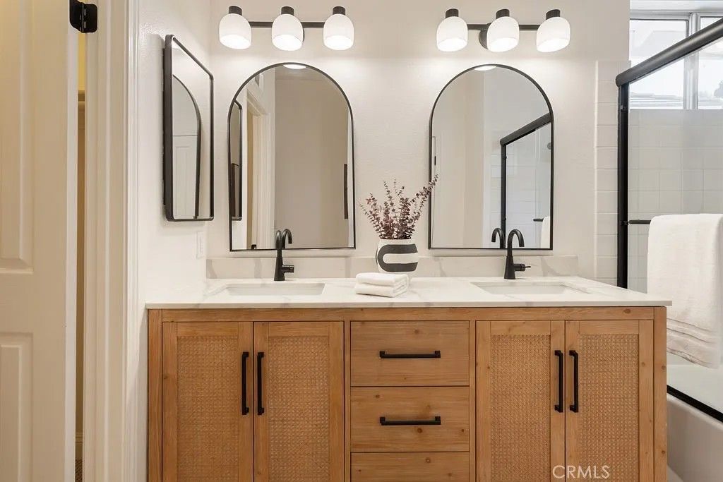 Outstanding 4-bedroom, 4-bathroom two-story home with a dedicated downstairs office/gym that can easily serve as a 5th bedroom, located in the highly sought-after Summit community of Anaheim Hills a rare opportunity to own a custom floor plan with one of the best view lot locations in the neighborhood. This desirable layout features two primary bedroom suites, including a spacious upstairs primary retreat with vaulted ceilings, a private balcony, a luxurious bathroom with shower and jacuzzi tub, and a walk-in closet. The second primary suite offers its own en-suite bathroom and walk-in closet, creating an ideal setup for multi-generational living, extended guests, or added privacy. Two additional upstairs bedrooms are connected by a convenient Jack and Jill bathroom, providing both functionality and comfort. Tucked away on a quiet street, this beautiful home enjoys scenic canyon and mountain views, creating a peaceful and private setting. Step through the double-door entry into a bright, light-filled interior featuring a spacious living room and a thoughtfully designed layout ideal for both everyday living and entertaining. The remodeled kitchen features new stainless steel appliances and flows seamlessly into the surrounding living areas, creating a warm and inviting atmosphere. The main level also includes a spacious dining area, an additional family room, and the flexible downstairs office/gym, or potential fifth bedroom. The fully landscaped entertainers backyard is designed for relaxation and gatherings, featuring an in-ground spa, built-in BBQ with large island, and an outdoor fireplaceperfect for hosting friends and family or enjoying quiet evenings at home. Additional highlights include dual air conditioning units, a two-car garage with ample storage, and a dedicated washer and dryer area. Enjoy the tranquil setting of mature hillside trees and year-round outdoor recreation in one of Anaheim Hills most sought-after communities. Ideally located near parks, hiking and biking trails, shopping, dining, and award-winning schools, with convenient access to nearby freeways. Homes with this floor plan, location, and views rarely become availabledont miss your chance to experience this exceptional property in person.