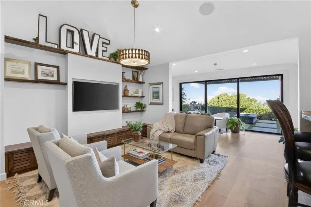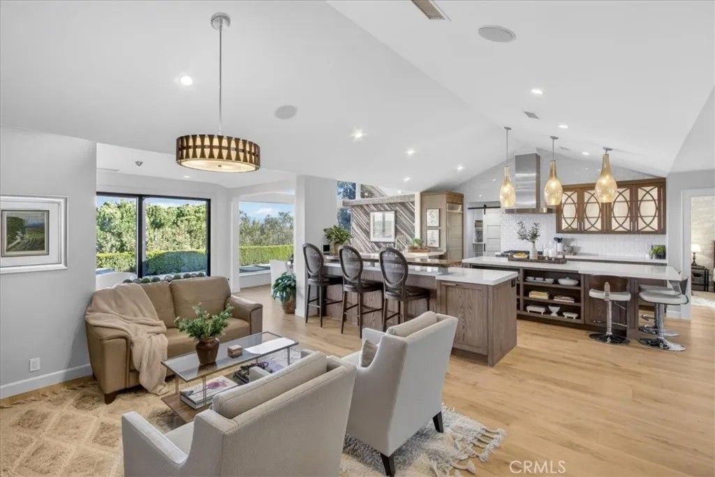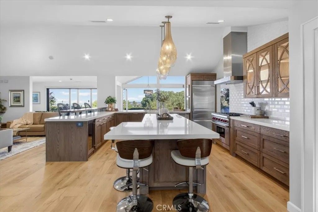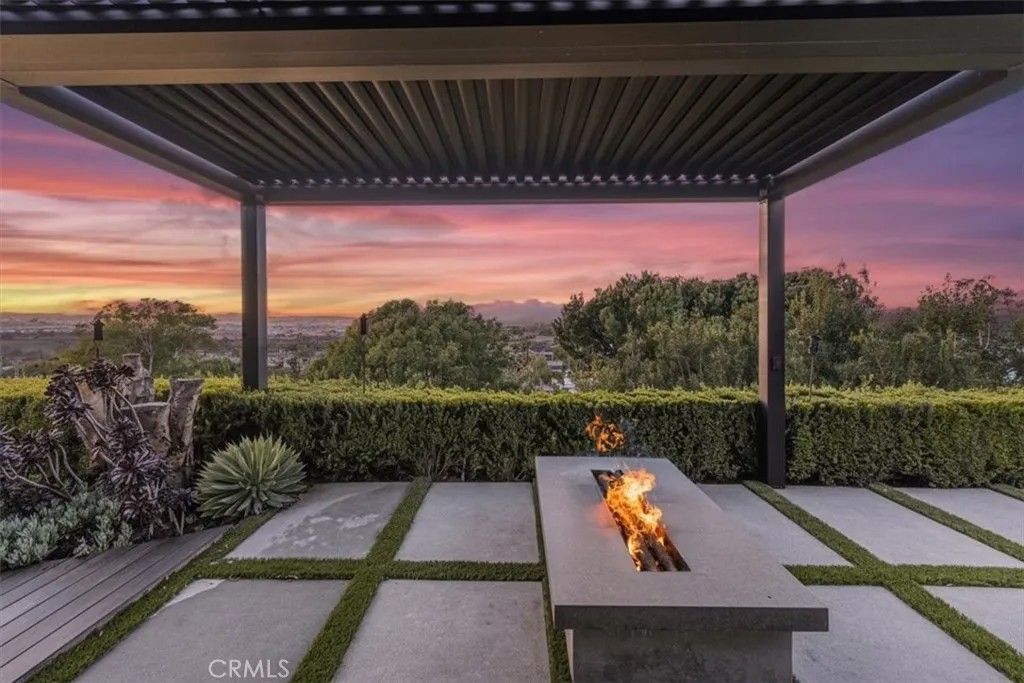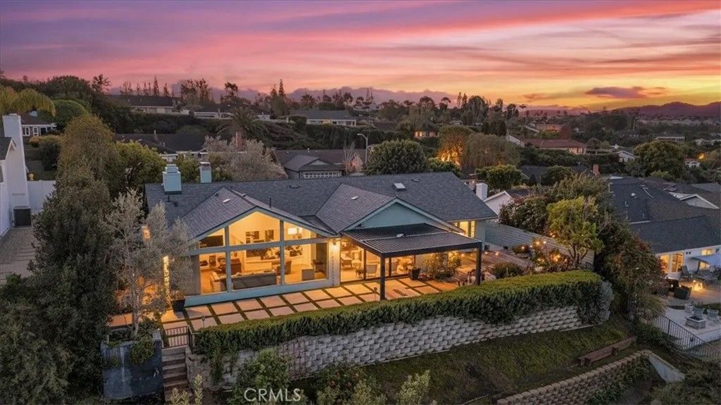 Perched above the rolling hills of Laguna Niguel, this single-story masterpiece is a true passion project- crafted with intention, character, and an artistry rarely found in today's market. Every room reflects thoughtful design, custom finishes, and a harmony with the surrounding landscape that makes the home feel both inspired and inviting. A perfect blend of open-concept flow and beautifully defined spaces. The home offers 3 bedrooms, 3 baths, game area, family room, lounge area, and a versatile flex room that is ideal as an office, gym or library. White oak flooring grounds the living spaces with warmth, while designer wallpapers, live-edge shelving, and granite accents add curated richness and visual interest. At the center of everyday living is the chef's kitchen, outfitted with a Wolf range, a large refrigerator, custom cabinetry, a walk-in pantry, drawer-style dishwasher and microwave, and a built-in wine fridge. Just off the lounge sits a custom-finished dry bar, with its own granite details. Each of the home's three bedrooms includes a custom-designed closet, offering stylish and efficient storage. One of the two guest bedrooms enjoys its own en-suite bath with a soaking tub. The primary suite is a peaceful retreat, featuring french doors that open to the garden deck made with Ipe wood, a spa inspired bath with a walk-in shower and dual sinks, and an extraordinary walk-in closet with ample room for two. Seamless indoor-outdoor living comes through a Jeld-Wen multi-slide door, which opens the back of the home to panoramic views of the Laguna Niguel valley and the Saddleback Mountains, plus a Fleetwood disappearing door to the front garden. Whether taking in the soft morning light or the dramatic sunset color, the backdrop is unforgettable. The outdoor spaces are thoughtfully created for relaxation and entertainment: a built-in BBQ that includes a smoker, a fire feature for cozy gatherings, beautiful gardens, tranquil fountain, fruit trees, and an auto-roof pergola that provides shade without obstructing the view. Privacy and serenity define the backyard experience. Additional enhancements include a new roof (fall 2025), water softener, tankless water heater, abundant garage storage, and a well equipped laundry room. Reimagined with heart and refined with exceptional detail, this property is more than a home--it's a signature expression of California living, where custom craftsmanship meets modern luxury and sweeping natural beauty.
