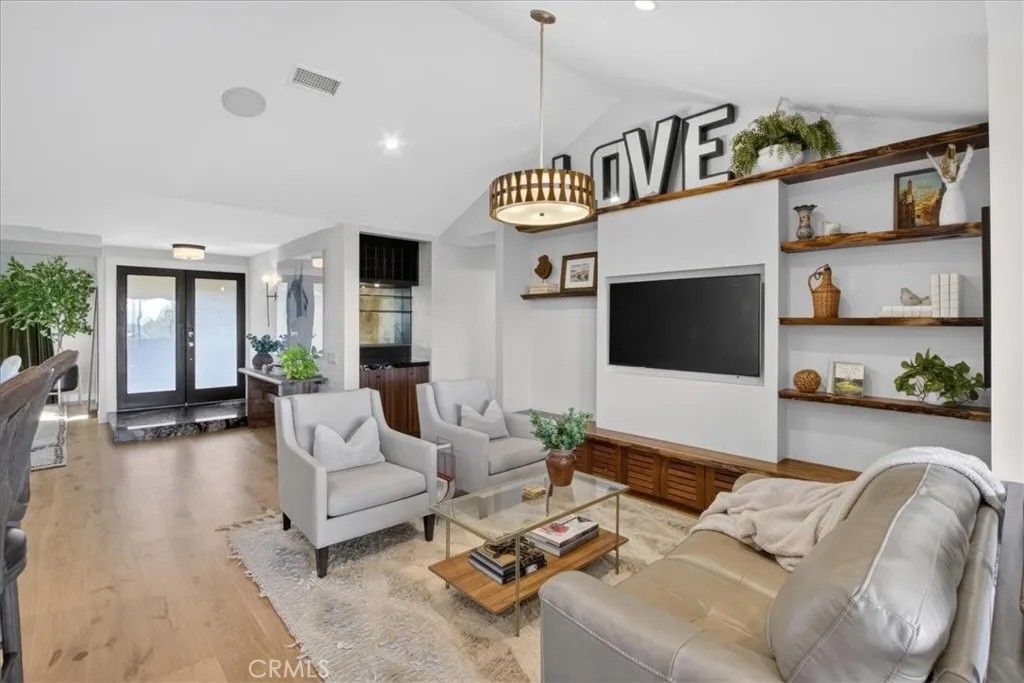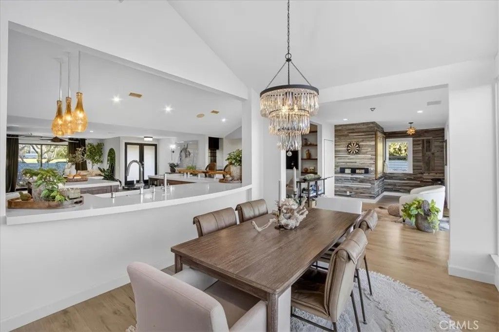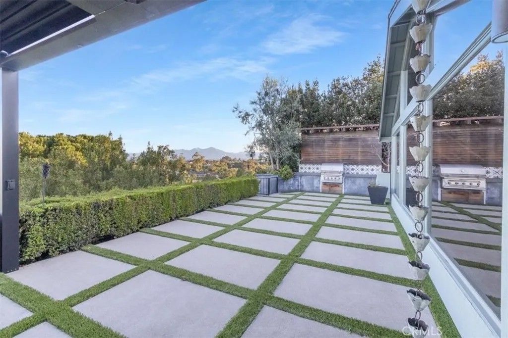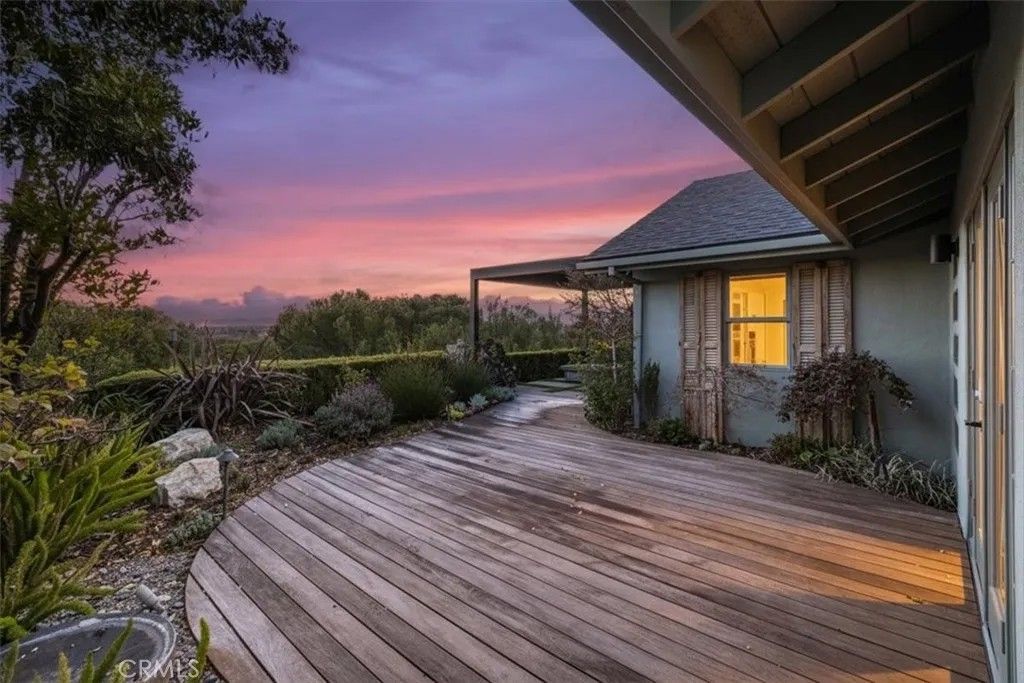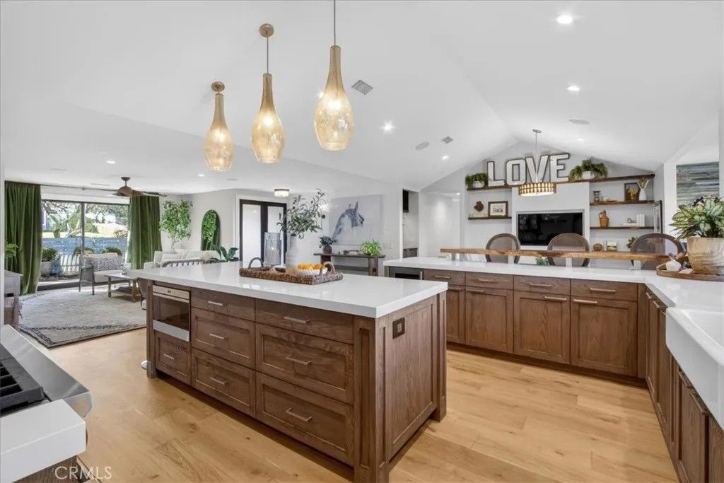 Perched above the rolling hills of Laguna Niguel, this single-story masterpiece is a true passion project- crafted with intention, character, and an artistry rarely found in today's market. Every room reflects thoughtful design, custom finishes, and a harmony with the surrounding landscape that makes the home feel both inspired and inviting. A perfect blend of open-concept flow and beautifully defined spaces. The home offers 3 bedrooms, 3 baths, game area, family room, lounge area, and a versatile flex room that is ideal as an office, gym or library. White oak flooring grounds the living spaces with warmth, while designer wallpapers, live-edge shelving, and granite accents add curated richness and visual interest. At the center of everyday living is the chef's kitchen, outfitted with a Wolf range, a large refrigerator, custom cabinetry, a walk-in pantry, drawer-style dishwasher and microwave, and a built-in wine fridge. Just off the lounge sits a custom-finished dry bar, with its own granite details. Each of the home's three bedrooms includes a custom-designed closet, offering stylish and efficient storage. One of the two guest bedrooms enjoys its own en-suite bath with a soaking tub. The primary suite is a peaceful retreat, featuring french doors that open to the garden deck made with Ipe wood, a spa inspired bath with a walk-in shower and dual sinks, and an extraordinary walk-in closet with ample room for two. Seamless indoor-outdoor living comes through a Jeld-Wen multi-slide door, which opens the back of the home to panoramic views of the Laguna Niguel valley and the Saddleback Mountains, plus a Fleetwood disappearing door to the front garden. Whether taking in the soft morning light or the dramatic sunset color, the backdrop is unforgettable. The outdoor spaces are thoughtfully created for relaxation and entertainment: a built-in BBQ that includes a smoker, a fire feature for cozy gatherings, beautiful gardens, tranquil fountain, fruit trees, and an auto-roof pergola that provides shade without obstructing the view. Privacy and serenity define the backyard experience. Additional enhancements include a new roof (fall 2025), water softener, tankless water heater, abundant garage storage, and a well equipped laundry room. Reimagined with heart and refined with exceptional detail, this property is more than a home--it's a signature expression of California living, where custom craftsmanship meets modern luxury and sweeping natural beauty.