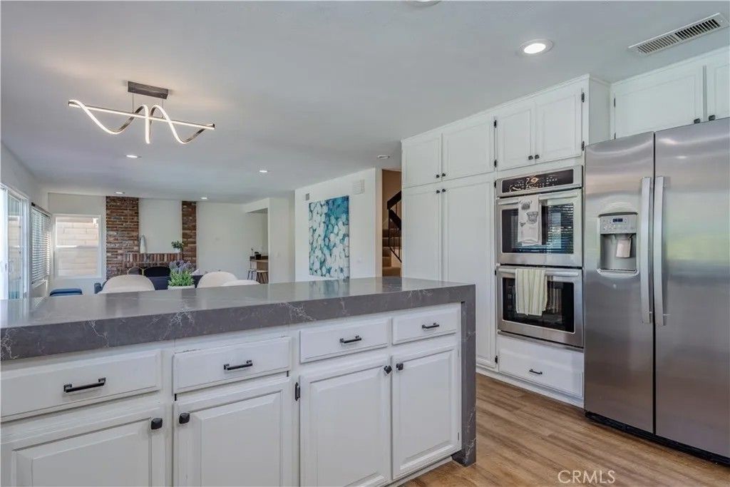 Nestled in a serene neighborhood of Aliso Place, this stunning pool home boasts 4 spacious bedrooms and 2.5 bathrooms, all within a generous 2,858 square feet of thoughtfully designed living space. The heart of the home is the breathtaking modern kitchen, featuring luxurious quartz countertops and a unique custom backsplash. The warm vinyl flooring creates a cohesive flow into the inviting eating area, seamlessly connecting with the cozy family room. Here, a fireplace creates an intimate atmosphere, complemented by an entertainers wet bar that sets the stage for memorable gatherings. Adjacent to these living spaces, youll find a separate living room and dining area, offering additional options for relaxation and hosting friends and family. As you ascend to the upper level, you'll be captivated by the primary suitea true retreat. This expansive space with soaring ceilings, includes an ensuite bathroom that features a dual sink vanity and a private area for a shower and soaker tub, perfect for unwinding after a long day. The primary suite is further enhanced by a large sitting room, which can easily serve as a versatile home office, gym, or hobby space, complete with its own inviting fireplace and a charming adjoining deck that overlooks the sparkling pool and lush trees. The three additional secondary bedrooms provide ample living options for family or guests. The secondary bathroom also impresses with dual sink vanities and stylish upgrades that enhance its functionality. Step outside to discover your personal oasisa breathtaking pool and spa that embodies the true essence of California living, perfect for warm sunny days and delightful evenings under the stars. With newer windows and fresh exterior paint, this home is both attractive and well-maintained. It offers convenient access to highways and is within walking distance of award-winning schools. A neighborhood park with a playground is just a short stroll away, adding to the charm of this ideal location. Best of all, there are no Mello Roos fees or HOA restrictions.