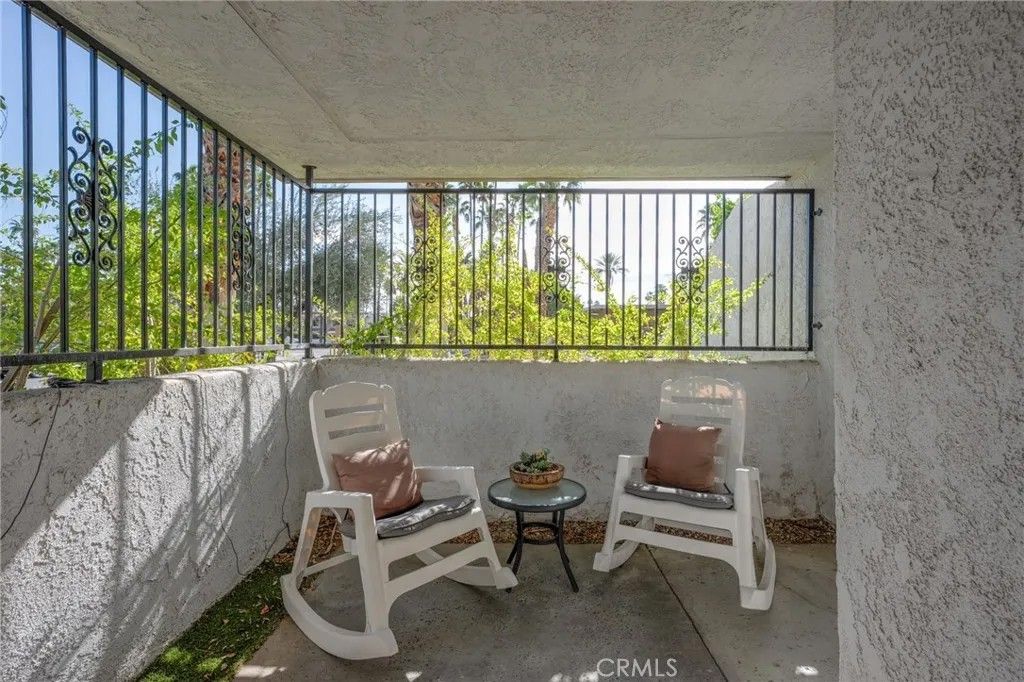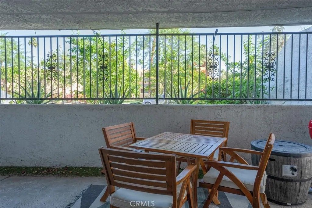 Experience effortless desert living in this impeccably maintained, fully furnished 2-bedroom, 2-bath ground-floor residence. Ideally positioned as a private end unit within a serene community, this home offers both tranquility and an expansive wraparound patioperfect for seamless indoor-outdoor living. Inside, the residence has been thoughtfully updated with quality finishes throughout. The remodeled kitchen features sleek quartz countertops, custom cabinetry, and stainless steel appliances. Both bathrooms have been tastefully upgraded with ample storage and a clean, modern design. Natural light fills the space through plantation shutters and an energy-efficient Vertiglide shade, while dual-pane windows enhance comfort and quiet. A full-size Samsung washer and dryer add everyday convenience. Residents enjoy access to four pools and spas, as well as tennis and pickleball courts, all set alongside a beautifully maintained golf course. Assigned covered parking is included, and nearby shopping, dining, and cafes are just a short distance away. This pet-friendly community permits short-term rentals with a 5-day minimum. HOA dues include water, trash, and grounds maintenance. Conveniently located near Tahquitz Creek Golf Resort with easy access to all that Palm Springs has to offer.