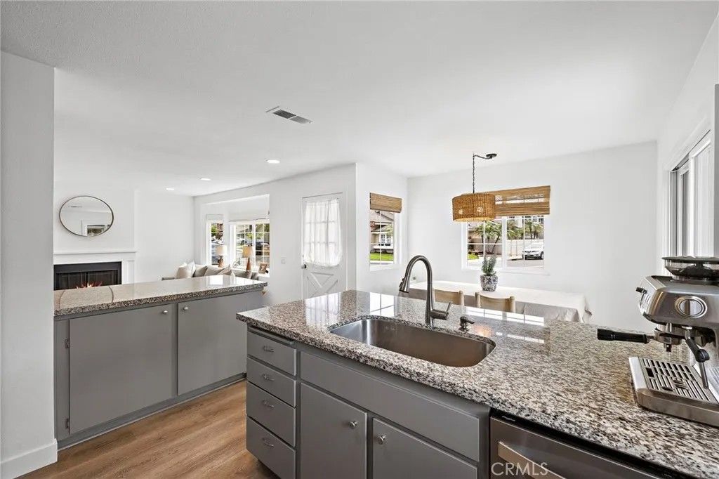 Ideally located, flawlessly designed and pristine in every way! Welcome to 191 Rockwood within the highly coveted community of Woodbridge. This premium single story end-unit home encapsulates all of the style and amenities sought out by even the most discerning buyers. Upon entering, youll notice the abundance of natural light shining in on the open concept family room, kitchen and dining space. The entire home has been recently upgraded with vinyl wood flooring, brand new paint and vinyl windows throughout. The family room offers a gas burning fireplace and large front bay window, while the adjacent kitchen includes newly painted cabinetry, granite counters, glass backsplash, breakfast counter seating, and stainless appliances, including newly upgraded fridge, dishwasher and stovetop hood. The spacious primary bedroom boasts custom wall sconce lighting, custom closet organizers and a desk space. The primary bath includes a new dual sink vanity, new light fixtures and a remodeled shower/tub. The two secondary bedrooms offer mirrored sliding closet doors and share a fully remodeled secondary bathroom, also with dual vanity. Other interior features include new Roman shade window coverings throughout, indoor washer and dryer closet, large hallway linen closet and new ceiling fans. Just outside the sliding kitchen door is the large enclosed side yard, ideal for kids to play or hosting weekend BBQs. The private carport is conveniently located just outside the side yard gate. The newly installed AC, heater and Nest thermometer ensure interior comfort for several years to come. A short 2 block walk from the home is the Blue Lake Swim Club, which recently underwent a $4+ million renovation. The park adjacent to the swim club includes expansive grass areas, basketball half court and playground. In addition, Woodbridge offers award winning schools, and the Village Association offers residents amenities such as two landmark lakes, fishing, paddle and row boats, sand-bottom beach lagoons, over twenty pools, volleyball, tennis and pickleball. Come see for yourself!!!
