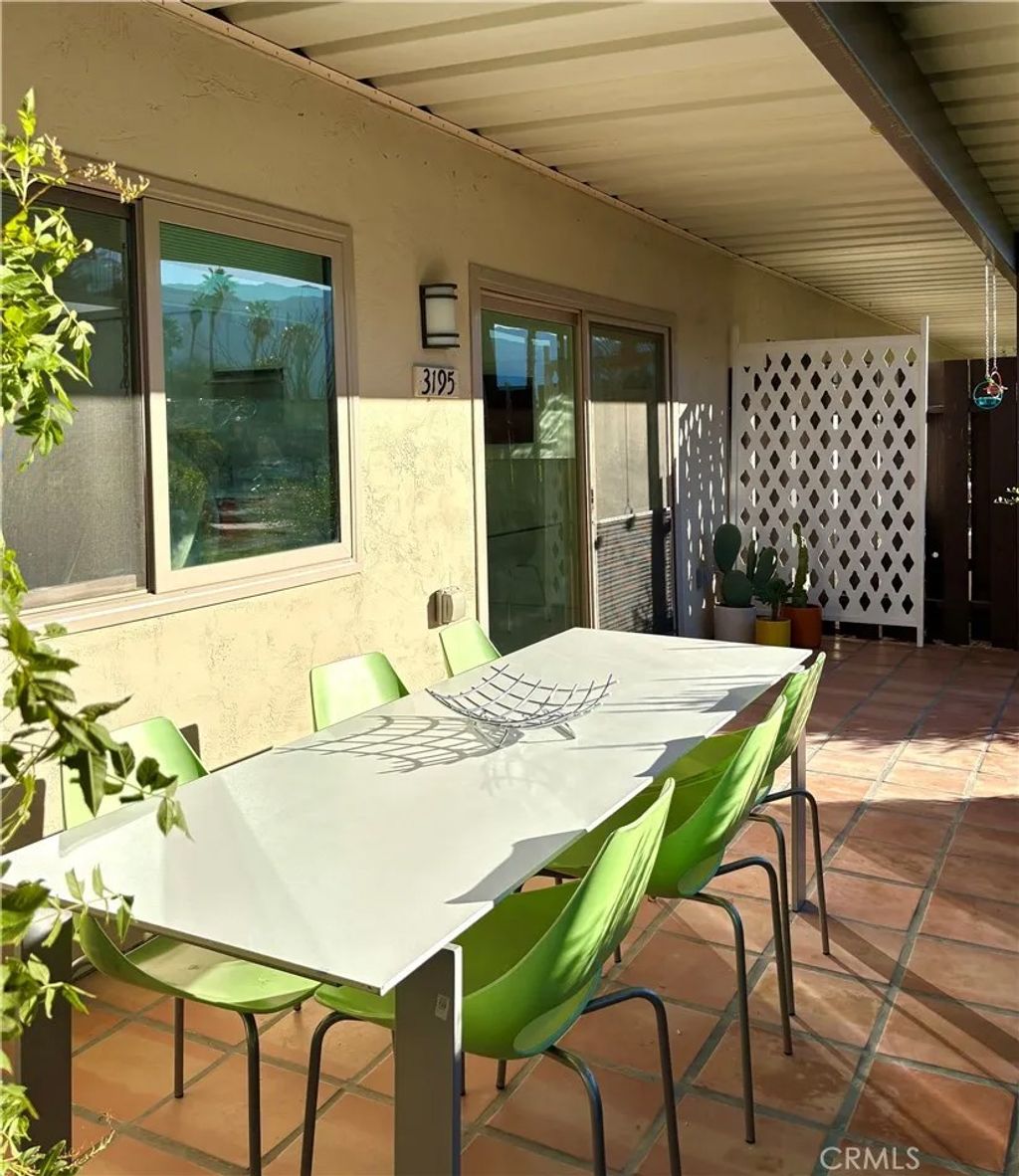 Exceptional Mid-Century inspired remodelabsolutely stunning from every angle. This beautifully updated end unit captures sweeping views of the mountains and lush greenbelt, creating a serene backdrop for everyday living. Offered fully furnished, so you can start enjoying it from day one. Featuring 2 bedrooms and 2 bathrooms, the home has been completely renovated from top to bottom, blending modern comfort with timeless Mid-Century character. Multiple inviting patio areas extend your living space outdoors, ideal for relaxing or entertaining. A truly turnkey property showcasing thoughtful design, fresh finishes, and an effortless indoor-outdoor flow