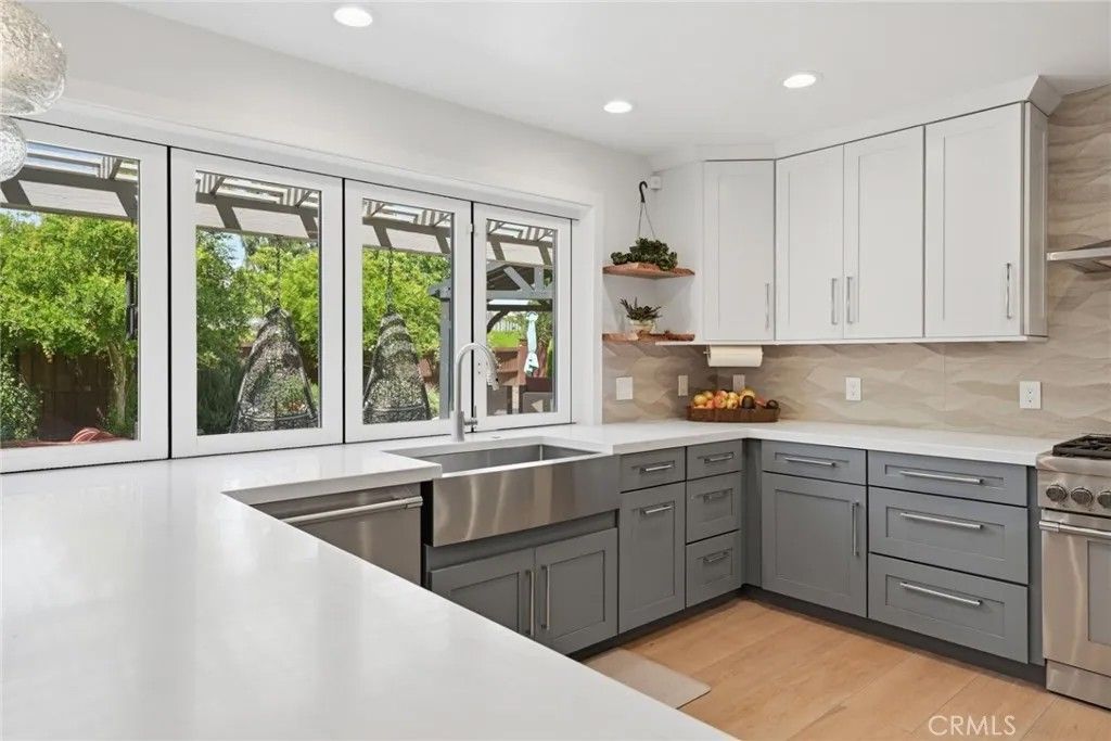 Fully reimagined luxury home in Oceanside with designer finishes, exceptional craftsmanship, and a rare layout ideal for modern and multigenerational living. This extensively renovated residence features two primary suites, a custom gourmet kitchen with premium Thermador appliances, panoramic opening kitchen windows, and dramatic wall-to-wall patio doors that create seamless indoor-outdoor flow.Imported Porcelanosa tile flooring runs throughout the home, complemented by custom California Closets, solid-core sound-insulated doors, and beautifully designed spa-inspired bathrooms with Toto tankless toilets. Every detail reflects quality, comfort, and intentional design.The flexible floor plan is perfect for extended family, guests, or an adult child, offering privacy without compromise. Additional highlights include a fully owned solar system, EV charging station, and 16 fruit trees creating a peaceful and abundant outdoor setting.A rare turnkey property that blends luxury, function, and lifestyle in one of Oceansides most desirable settings.