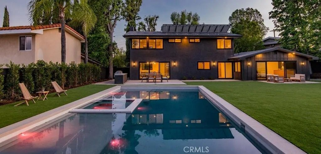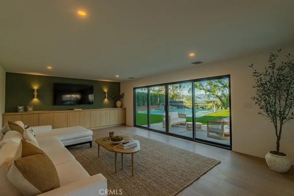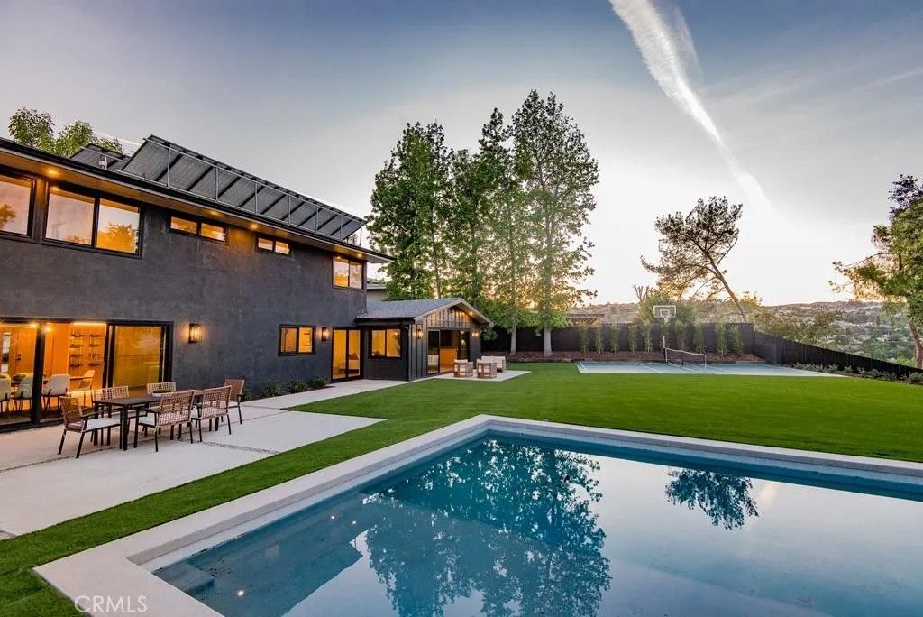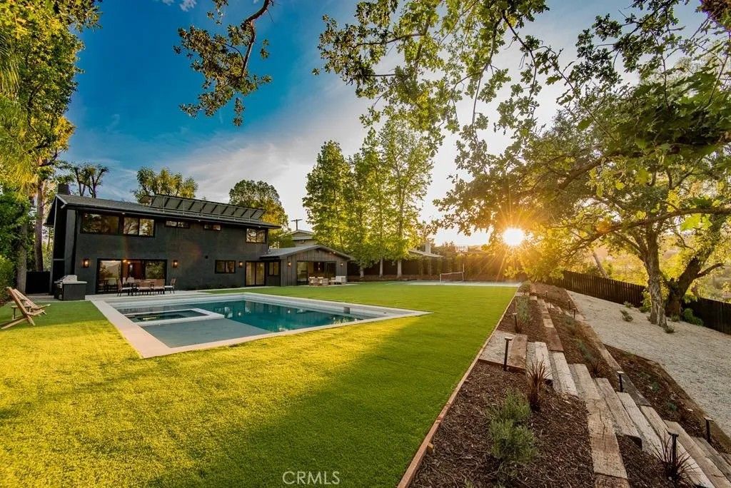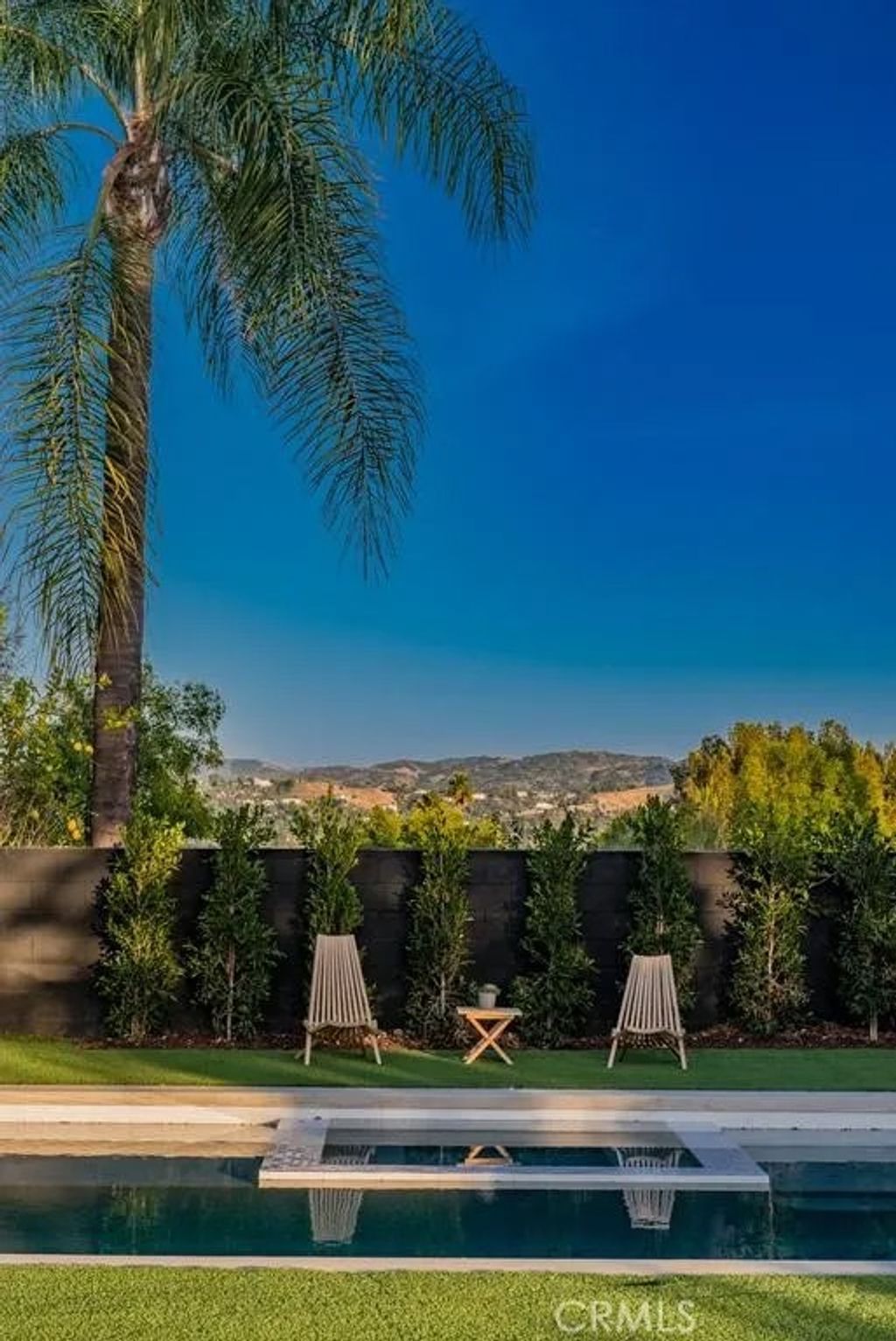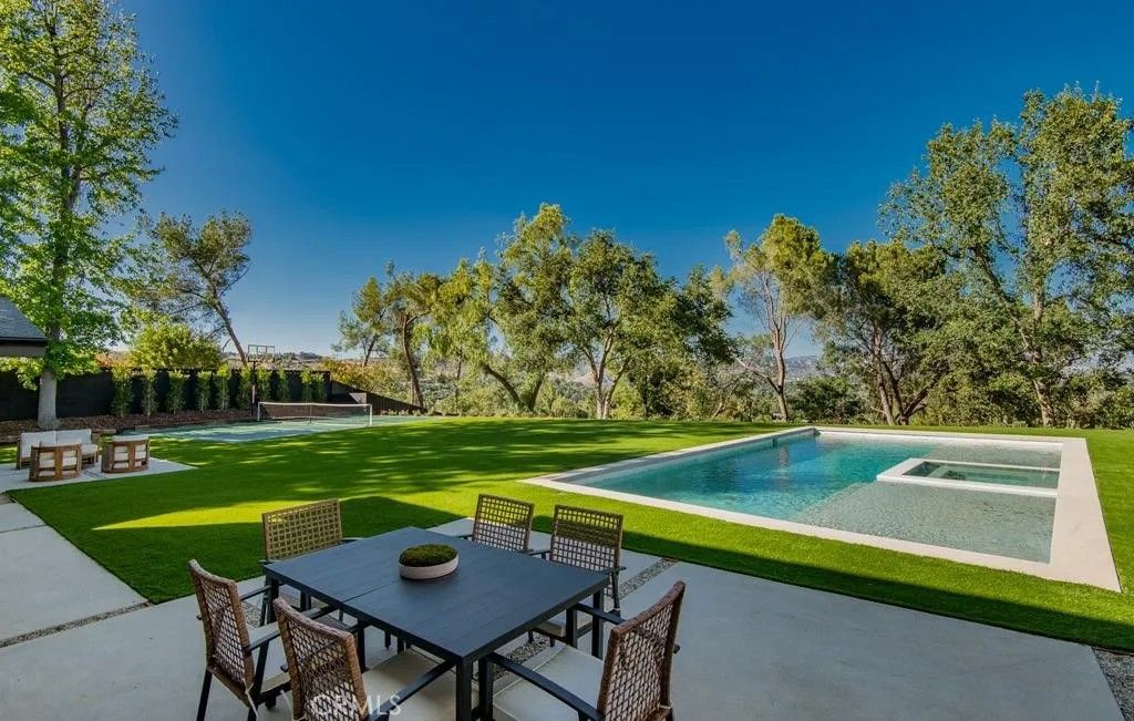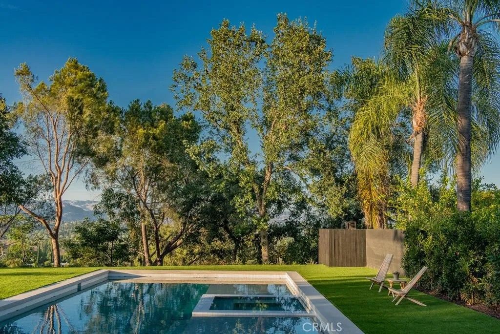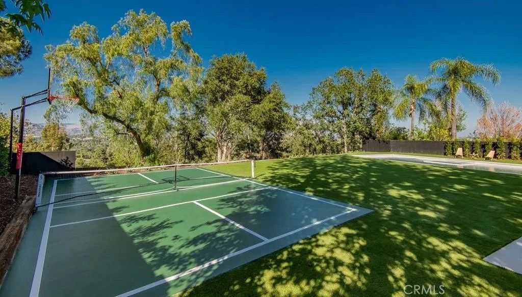 Views , Views , Views Located West of Valley Circle situated on an extremely Huge Lot with Full wrap around City & Mountain Views !! This Completely Reimagined iconic 2 Story mid-century Modern home, timeless architectural Design with modern volume, warmth, and functionality ! 5 bedroom, 4 bath boasting 3527 sqft residence honors the original spirit of the Woodland Hills west design while elevating it for contemporary living. The homes layout has been redesigned to introduce an Open floor plan living room / Great room Dining room , kitchen creating an expansive sense of scale and light rarely found in homes of this era. true indoor-outdoor living allowing the interior spaces to flow effortlessly into the landscape. Throughout the home, custom oak cabinetry has been meticulously designed and built in every space, offering warmth, cohesion, and exceptional storage without compromising clean architectural lines. The dining room flows seamlessly with the Living room and kitchen making it ideal for entertaining. The Massive kitchen is both sculptural and functional, featuring Forno appliances, natural Porcelain countertops, and a Custom 10ft Kitchen island that serves as the heart of the home. The residence offers true primary suite thoughtfully positioned with Full city and Mountain Views , 4 bedrooms on the Second level with the 5th bedroom in-law suite on the main level of the home to provide privacy and flexibility perfect for guests, in-laws, or work-from-home needs. Outside the property sits on 16,700 Lot size continues to impress with an impressive Modern Linear 40ft Lap pool and spa with 2 Bahas great for kids or pool lounge seating and umbrellas. An outdoor Builtin BBQ Entertainment area, and multiple zones designed for relaxation and entertaining. A Full / Pickle ball, Basketball Sport court leading to a lower level of the backyard pebbled fire pit area with plenty of seating area the sets the tone for gatherings both intimate and lively along with a 3 hole putting green. Every system in the home has been updated as this is a fully reimagined residence, offering the confidence of new construction with the soul of a mid-century classic. A rare opportunity to own a true architectural masterpiece rooted in history, redefined for modern life, and perfectly suited for the Woodland Hills West lifestyle.