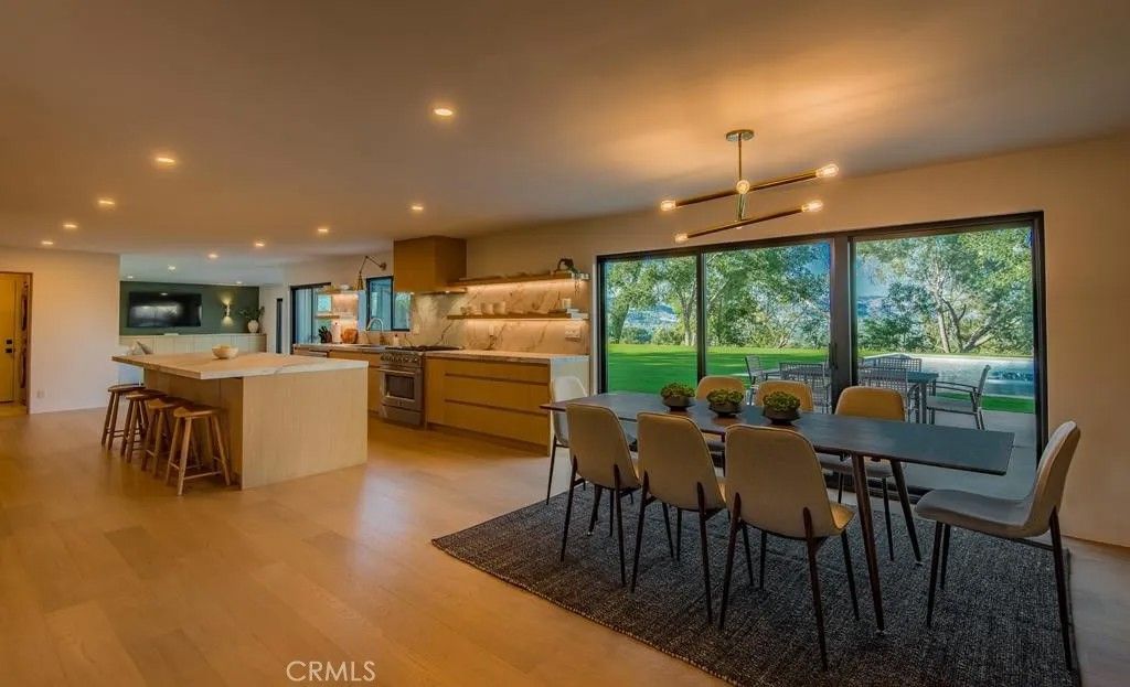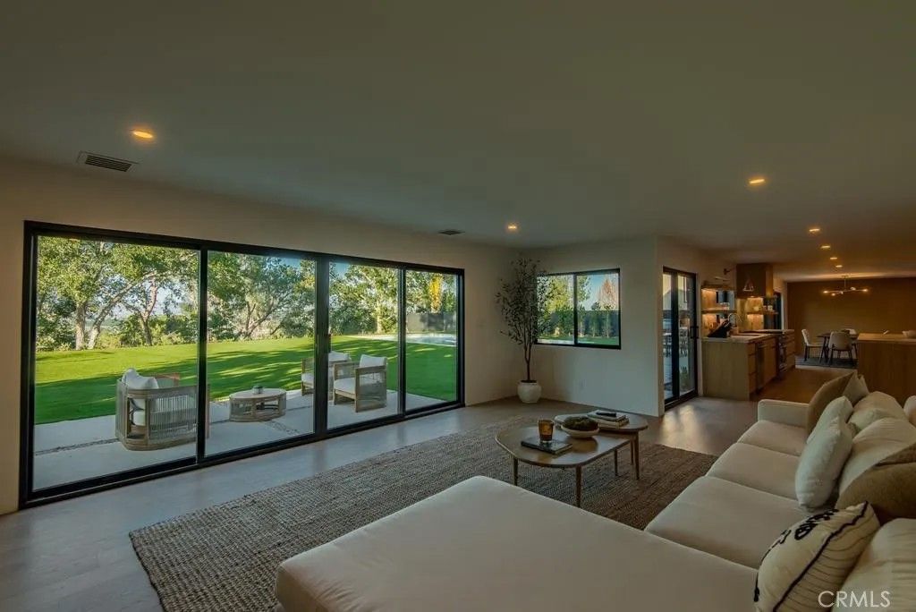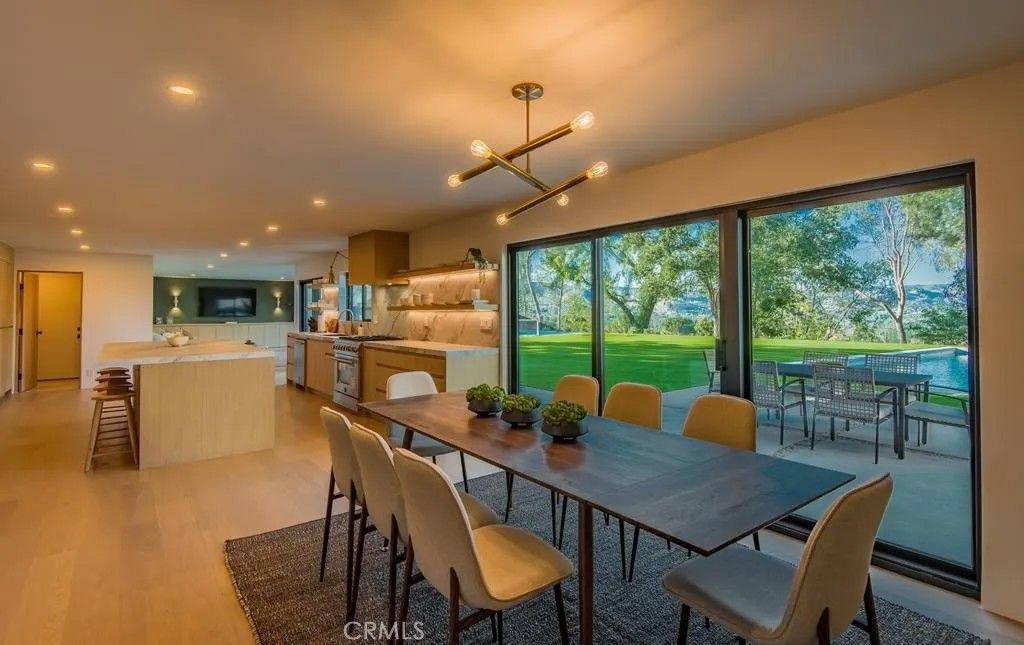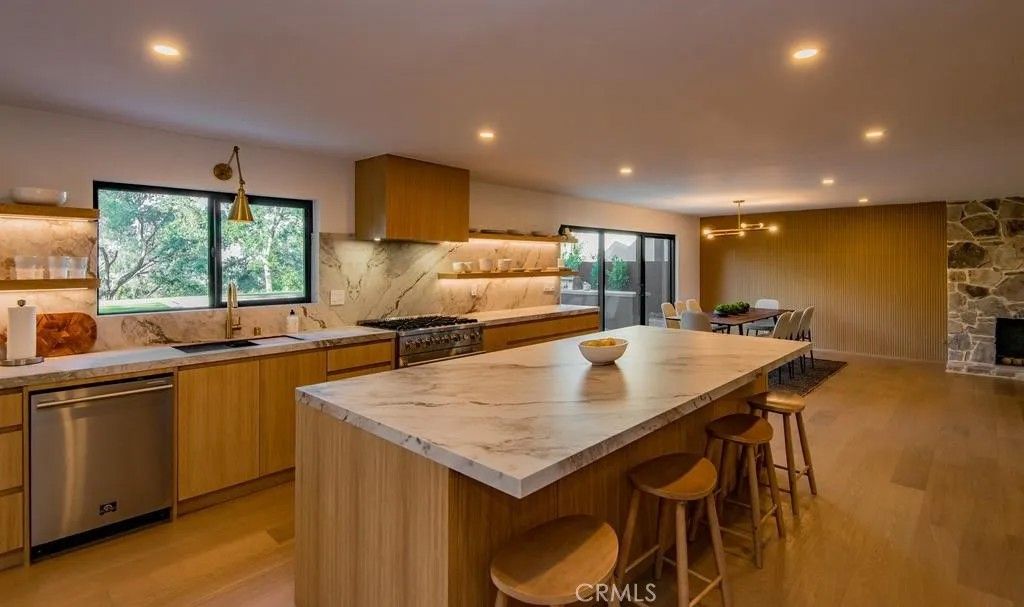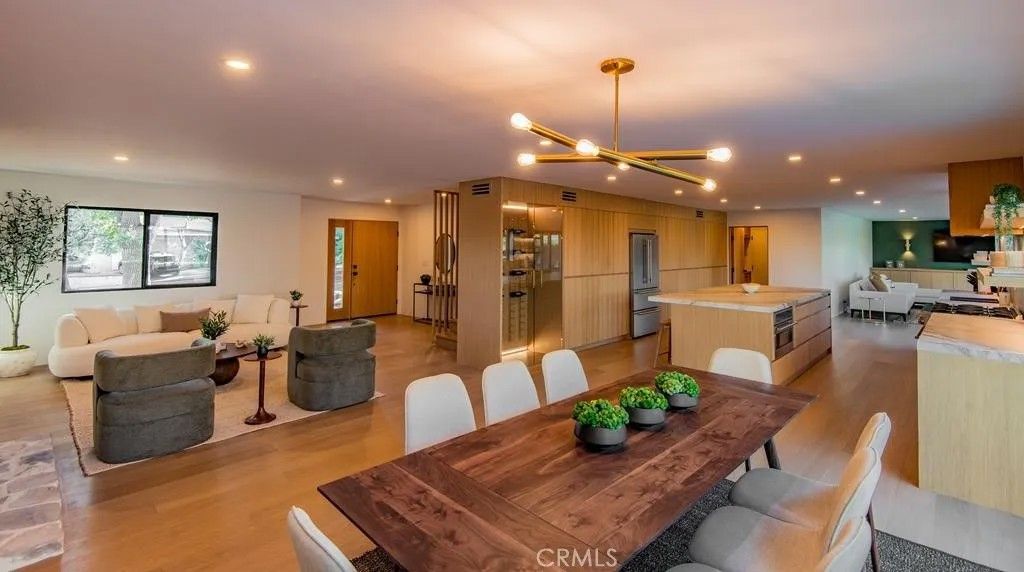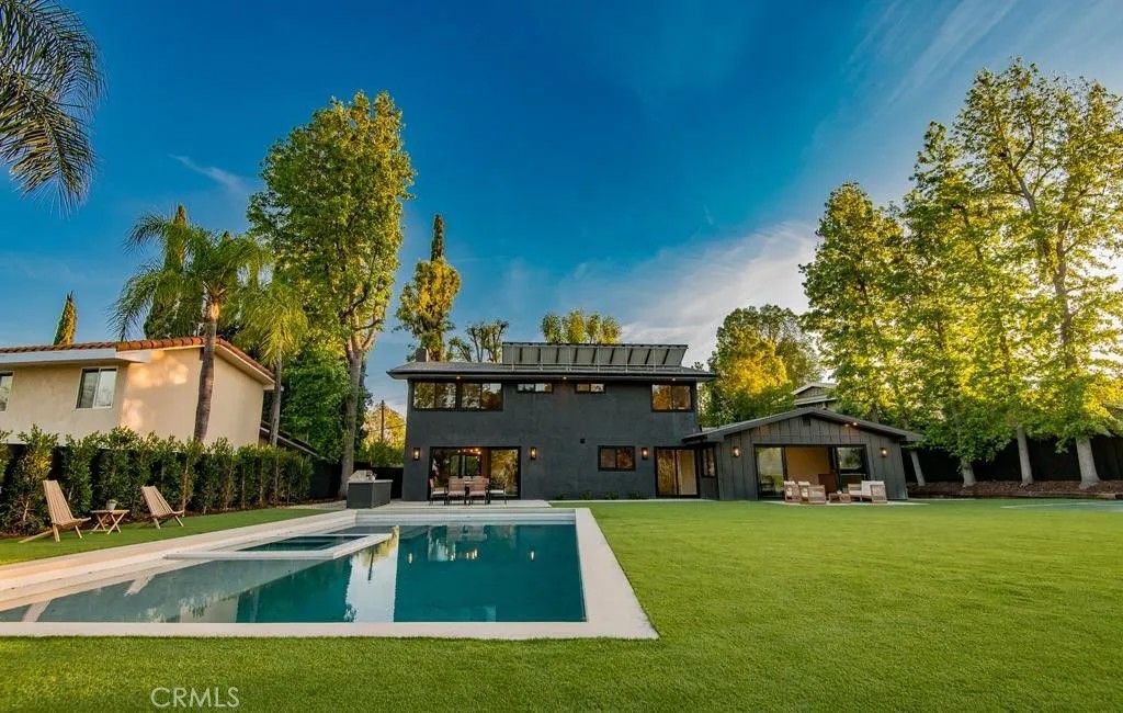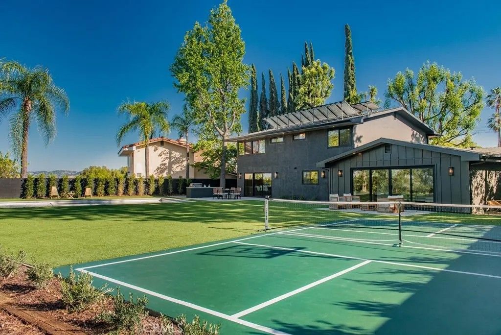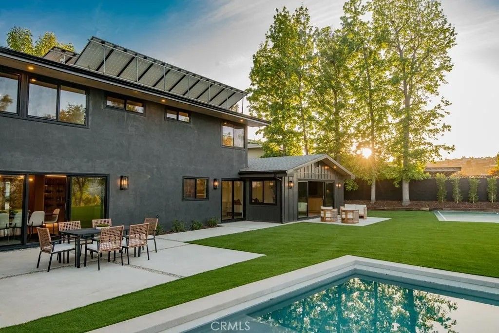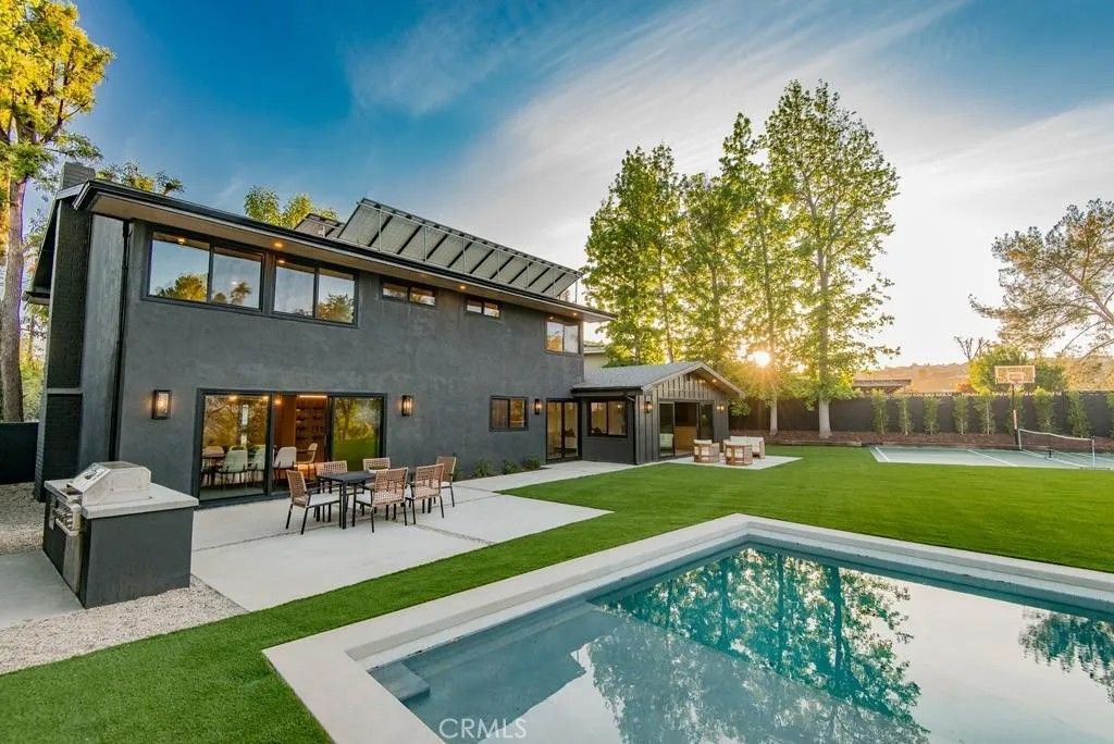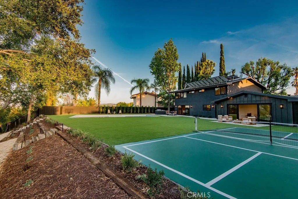 Views , Views , Views Located West of Valley Circle situated on an extremely Huge Lot with Full wrap around City & Mountain Views !! This Completely Reimagined iconic 2 Story mid-century Modern home, timeless architectural Design with modern volume, warmth, and functionality ! 5 bedroom, 4 bath boasting 3527 sqft residence honors the original spirit of the Woodland Hills west design while elevating it for contemporary living. The homes layout has been redesigned to introduce an Open floor plan living room / Great room Dining room , kitchen creating an expansive sense of scale and light rarely found in homes of this era. true indoor-outdoor living allowing the interior spaces to flow effortlessly into the landscape. Throughout the home, custom oak cabinetry has been meticulously designed and built in every space, offering warmth, cohesion, and exceptional storage without compromising clean architectural lines. The dining room flows seamlessly with the Living room and kitchen making it ideal for entertaining. The Massive kitchen is both sculptural and functional, featuring Forno appliances, natural Porcelain countertops, and a Custom 10ft Kitchen island that serves as the heart of the home. The residence offers true primary suite thoughtfully positioned with Full city and Mountain Views , 4 bedrooms on the Second level with the 5th bedroom in-law suite on the main level of the home to provide privacy and flexibility perfect for guests, in-laws, or work-from-home needs. Outside the property sits on 16,700 Lot size continues to impress with an impressive Modern Linear 40ft Lap pool and spa with 2 Bahas great for kids or pool lounge seating and umbrellas. An outdoor Builtin BBQ Entertainment area, and multiple zones designed for relaxation and entertaining. A Full / Pickle ball, Basketball Sport court leading to a lower level of the backyard pebbled fire pit area with plenty of seating area the sets the tone for gatherings both intimate and lively along with a 3 hole putting green. Every system in the home has been updated as this is a fully reimagined residence, offering the confidence of new construction with the soul of a mid-century classic. A rare opportunity to own a true architectural masterpiece rooted in history, redefined for modern life, and perfectly suited for the Woodland Hills West lifestyle.