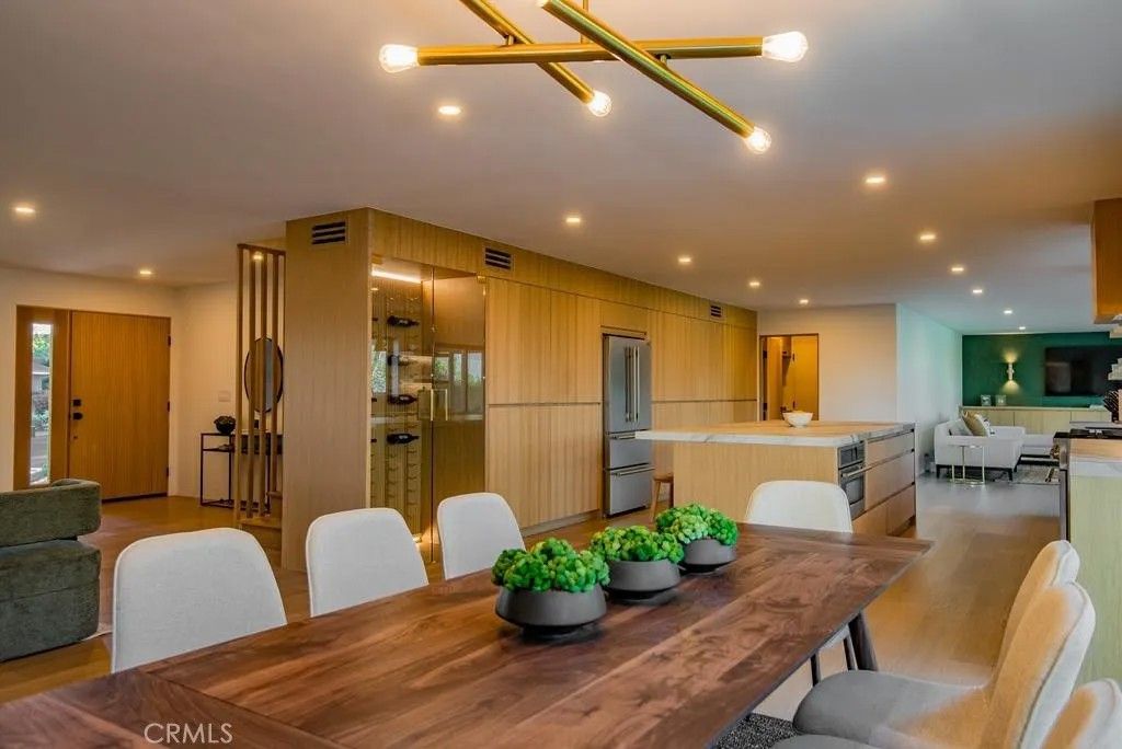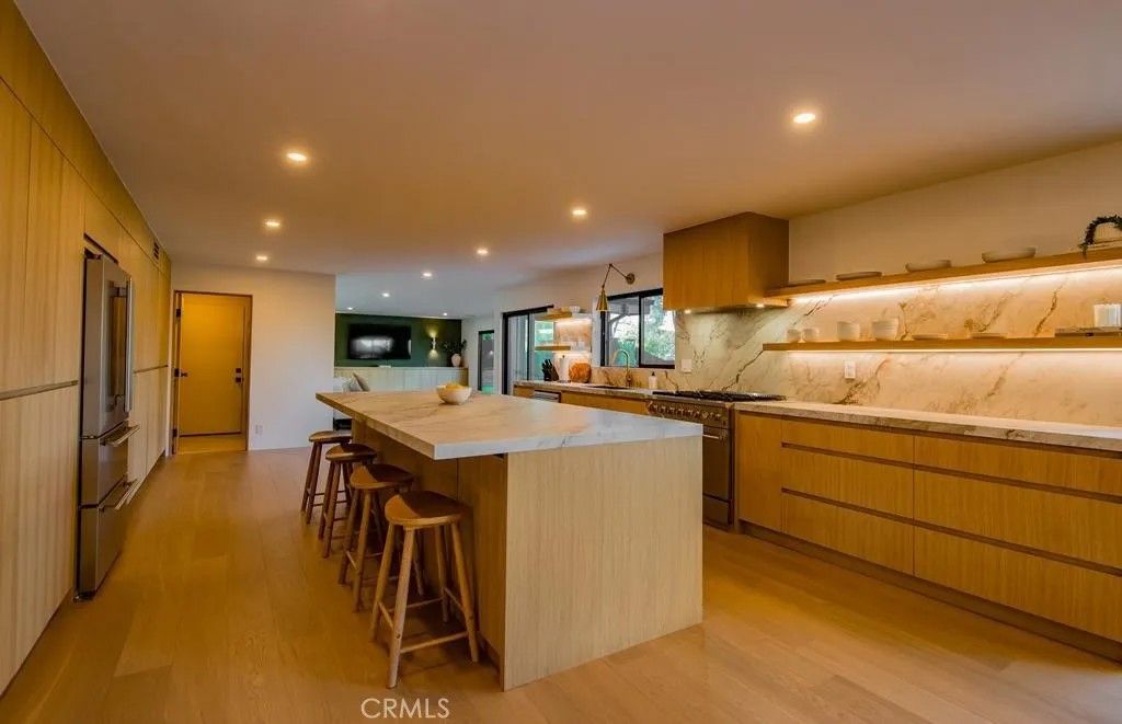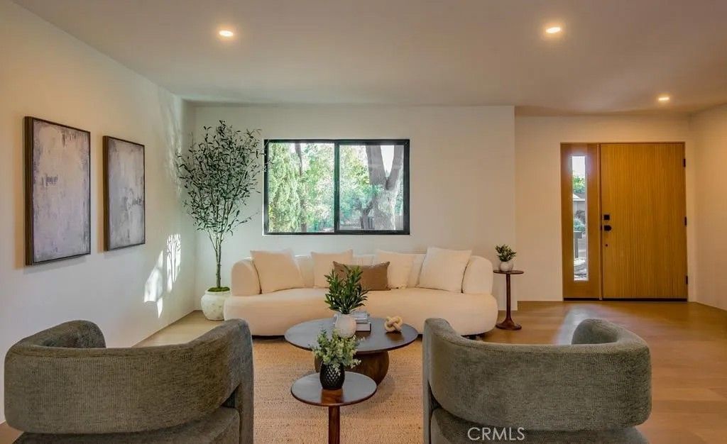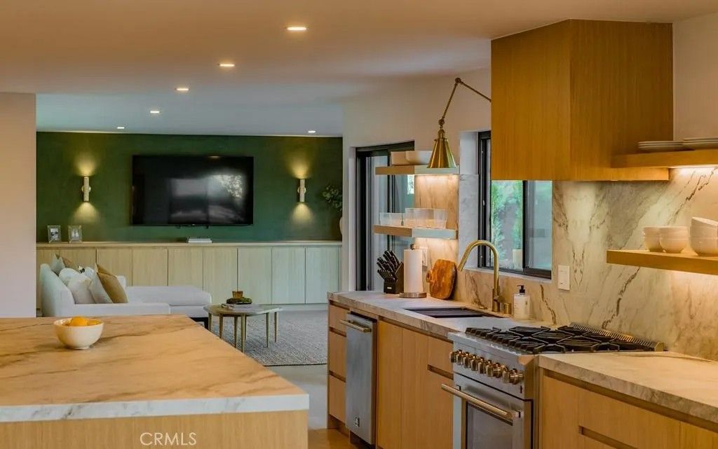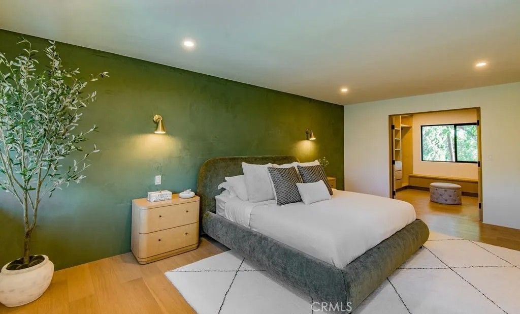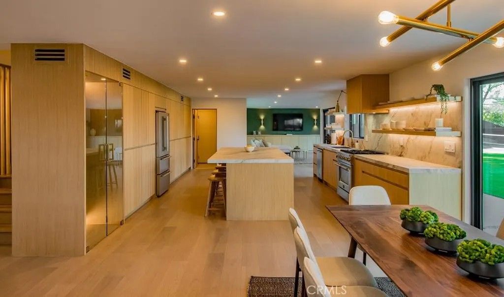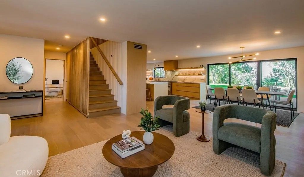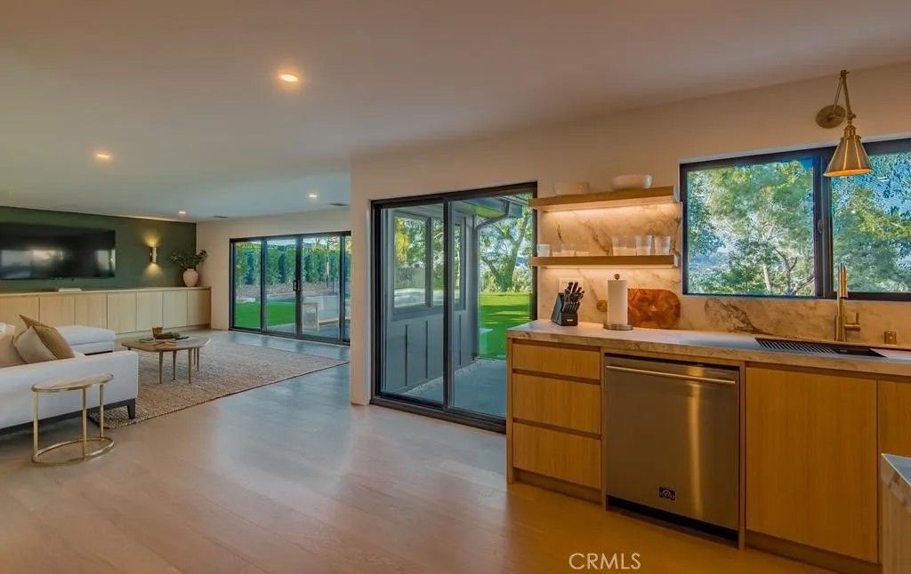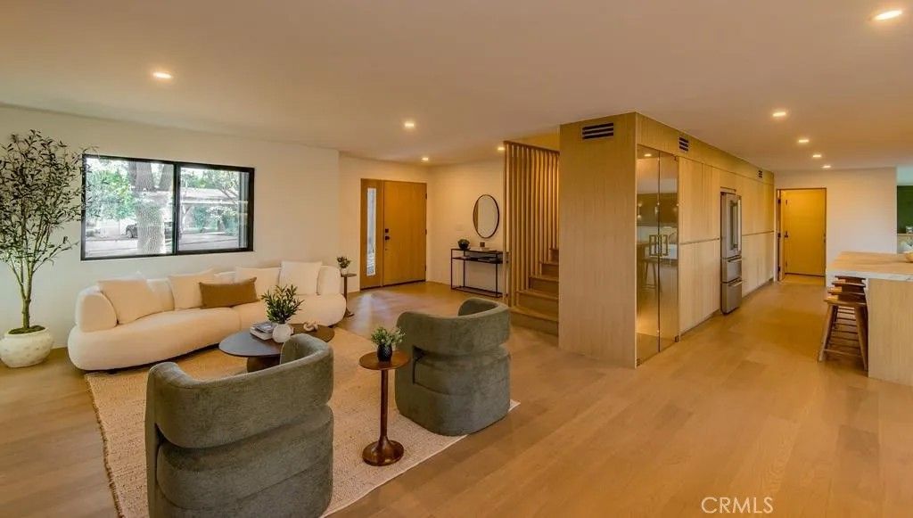Views , Views , Views Located West of Valley Circle situated on an extremely Huge Lot with Full wrap around City & Mountain Views !! This Completely Reimagined iconic 2 Story mid-century Modern home, timeless architectural Design with modern volume, warmth, and functionality ! 5 bedroom, 4 bath boasting 3527 sqft residence honors the original spirit of the Woodland Hills west design while elevating it for contemporary living. The homes layout has been redesigned to introduce an Open floor plan living room / Great room Dining room , kitchen creating an expansive sense of scale and light rarely found in homes of this era. true indoor-outdoor living allowing the interior spaces to flow effortlessly into the landscape. Throughout the home, custom oak cabinetry has been meticulously designed and built in every space, offering warmth, cohesion, and exceptional storage without compromising clean architectural lines. The dining room flows seamlessly with the Living room and kitchen making it ideal for entertaining. The Massive kitchen is both sculptural and functional, featuring Forno appliances, natural Porcelain countertops, and a Custom 10ft Kitchen island that serves as the heart of the home. The residence offers true primary suite thoughtfully positioned with Full city and Mountain Views , 4 bedrooms on the Second level with the 5th bedroom in-law suite on the main level of the home to provide privacy and flexibility perfect for guests, in-laws, or work-from-home needs. Outside the property sits on 16,700 Lot size continues to impress with an impressive Modern Linear 40ft Lap pool and spa with 2 Bahas great for kids or pool lounge seating and umbrellas. An outdoor Builtin BBQ Entertainment area, and multiple zones designed for relaxation and entertaining. A Full / Pickle ball, Basketball Sport court leading to a lower level of the backyard pebbled fire pit area with plenty of seating area the sets the tone for gatherings both intimate and lively along with a 3 hole putting green. Every system in the home has been updated as this is a fully reimagined residence, offering the confidence of new construction with the soul of a mid-century classic. A rare opportunity to own a true architectural masterpiece rooted in history, redefined for modern life, and perfectly suited for the Woodland Hills West lifestyle.