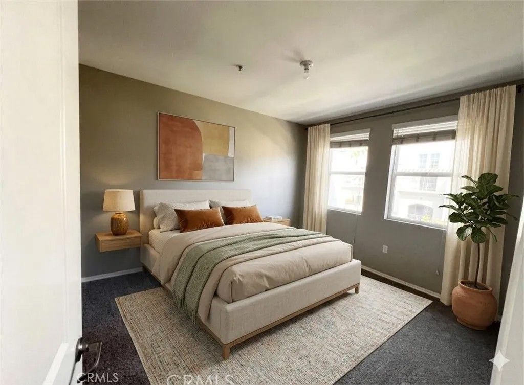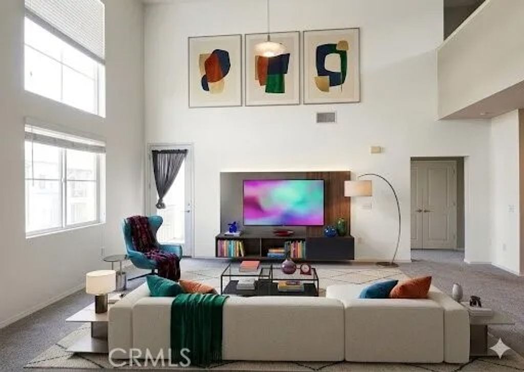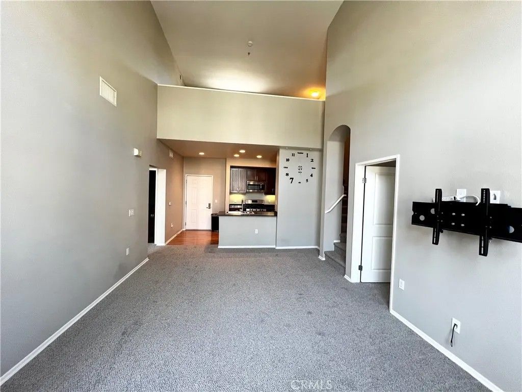 This very large 1,275 sqft TOP FLOOR PENTHOUSE end unit that faces QUIET interior street, 2 Bedrooms & a LOFT is located within the exclusive Avenue One Community right off Jamboree Road. The condo unit is a 2BR/2BA, with a 2-story high ceiling in the living room area, a LARGE LOFT almost the size of a full bedroom, a patio and lots of windows for great lighting. Bedrooms are on first level and the large loft is on the second floor. Hardwood floor in the kitchen area with granite counter tops and sleek, modern style cabinets. Also includes stainless steel kitchen appliances, a pull-down kitchen faucet, and a stacked washer dryer unit. Brand new carpeting and all the windows have blinds for privacy. Two side by side COVERED assigned parking inside GATED enclosed garage conveniently LOCATED on the SAME 4th FLOOR LEVEL as the condo. Tenant occupied, lease will expire June 20th. The Avenue One Community has resort-like amenities including a swimming pool, clubhouse, conference room, BBQ station, a workout gym, an indoor basketball and a tennis court. Property is within close proximity of John Wayne Airport, University of California Irvine, Fashion Island and Newport Beach.