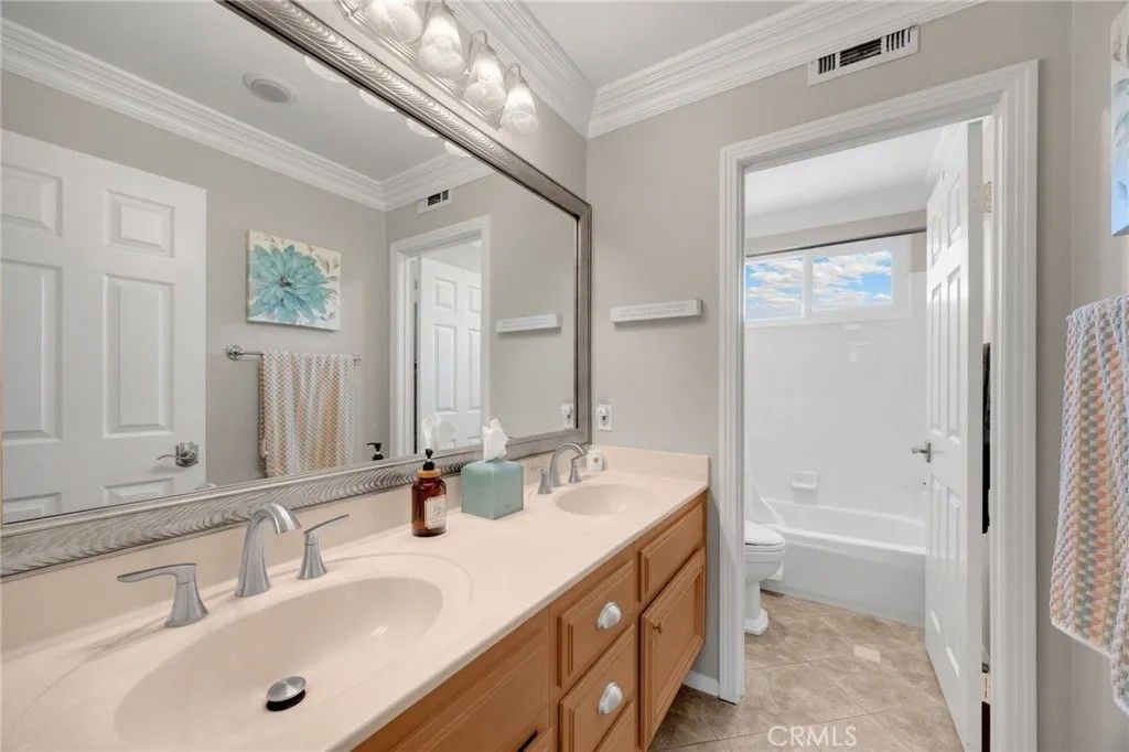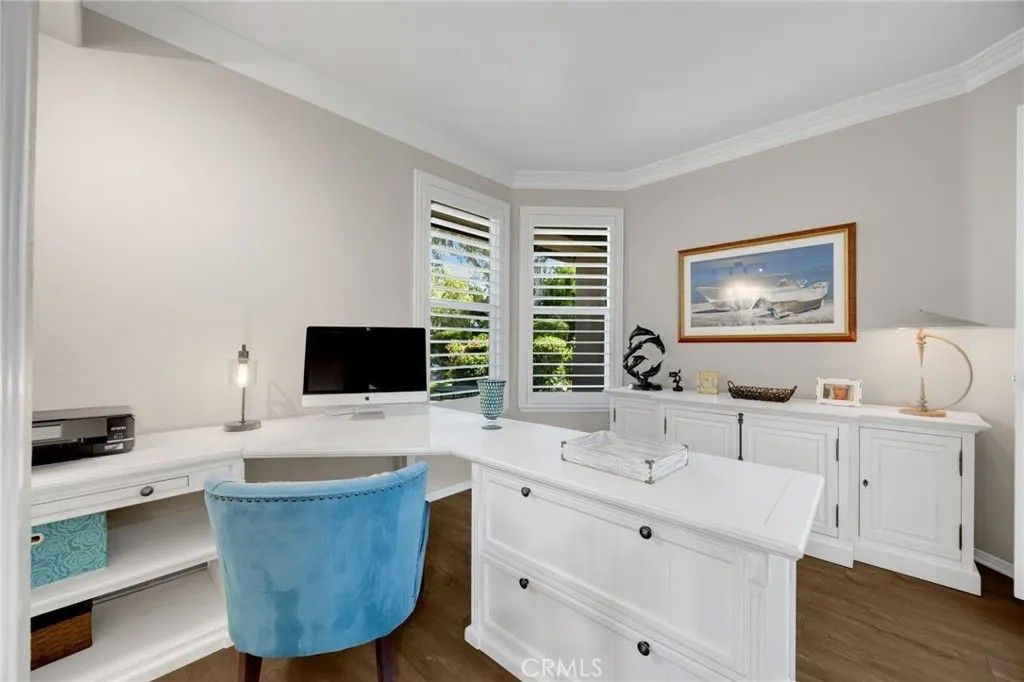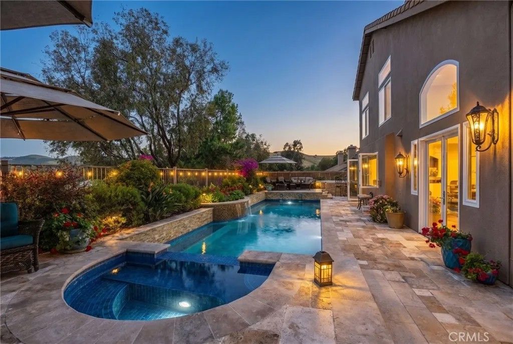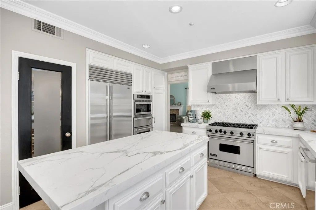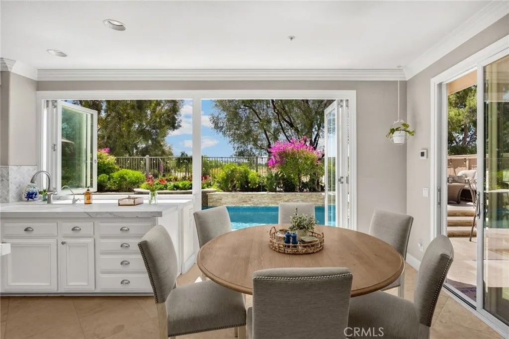 A rare find at the private end of a cul-de-sac, this beautifully upgraded 4-bedroom+office, 3 bath, 3317 sq ft coastal residence captures the essence of elevated San Clemente living. A very open, light-filled floor plan is enhanced by luxury vinyl flooring, custom shutters, vinyl windows, designer selected paint, crown moulding, and a fully prepaid solar lease-combining style, comfort, and efficiency. The entry opens to soaring vaulted ceilings and an elegant, updated fireplace in the living room, where natural light pours through large windows and flows into the dining room. French doors frame the resort backyard and sweeping views, bringing in ocean breezes and a bright, airy coastal ambience. The family room continues the open concept with travertine floors, a second updated fireplace, and a seamless connection to the kitchen. The chefs kitchen is a true coastal showpiece with porcelain countertops on all surfaces, herringbone marble backsplash. Viking professional range, Thermador convection oven+warming drawer, Sub-zero refrigerator, Bosch dishwasher, RO water system under the kitchen sink, and a walk-in pantry. A dramatic bi-fold window, and bi-fold doors open the entire kitchen and breakfast area to the pool, panoramic views. A downstairs office/optional bedroom, full upgraded bath, and laundry room with sink. The primary suite offers vinyl flooring, crown moulding, custom shutters, walk-in closet, and a zen retreat area with fireplace. The spa-inspired bath features a stand-alone soaking tub, quartz counters, dual sinks. Secondary bedrooms feature vinyl flooring, mirrored doors, shutters. Step outside to your private resort backyard, where sweeping views and total privacy create a serene coastal escape. Enjoy a Revco solar-heated, salt-water PebbleTec lap pool with spa and waterfalls, enhanced by night lighting, an outdoor fireplace, a BBQ grill with generous seating, an elevated view lounge, and an outdoor dining terrace surrounded by lush landscaping. The 3-car garage is fully finished with epoxy flooring, built-in cabinets, and a Wen clean air system, offering a pristine space. Minutes from beaches, coastal trails, boutique shopping, dining, and top-rated schools, this home delivers the bright, open, private coastal lifestyle that defines San Clemente. This property is Stunning!