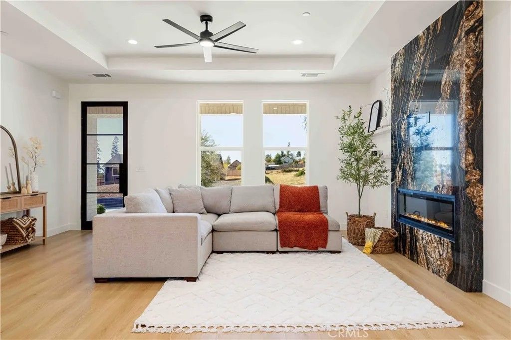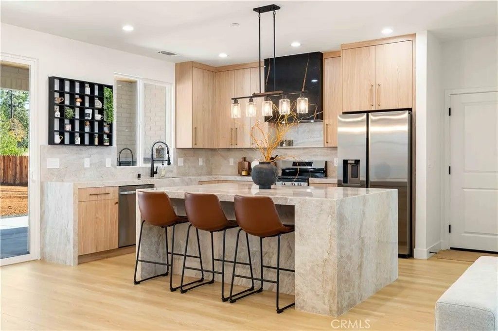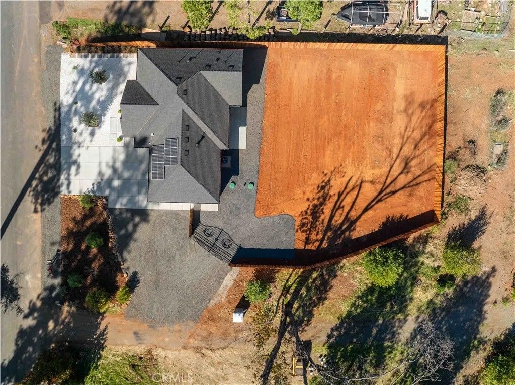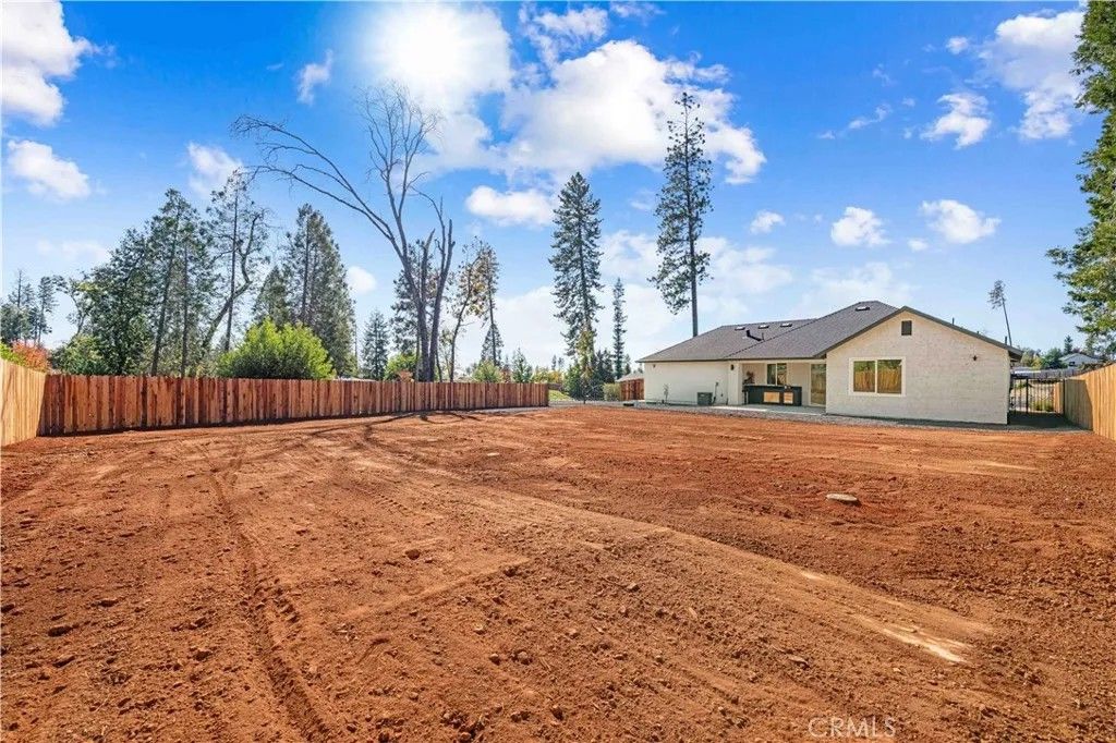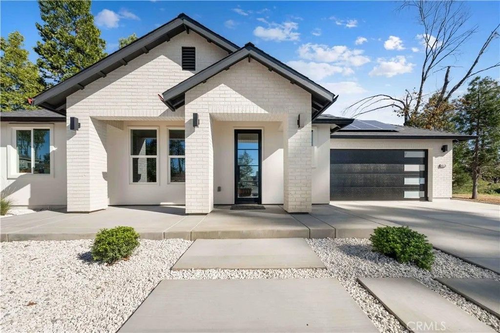 New construction in a highly desirable Paradise location! This exceptional home is truly one of a kind, featuring too many upgrades to list, built with attention to every detail, and designed to stand apart from anything else on the market. The exterior impresses with a custom stucco finish, a covered paved front porch, tall roofline, and a custom walkway leading to a sleek glass-and-steel entry door, framed by Milgard windows. Durable thick rebar-reinforced concrete patios and driveway, an insulated garage door, and abundant exterior lighting complete the striking curb appeal. Inside, the open-concept layout showcases laminate flooring, ceiling fans in every room, and imperfect smooth textured walls that add warmth and depth. The gourmet kitchen is a showpiece, featuring elegant Taj Mahal quartzite countertops, a large matching island, soft-close modern wood cabinetry, and Delta/Kohler fixtures, including provisions for direct microwave hookup. Bathrooms mirror the same luxurious finishes with granite slab shower walls, Taj Mahal vanities, soft-close cabinetry, and Delta faucets. Additional highlights include a laundry room with sink, custom built-in closets, and a stunning accent granite electric fireplace with blow heat. The outdoor spaces are designed for entertaining and relaxation, featuring a large covered paved patio, outdoor kitchen with hot water, and a flat, usable almost half-acre lot with RV access gates. The front yard is beautifully landscaped with automatic irrigation, pre-built for expansion. Owned solar adds energy efficiency, while proximity to shopping and a nearby creek enhances the lifestyle. With its abundance of upgrades, unique design, and resort-like details, this home perfectly blends luxury and functionality, a rare opportunity in Paradise, California.