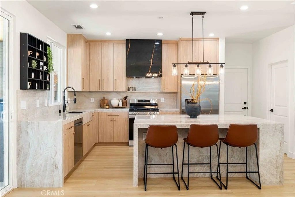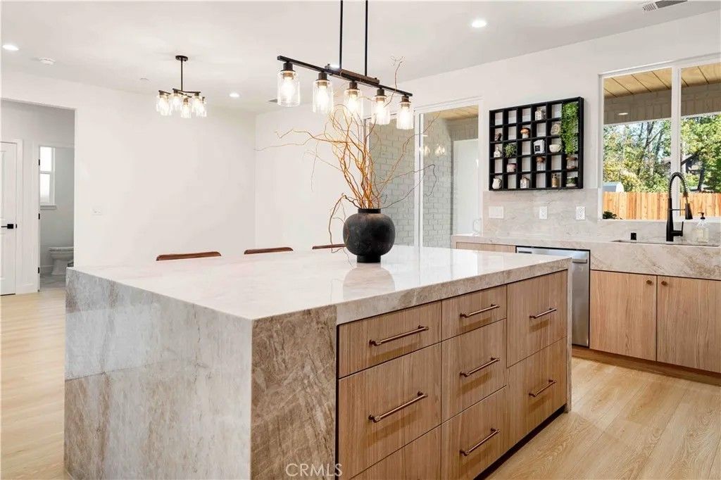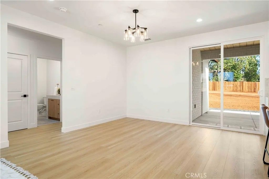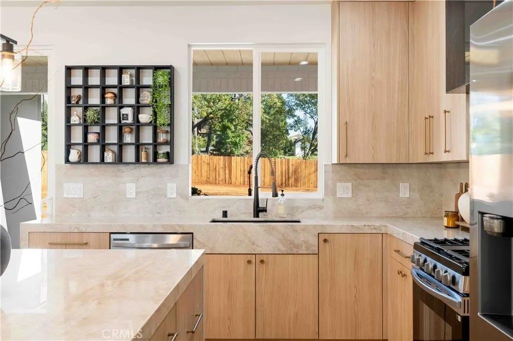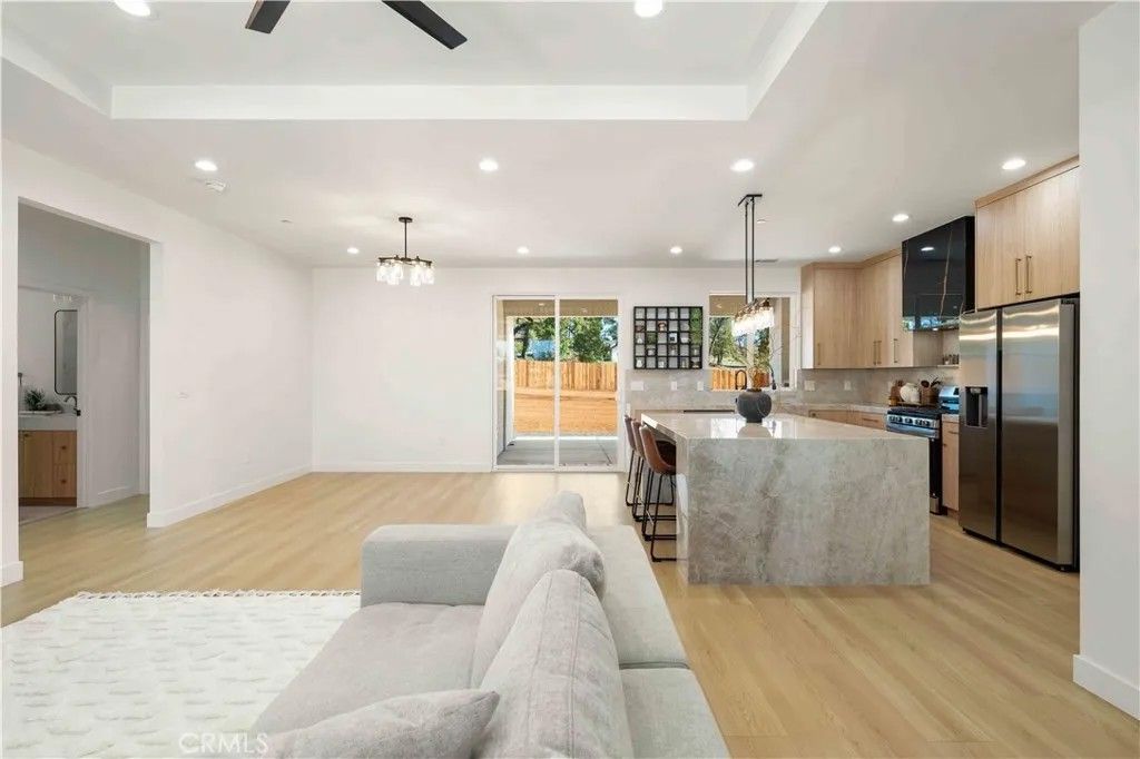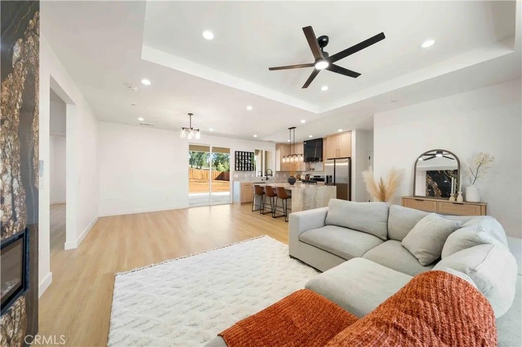 New construction in a highly desirable Paradise location! This exceptional home is truly one of a kind, featuring too many upgrades to list, built with attention to every detail, and designed to stand apart from anything else on the market. The exterior impresses with a custom stucco finish, a covered paved front porch, tall roofline, and a custom walkway leading to a sleek glass-and-steel entry door, framed by Milgard windows. Durable thick rebar-reinforced concrete patios and driveway, an insulated garage door, and abundant exterior lighting complete the striking curb appeal. Inside, the open-concept layout showcases laminate flooring, ceiling fans in every room, and imperfect smooth textured walls that add warmth and depth. The gourmet kitchen is a showpiece, featuring elegant Taj Mahal quartzite countertops, a large matching island, soft-close modern wood cabinetry, and Delta/Kohler fixtures, including provisions for direct microwave hookup. Bathrooms mirror the same luxurious finishes with granite slab shower walls, Taj Mahal vanities, soft-close cabinetry, and Delta faucets. Additional highlights include a laundry room with sink, custom built-in closets, and a stunning accent granite electric fireplace with blow heat. The outdoor spaces are designed for entertaining and relaxation, featuring a large covered paved patio, outdoor kitchen with hot water, and a flat, usable almost half-acre lot with RV access gates. The front yard is beautifully landscaped with automatic irrigation, pre-built for expansion. Owned solar adds energy efficiency, while proximity to shopping and a nearby creek enhances the lifestyle. With its abundance of upgrades, unique design, and resort-like details, this home perfectly blends luxury and functionality, a rare opportunity in Paradise, California.