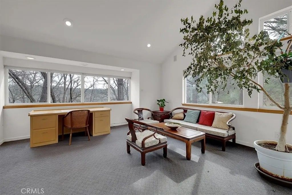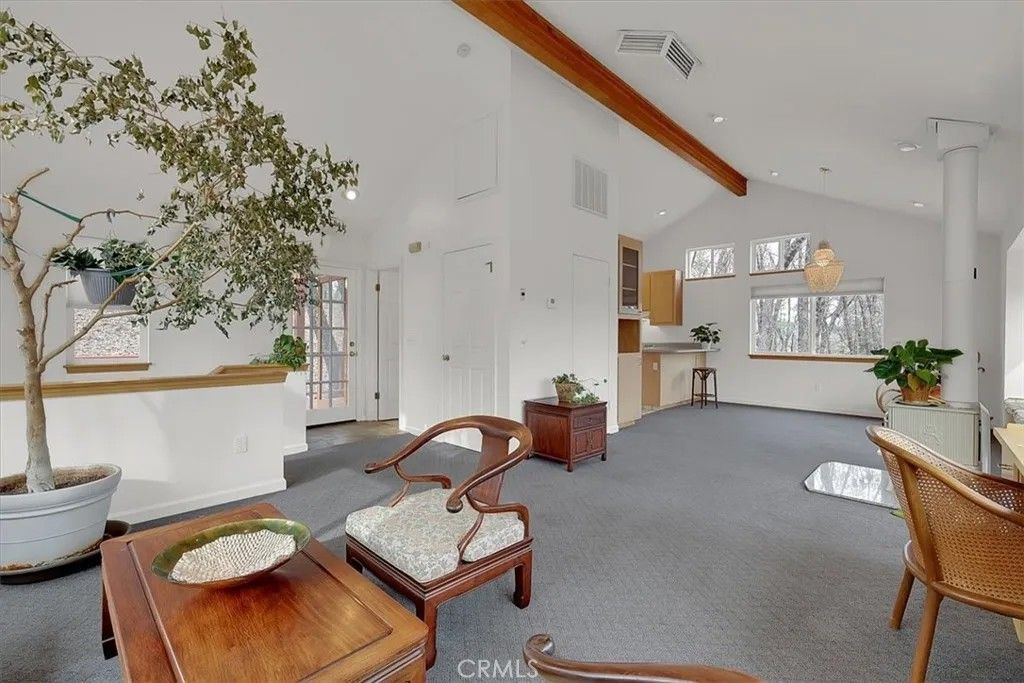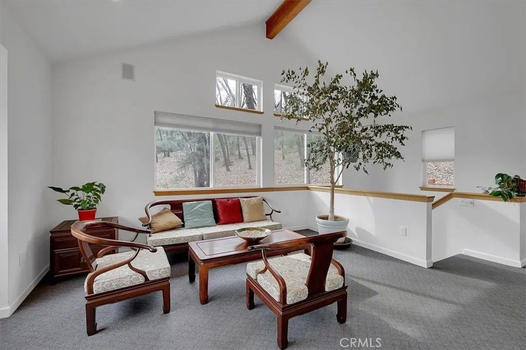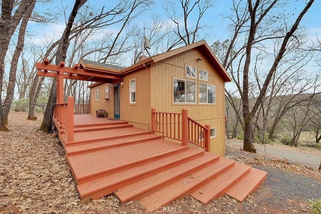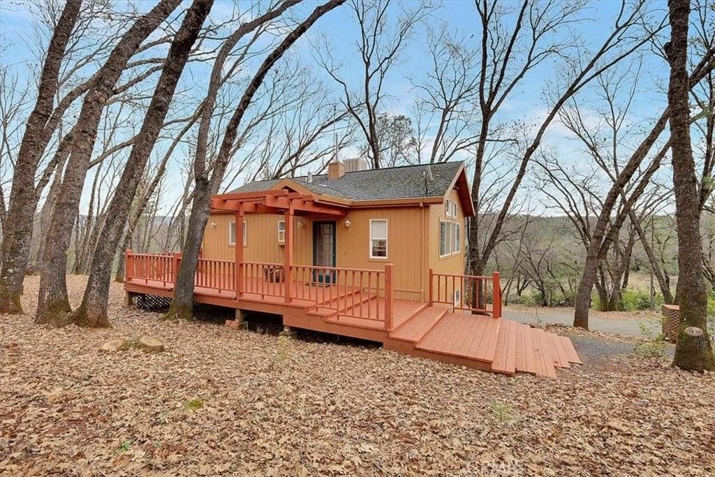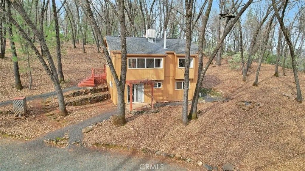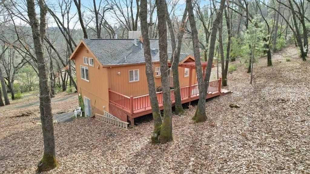 Elevate your state! Experience clean mountain air and engaging views on 6.08 awesome acres tucked back on a gentle knoll with a custom built, comfortably refined residence overlooking tall trees and peaceful country vistas. This one owner handsome home lives large and features entry from a spacious deck into a Great Room with amazing windows that provide abundant natural light. There's also a wood stove, striking ceilings with wood beams, a charming and unique movable window seat and recessed lighting. The expansive main level has a half bath and an open floor plan highlighting an easy care kitchen with attractive birch wood cabinets and breakfast bar as well as a defined formal dining area and other tasteful touches. The lower level includes two ample bedrooms with a full bathroom that adjoins both. Each bedroom has a walk in closet and outside access via sliding doors. A washer and dryer are nicely concealed in a cleverly designed laundry closet with shelving. A sturdy outbuilding offers enclosed storage space and there's plenty of room to add a garage/shop. The picturesque property, zoned for animals and agriculture on terraced and rolling land, is located in a serene setting off a paved road convenient to shopping, services, schools and several lakes as well as charming restaurants. The Yuba County foothills offer a vibrant agritourism region with farms, ranches, delightful Farmers' Markets and tours and tastings at local wineries and olive orchards. Attractive AirBnb/VRBO accommodations are available and popular and this property has potential in this category too. With its manageable size and versatile floor plan, there are many possibilities for this refreshing retreat. Enjoy a special sanctuary in scenic surroundings that uplifts and energizes with potent appeal and ambiance!