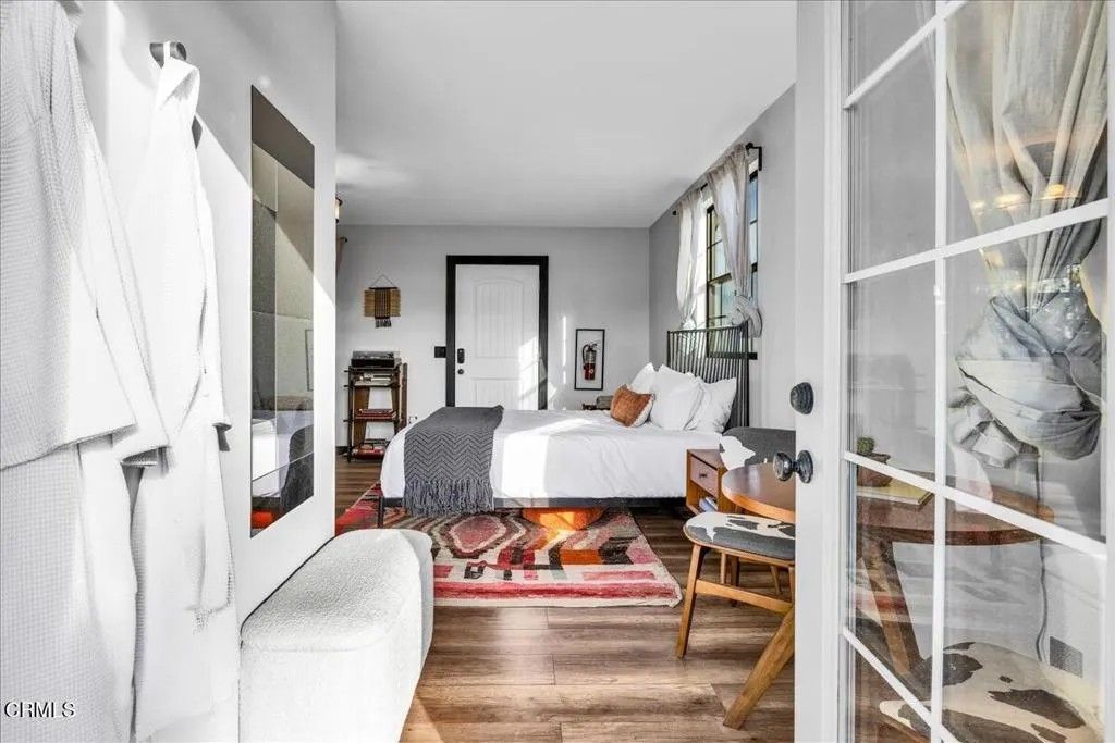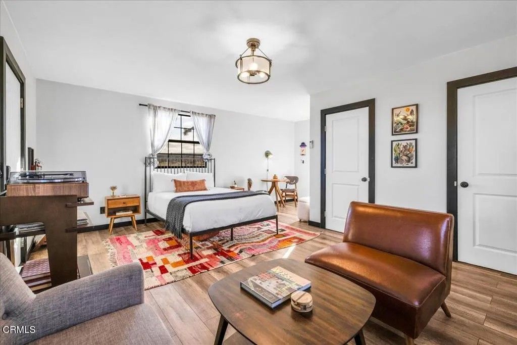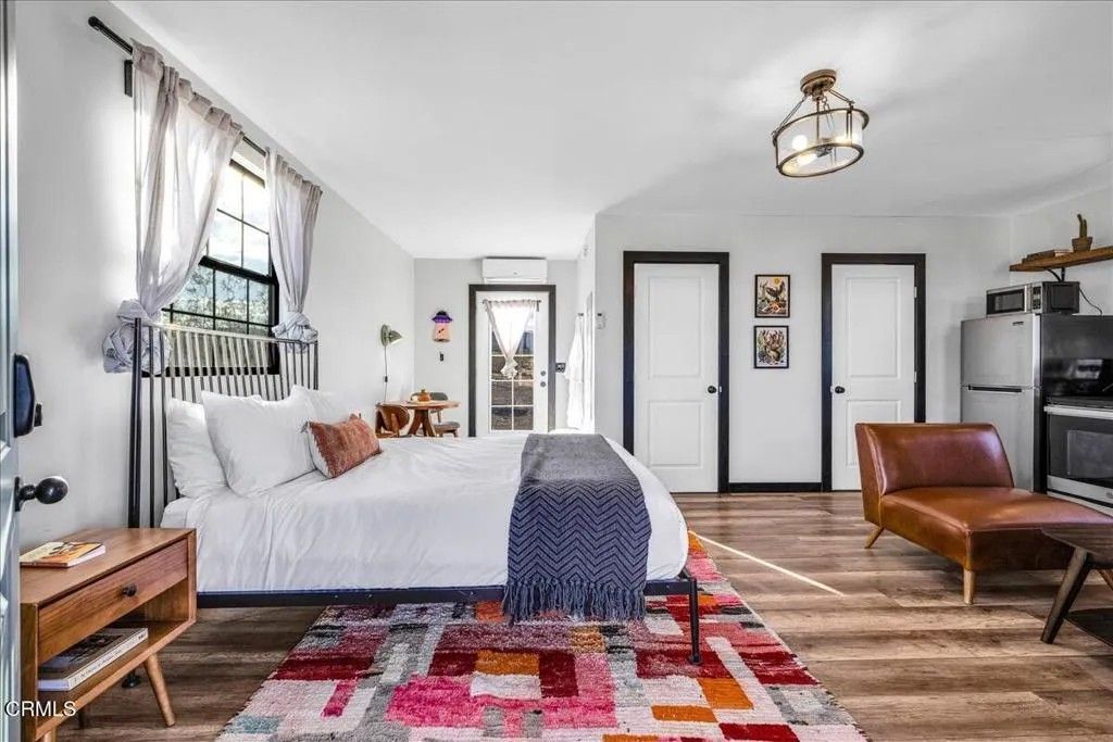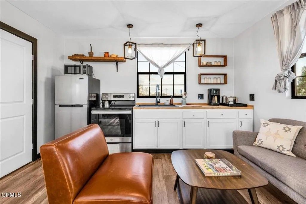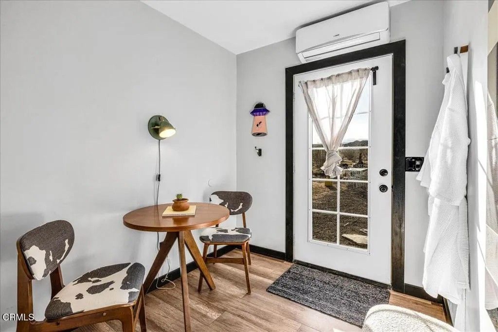 Tucked away on a peaceful 2.5-acre corner lot in Flamingo Heights, this beautifully remodeled midcentury studio cabin blends rustic charm with modern comfort. Fully furnished and thoughtfully designed, the open living space features a cozy lounge area, bedroom nook, updated kitchen, and dining corner--plus a full bathroom and convenient laundry closet with a stackable washer and dryer. Large windows fill the interior with natural light and frame stunning desert vistas. Step outside to enjoy shaded seating areas, a brand new spacious hot tub, and panoramic views that transform into an incredible blanket of stars at night. With stylish furnishings and finishes, and thoughtful upgrades throughout, this charming retreat was granted SFR status in 2023 and offers the perfect balance of tranquility and convenience-- private and secluded but just a short drive from Pioneertown, Joshua Tree, and local favorites like La Copine, Copper Room, and Tiny Pony.