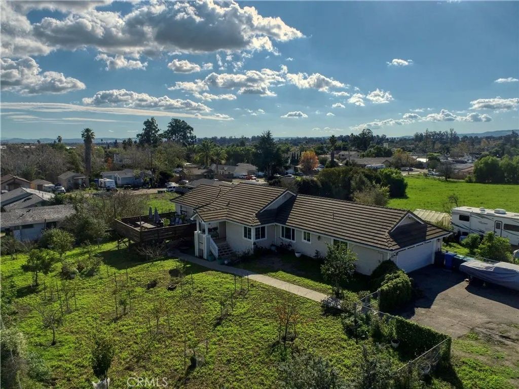 Two legal parcels create a rare opportunityenjoy the space now while retaining the option to sell the additional lot later for potential financial benefit. Luxury custom home with mountain views set on an expansive double lot. This beautifully remodeled single-level residence offers 3 bedrooms and 3 bathrooms and sits on a .48-acre legal parcel plus an additional adjoining .16-acre lot with its own APN included in the saleproviding exceptional space, and flexibility. The updated kitchen features a farmhouse sink, generous cabinetry, updated fixtures, and large windows overlooking the property. Updated flooring and refreshed finishes flow throughout, complemented by a repainted interior. Guest and hall bathrooms are tastefully updated, including a hall bath with a relaxing sunken tub. The thoughtfully designed floor plan includes a private primary suite, spacious living room with picture window, and a bonus office or flex room with a separate entrance. Outdoor living features multiple decks and a fully fenced yard ideal for pets and gardening, complete with fruit trees, raised beds, greenhouse, chicken coop, and rainwater collection system. Additional highlights include a tile roof, newer water heater, separate laundry room, abundant storage, two-car garage, RV pad, and ample parking. A rare property combining comfort, usable land, and future investment potential in a desirable setting.