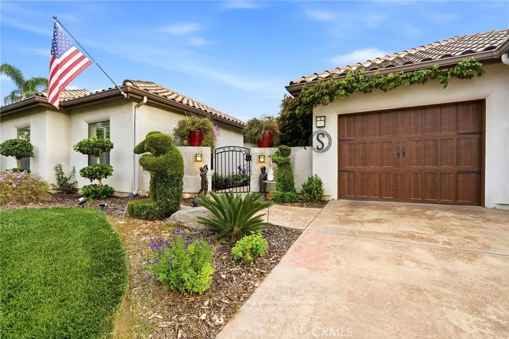 Welcome to your dream home on the 15th tee box at River Island Golf Course! This beautifully maintained single-story residence offers striking curb appeal with lush landscaping, charming topiaries, and a welcoming courtyard that leads to the main entrance. Step through the ivy-wrapped archway into a serene courtyard, perfect for morning coffee or quiet conversation. Inside, you'll find an open and airy layout with high ceilings, arched entries, a cozy fireplace, and French doors that bring in natural light and seamless outdoor access. The heart of the home is the chef's kitchen -complete with rich wood cabinetry, sleek quartz countertops, a center island, and a spacious dining area ideal for entertaining. The living spaces flow effortlessly into the inviting bedrooms. The primary suite features French doors to the backyard, a spa-like ensuite with dual shower heads, and a walk-in closet. Two additional bedrooms are located in the main part of the home, offering ample space for family or guests. A standout feature is the attached bonus room with its own private entrance - complete with a full bathroom and plumbing for a kitchenette. Whether used as a guest suite, mother-in-law quarters, or a game room, it's a versatile and valuable addition. Enjoy the peaceful backyard setting with covered patio space, gazebo, and views overlooking the Tule River =ideal for relaxing with a glass of wine or morning coffee. The above-ground spa stays! Schedule your private showing today.
