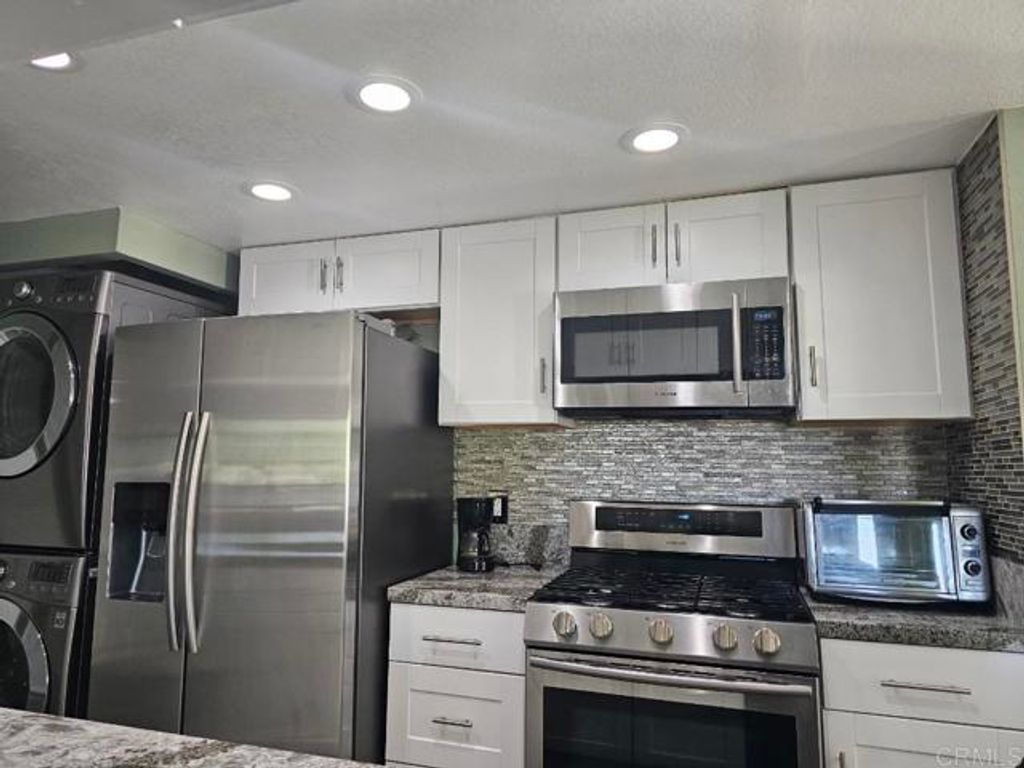 BOM no fault of seller. Pride in ownership newly remodeled- BA's converted to walk-in showers. Cabinets, countertops, plumbing, recessed lighting, bathroom fan new. Vinyl flooring and carpet relaced with sound proof padding. Windows & sliding doors energy efficient dual pain made by Crystal Pacific these windows are sound deadening, frameless mirror closet doors upgraded for the main master . Electrical upgraded throughout the house including outlets behind the TV. Custom window seat with additional storage. Custom niche built above countertop. Closet storage system throughout. The Washer location has been redesigned to accommodate a full size washer and dryer. Refrigerator, washer and dryer included. Pop corn ceiling removed with new ceiling fans wired in. Boxes for florescent lighting were cancel to enhance the ceiling space. Vaulted ceilings, VIEWS throughout! Brand New fireplace. Vaulted Ceilings ,Panoramic views of the mountains, community and view of the pool (Views from all windows), Newly installed pocket doors with frosted glass to give new bathrooms a luxury look, Added custom kitchen space (cabinets), Dual Master Bedrooms with private full baths and big closets separated by living room to give each room privacy and one of the master bedrooms has a sliding glass door entrance to balcony and views. Highly desirable location withing the complex pool & relaxing mountain views. Over 70k spent in upgrades within the last couple of years. Must see!