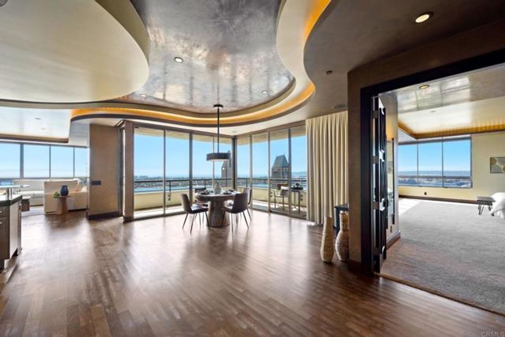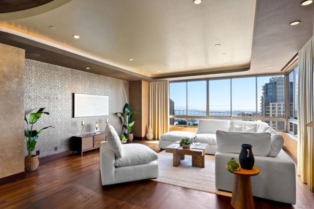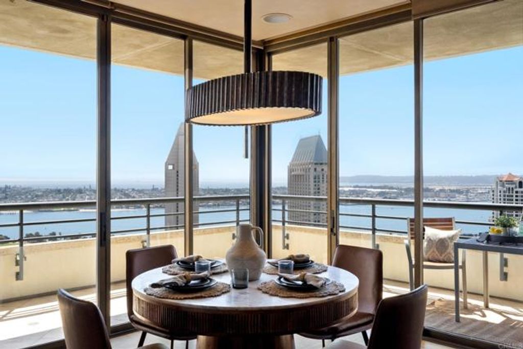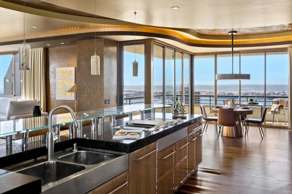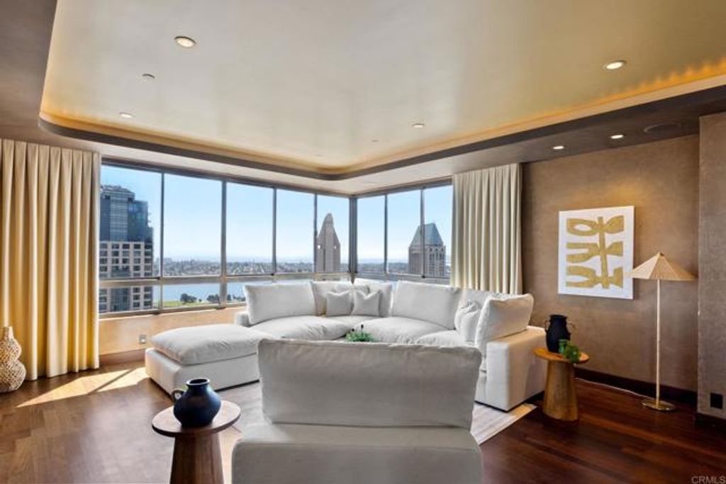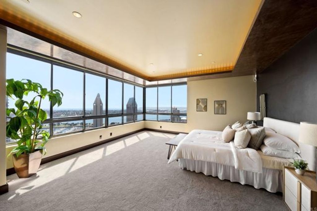Welcome to luxury living in one of San Diegos most prestigious high-rises, The Meridian. This stunning 25th-floor end unit offers unparalleled panoramic views of the bay, ocean, Coronado Bridge, and the downtown skyline from multiple private balconies. Featuring 3 spacious bedrooms, each with en-suite bathrooms, and a grand master bedroom walk in closet, this residence is thoughtfully designed with a custom architectural curved ceiling, a gourmet chefs kitchen with top-of-the-line appliances, a private wine cellar, and breathtaking views from every room. The Meridian is renowned for its first-class amenities, designed to offer a truly elevated lifestyle. Residents enjoy:A grand, welcoming lobby, Valet parking for residents and guests, Full-time doorman service, concierge services, On-site security, fitness center, Resort-style pool and spa with private cabanas, guest suites, a professional conference center and more. Ideally located in the heart of the Marina District, this residence is just steps from some of San Diegos top attractions including the Convention Center, Seaport Village, The New Childrens Museum, and a vibrant selection of retail, dining, and coffee shops. Whether youre a professional, retiree, or looking for a refined city residence, this is a rare opportunity to own a turnkey home in a full-service building with unmatched amenities. Schedule your private showing today and discover life at The Meridian.