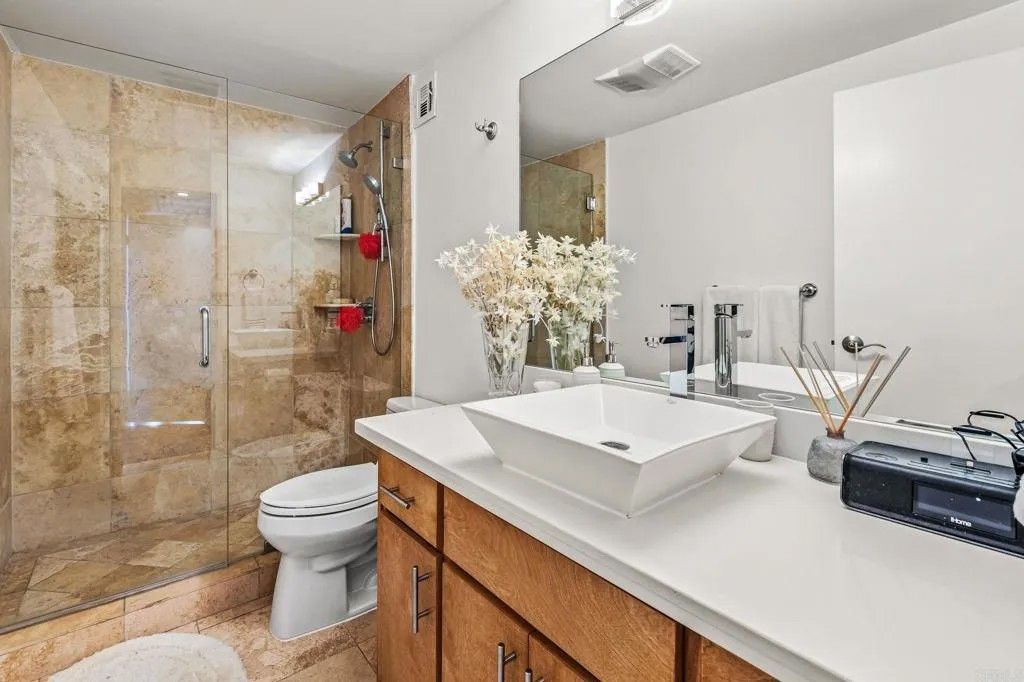 Oceanfront living reaches new heights in this stunning end-corner unit at Shore Tower, one of La Jollas most iconic high-rises. Perched on the 8th floor, Unit 805 offers sweeping panoramic views of the Pacific Ocean, La Jollas hillsides, and vibrant sunsets through expansive floor-to-ceiling sliding glass doors. This 2-bedroom, 2-bath residence blends luxury and comfort with a prime location just moments from La Jolla Shores Beach. Step inside to an open-concept floorplan bathed in natural light. The chefs kitchen features waterfall quartz countertops, custom cabinetry, and smart stainless steel appliances. The spacious primary suite includes a walk-in closet, dual vanities, and a spa-style tiled shower. High-end finishes continue throughout with recessed LED lighting, motorized window shades, central HVAC, luxury vinyl or hardwood flooring, and ample storage. Shore Tower offers full-service, resort-style amenities. Residents enjoy a heated pool and spa, fitness center, sauna, tennis courts, and a lounge with a bar and kitchen. Two guest suites are available for overnight visitors. The HOA covers high-speed internet (500 Mbps), cable with HBO, water, sewer, trash, termite control, on-site management, full-time maintenance, exterior upkeep, and limited fire and earthquake insuranceproviding exceptional value and ease of ownership. This iconic 14-story community is ideally located near everything La Jolla has to offer. Walk to the beach, La Jolla Village, fine dining, boutiques, UCSD, Scripps, Birch Aquarium, and more. With easy access to the UTC district and nearby freeways, this is the perfect full-time residence or lock-and-leave second home. Unit 805 at Shore Tower delivers the best of coastal luxury livingunmatched views, refined interiors, and an unbeatable La Jolla location.