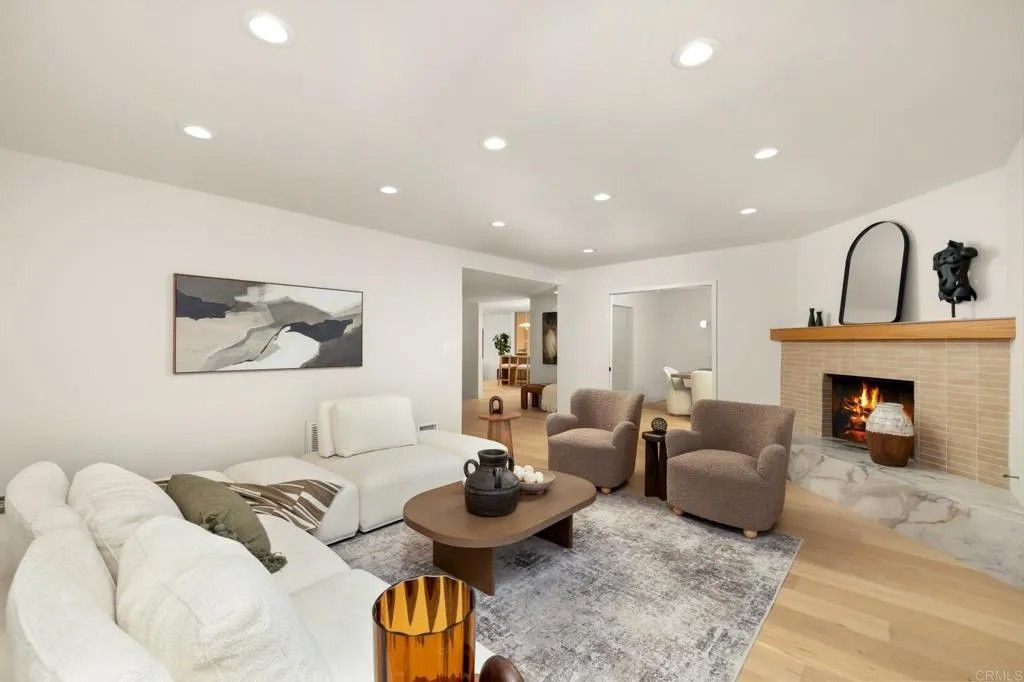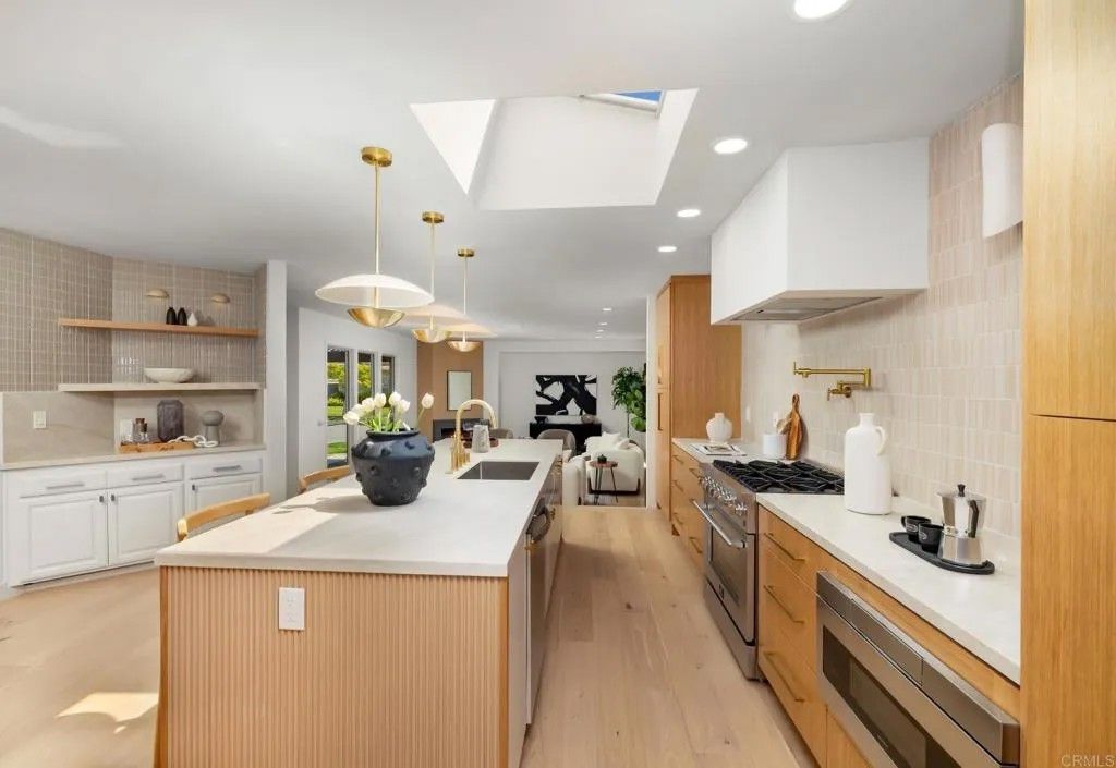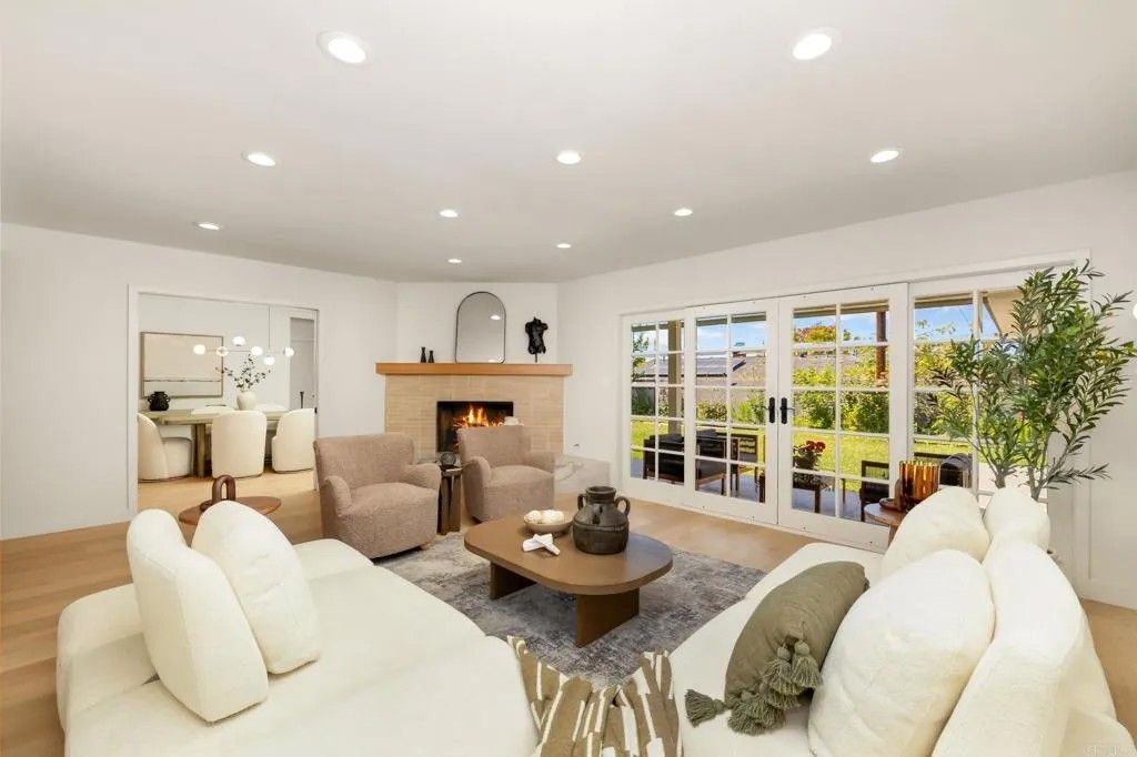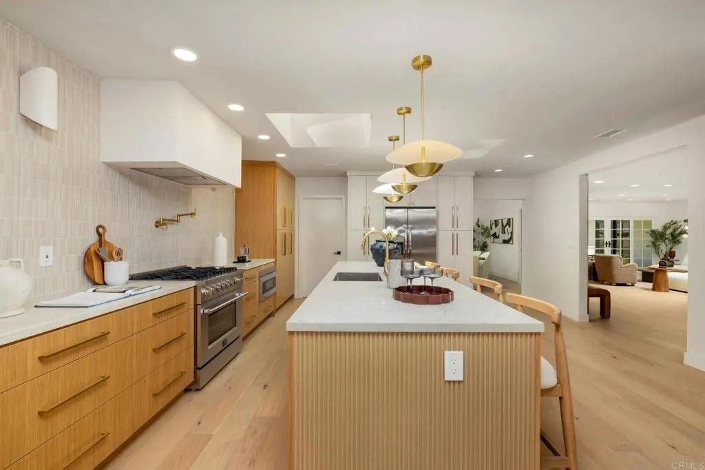 Fully remodeled single-story in coveted Ladera Heights featuring open-concept living, designer finishes, and a private landscaped yard. Enjoy a chefs kitchen with brass accents, spa-inspired bathrooms, and seamless indoor-outdoor flow in one of LAs most desirable neighborhoods. A striking double-door entry welcomes you into bright, airy interiors with new designer paint and engineered hardwood floors. The front living room features a sleek fireplace and a wall of windows that fill the space with natural light. The chefs kitchen impresses with custom cabinetry, quartz countertops, brass fixtures including a pot filler, a counter-to-ceiling backsplash, and new high-end appliances illuminated by a skylight. The dining area with a white wood panel ceiling accent opens to the yard and connects seamlessly to the family room, which features a second fireplace and wide sliding glass doors framing the backyard. The primary suite is a true retreat with direct yard access, a spacious walk-in closet, and a spa-inspired bath with dual floating vanities, designer lighting, an oversized dual shower, and a skylight that fills the space with natural light. Three additional bedrooms are bright and versatile, complemented by one full and one half upgraded bathroom with stylish tile and finishes. Outdoors, enjoy an expansive covered patio, lush landscaping, and new privacy fencingideal for gatherings or quiet mornings. Additional updates include new exterior paint, a modern garage door, and enhanced side gates. Located on a quiet, tree-lined street close to Culver City, Playa Vista, Westchester, and the beach, this home offers the best of Ladera Heights livingmodern design, peaceful surroundings, and unbeatable convenience.