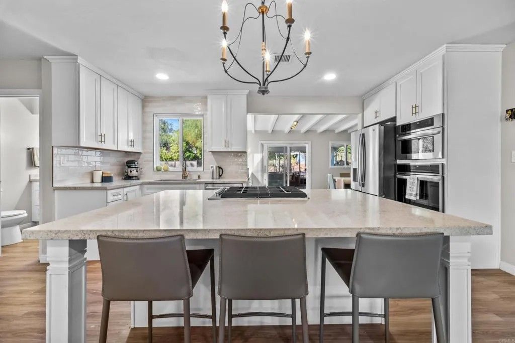 Gorgeous turn key remodeled home located in wonderful Mt. Helix- Situated on .5 acre flat useable lot- Plenty of room for ADU or pool! Charming mid-century modern- Remodeled kitchen featuring quartz counters, all new cabinetry, and all new stainless steel appliances- Designer touches throughout- Bathrooms have all been remodeled with quartz counters and all new fixtures! Primary bedroom features oversized closet with all new closet organizers- Spacious secondary bedrooms- All new luxury vinyl throughout- And so much more! R/V Parking plus two car garage- Totally screened in patio room is a true extension of the house perfect for entertaining or family fun! Centrally located close to all shopping, restaurants, and freeways!